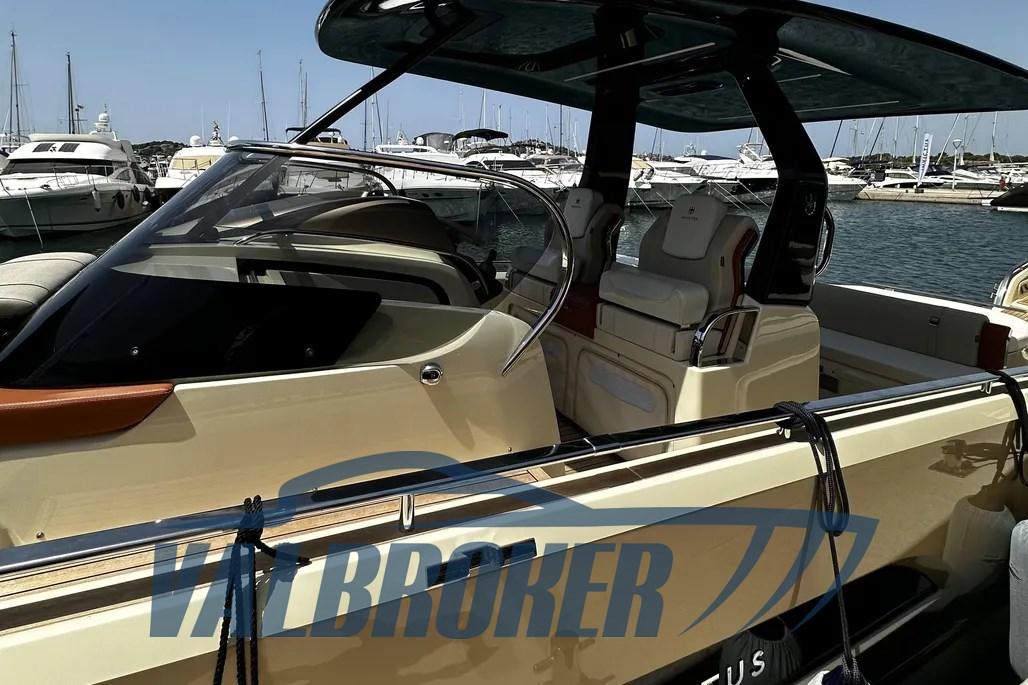 Bateau de démonstration, seulement 65 heures de conduite !! Disponible pour livraison immédiate. Moteurs : 2xVolvo Penta V8, essence 350 CV. Garantie moteur à activer. EN OPTION : climatisation chaude/froide de 10000 BTU, propulseur d’étrave, bimini avec poteaux en carbone, couleur spéciale Vanilla Sea, toit rigide en carbone, joystick Volvo et pilote automatique !! Possibilité d’échange.