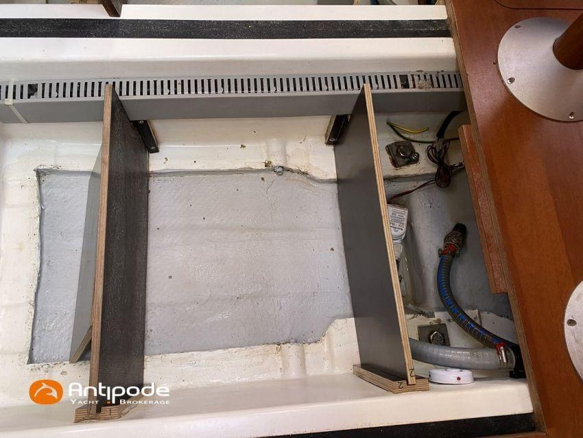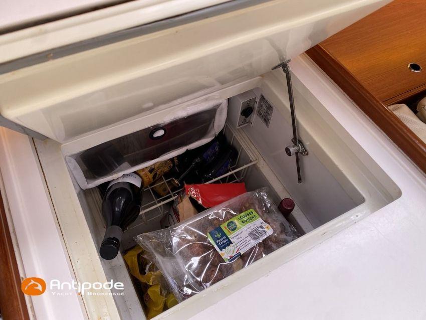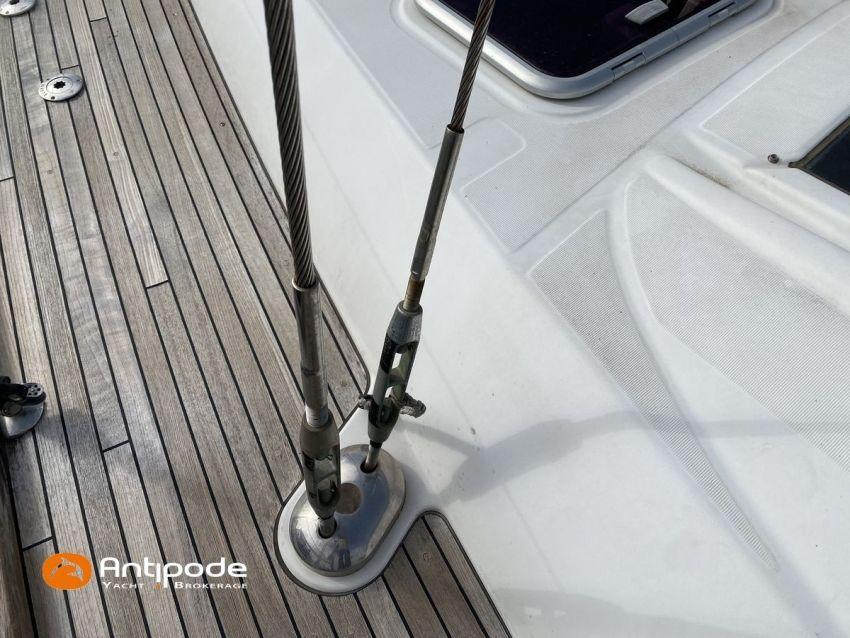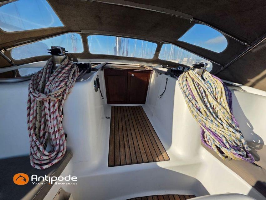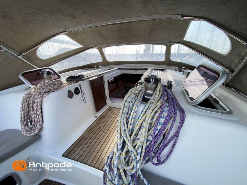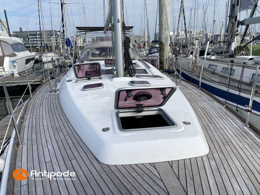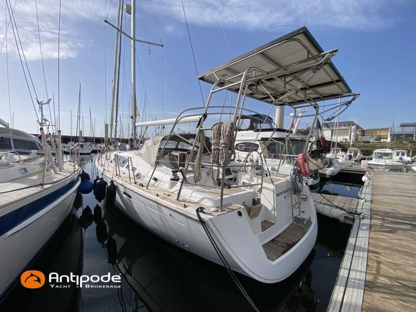 OCEANIS 46, 2009, YANMAR, 75 cv Propulseur d'étrave, Version GTE, Version d'aménagement intérieur 1 cabine avant, 2 cabines arrières, 2 cabinets de toilettes et douche, Selleries carré simili cuir, Winch électrique de manoeuvre sur roof, Rail d'écoute de grand-voile sur le roof, Passavants teck, Fond de cockpit latté teck, Table de cockpit avec abattants bois, Double barre à roue, Capote de roof, Bimini top cockpit, Coussins de cockpit, Compteur de chaine au cockpit, Portique arrière, Mât enrouleur posé sur le pont - service 2023, Génois sur enrouleur, Trinquette sur enrouleur - 2018, Spinnaker asymétrique, Pilote automatique in board Raymarine, GPS / lecteur de carte dans le cockpit - E80, Radar avec radôme sur support de mât, Transpondeur AIS (émetteur récepteur), Balise de détresse, Unité réfrigérante 12 V ouverture par le dessus, Unité réfrigérante 12 V porte frontale, Four à micro-ondes, Contrôleur / gestionnaire de batteries, Chauffage WEBASTO, Dessalinisateur a reviser, WC électrique, Panneaux solaires - 3x 245W, Eclairages intérieurs à Leds, Radeau de survie - 2026, Annexe , Moteur hors-bord, Visible Bretagne. Pour plus d'informations ou pour fixer un rendez-vous de visite, contact : François Mouchel 06 62 30 97 30 - francois@antipode-yachts.com