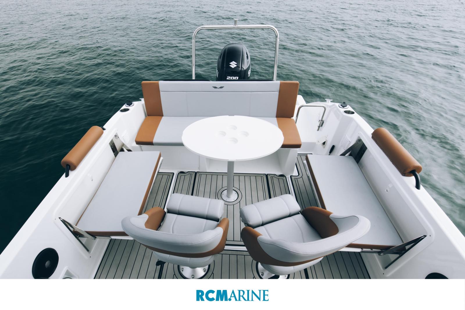 Sa carène Airstep offre un passage en mer fluide et sécurisant, tandis que la motorisation Suzuki 200 APX blanc apporte puissance, souplesse et efficience, avec une signature esthétique parfaitement en accord avec l’esprit premium de cette configuration.
