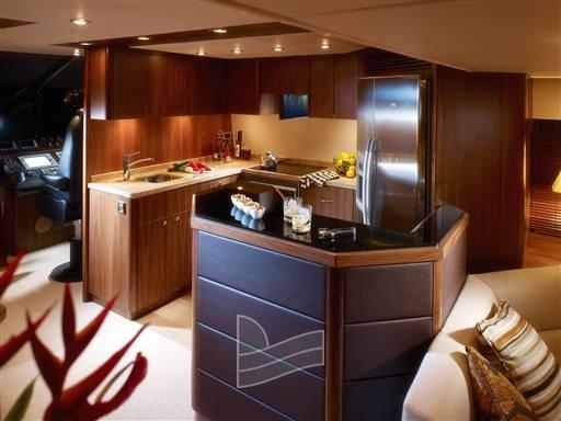 Eau sous pression, Passavant en teck, Couleur spéciale (Blue Navy), Douche de cockpit, Double barre à roue, Phare de poursuite, 2 Flaps hydrauliques, Lavabo dans le cockpit, Passerelle (Idraulica), Plateforme arrière (di poppa in teak), Pompe de cale automatique, Pont en teck, Porte latérale, Porte latérale, Cockpit en teck, Prise de quai, Guindeau électrique, Echelle de bain, table de cockpit, Corne.