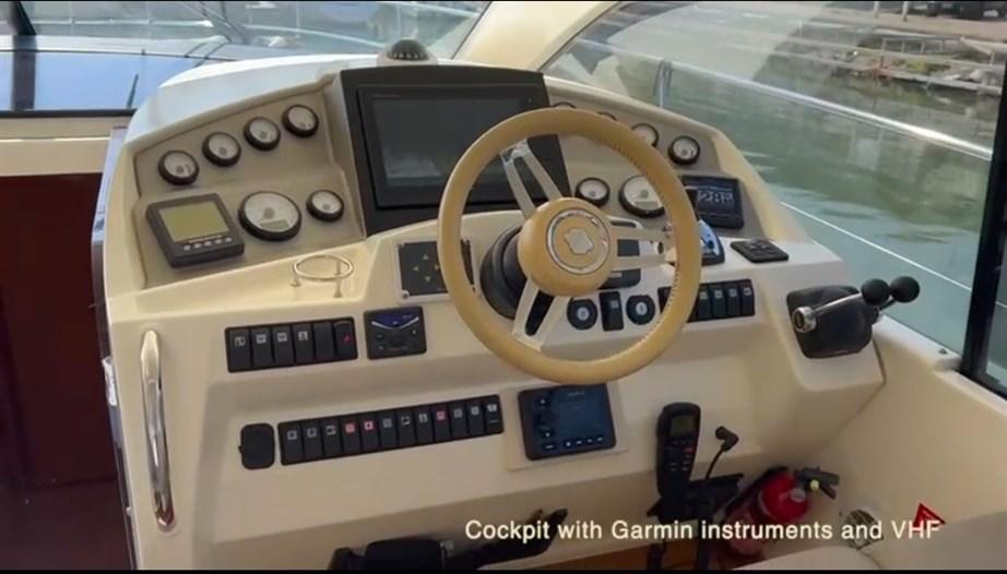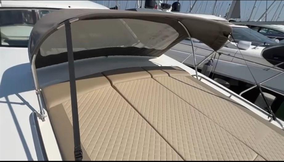 Alarme moteur, Eau sous pression, 8 Batteries, Douche de cockpit, Flaps hydrauliques, Garage à annexe, Hard top, Indicateurs de flaps, Lavabo dans le cockpit, Éclairage de courtoisie, Spots sous-marins, Passerelle (a scomparsa Besenzoni), Plateforme arrière (in teack), Pompe de cale automatique, Porte latérale, Cockpit en teck, Prise de quai, Connexion eau sous pression à quai, Onduleur, Guindeau électrique, Echelle de bain, table de cockpit, Table pliante de salon, Annexe, Corne.