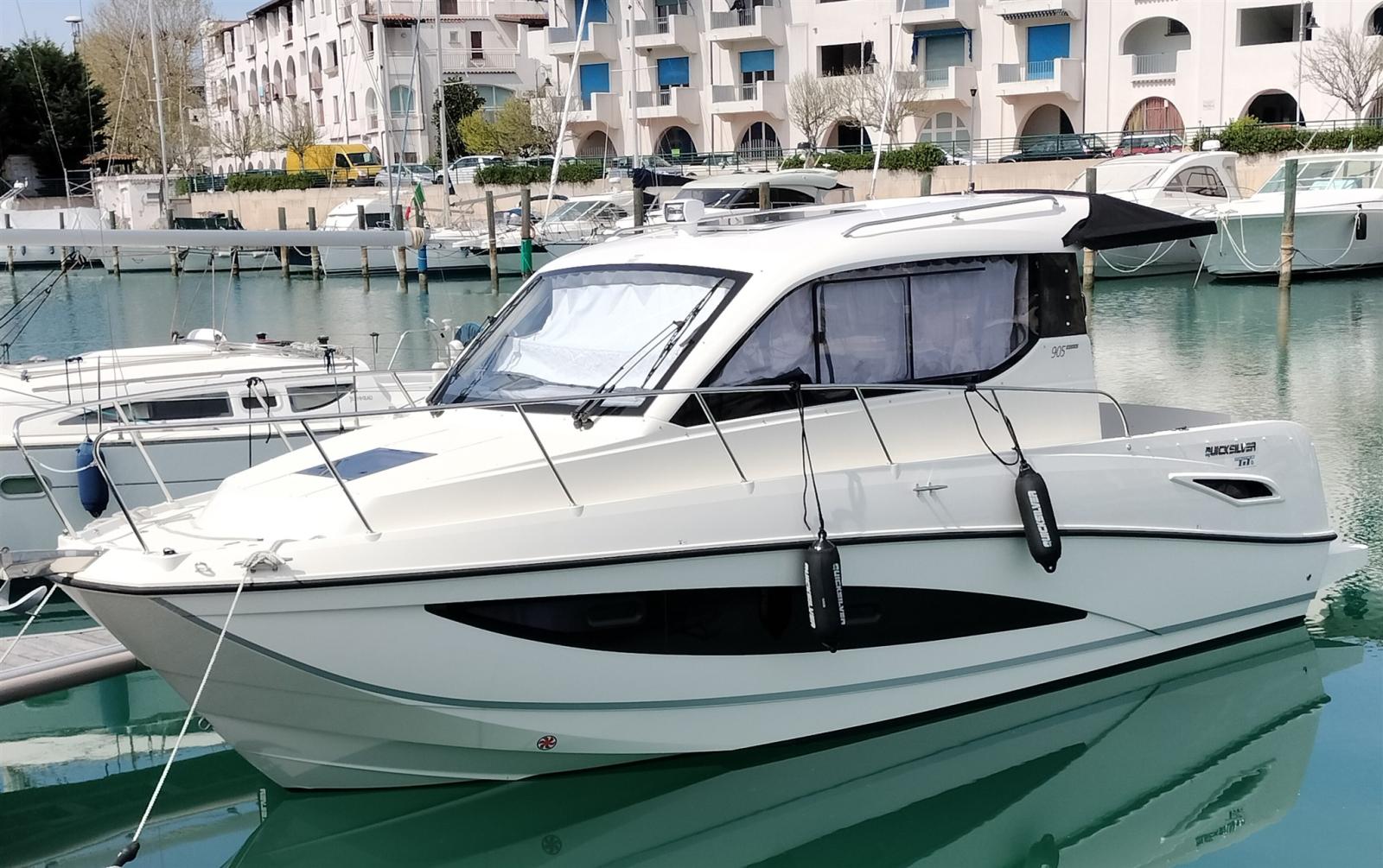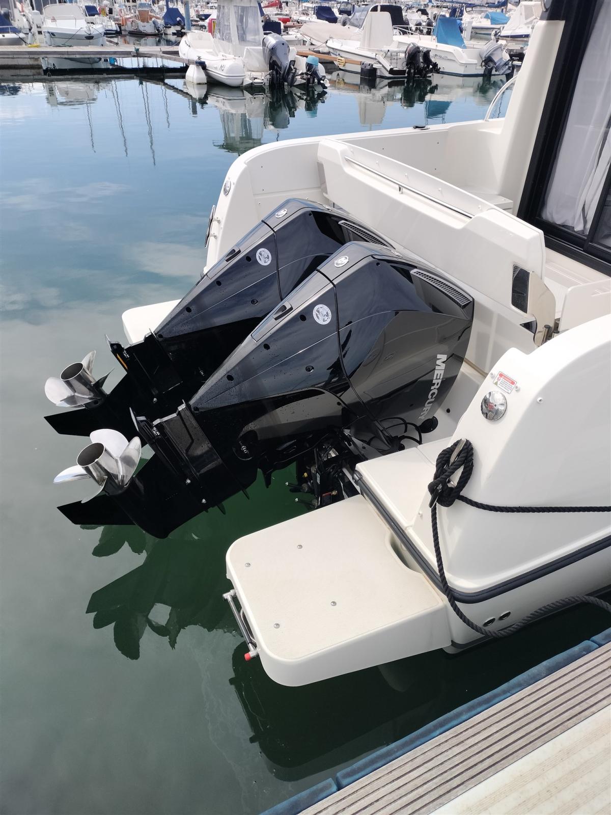 Alarme moteur, 3 Batteries, Douche de cockpit, Phare de poursuite, Flaps électriques, Hard top, Indicateurs de flaps, Éclairage de courtoisie, Plateforme arrière, Pompe de cale automatique, Prise de quai, Connexion eau sous pression à quai, Guindeau électrique, Echelle de bain, table de cockpit, Corne.