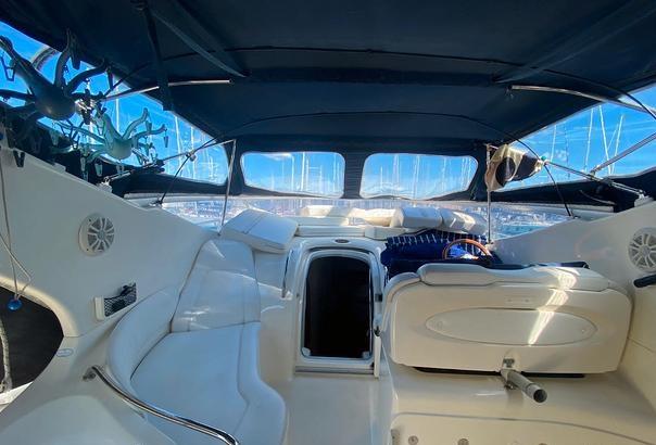 Alarme moteur, Alarme de pompe de cale, Douche de cockpit, Flaps hydrauliques, Indicateurs de flaps, Éclairage de courtoisie, Passerelle (idraulica), Plateforme arrière (teak), Porte latérale, Cockpit en teck, Prise de quai, Connexion eau sous pression à quai, Rollbar, Guindeau électrique, Echelle de bain, table de cockpit, Corne.