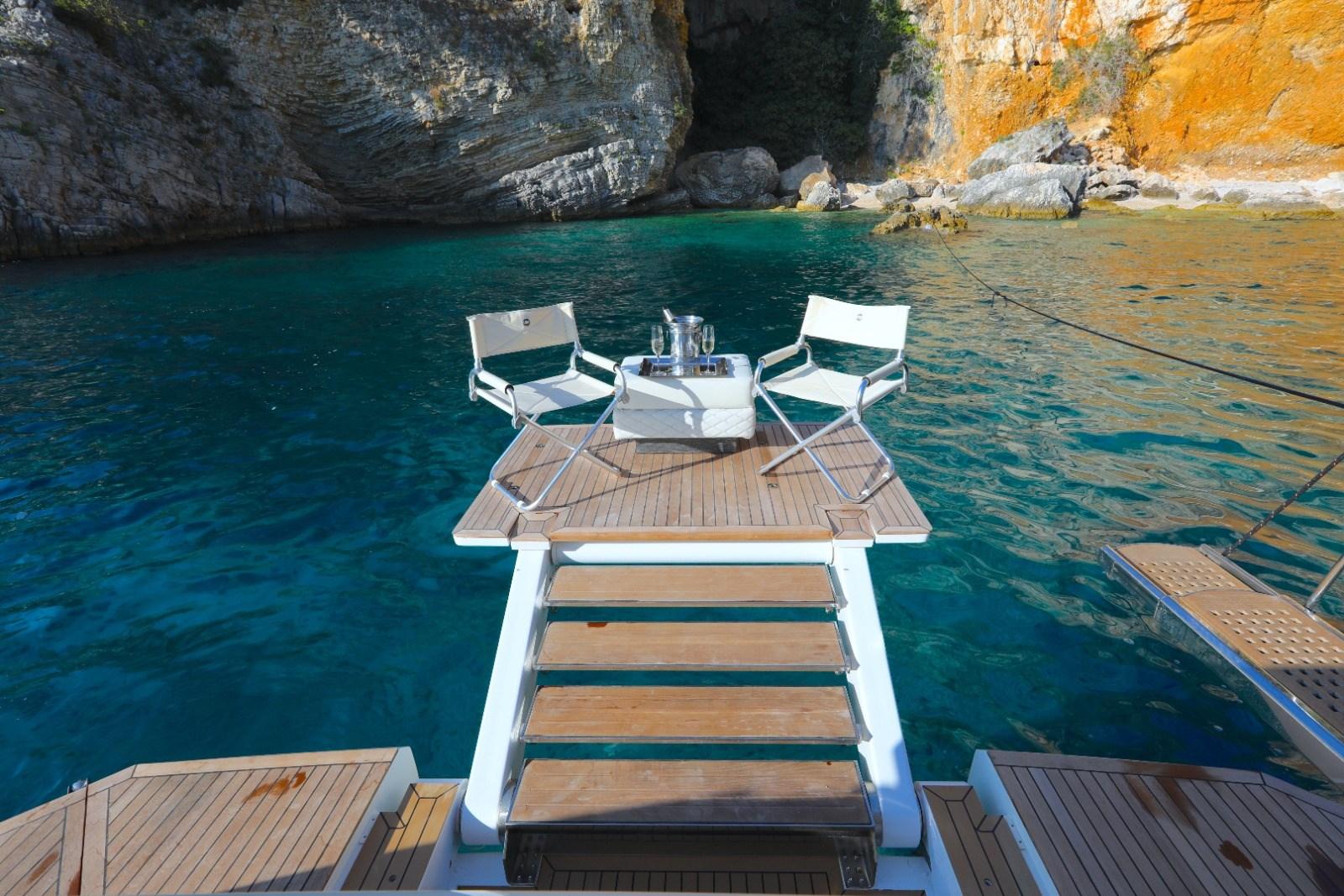 Alarme moteur, Alarme de pompe de cale, Ancre (catena 100mt), Eau sous pression, 10 Batteries (8 servizi + 2 motori 2023 180 ah), Passavant en teck, Chargeur de batterie (Quick e Vicotry automatico), Douche de cockpit, Phare de poursuite, Flaps hydrauliques, Extincteur(s) fixe(s) (in sala macchine), Indicateurs de flaps, Spots sous-marins, Passerelle, Plateforme arrière (up and down inserita nella plancetta Opac Mare), Pompe de cale automatique, Porte latérale, Cockpit en teck, Prise de quai, Connexion eau sous pression à quai, Onduleur, Guindeau électrique, Echelle de coupée, Echelle de bain, table de cockpit, Annexe (3,80 m + fuoribordo 40cv mercury), Corne, 2 Winch électrique arrière.