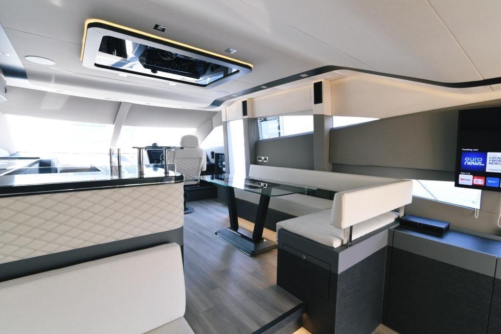 BBQ/ Grill (sul fly), Ballon d'eau chaude, Coffre-fort, Air Conditionné, Dessalinisateur (200lt), Cuve à eaux noires, Plancher intérieur en bois, Prises interieures 12v, Prises interieures 220v, Réservoir d'eau noire, Caméra vidéo (con possibilita' controllo in remoto sala macchine e fly), 5 Toilettes électriques.