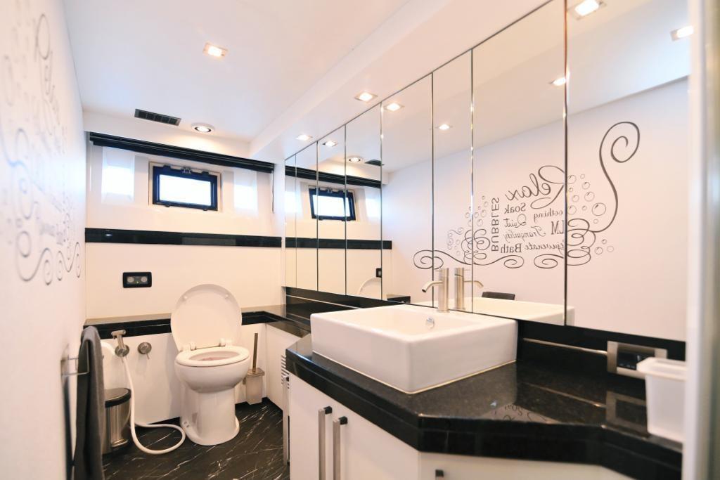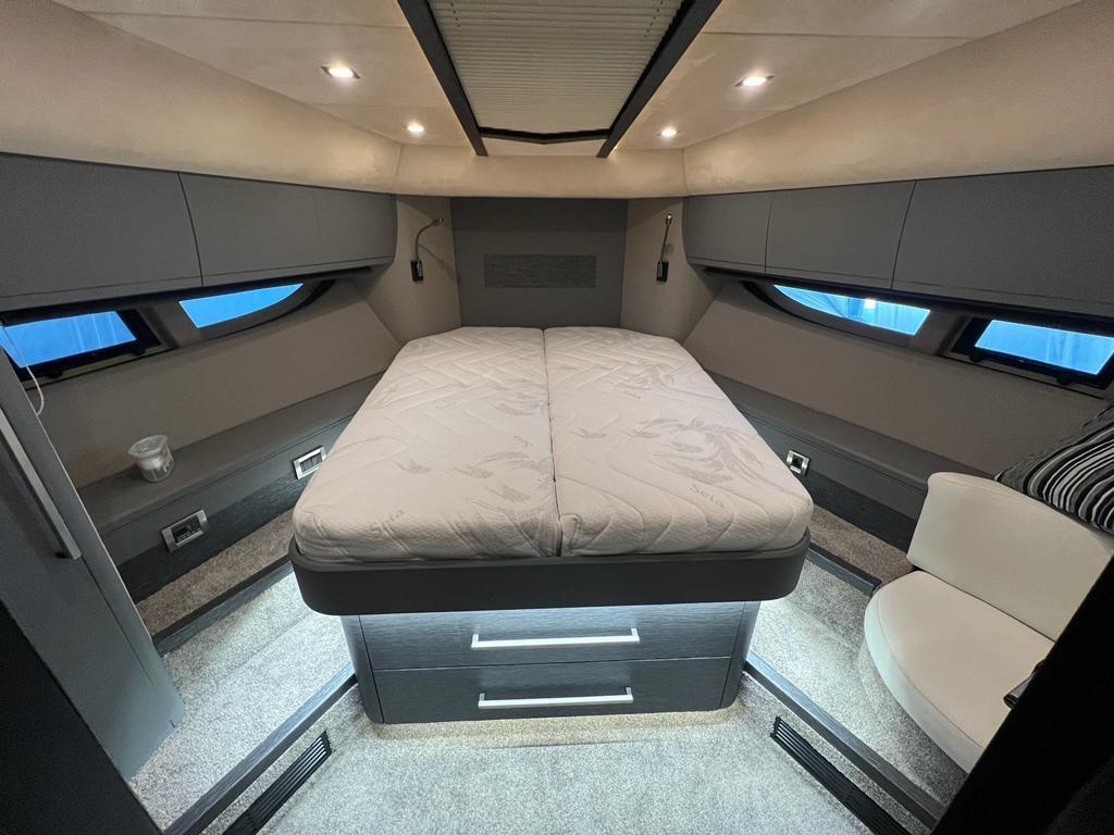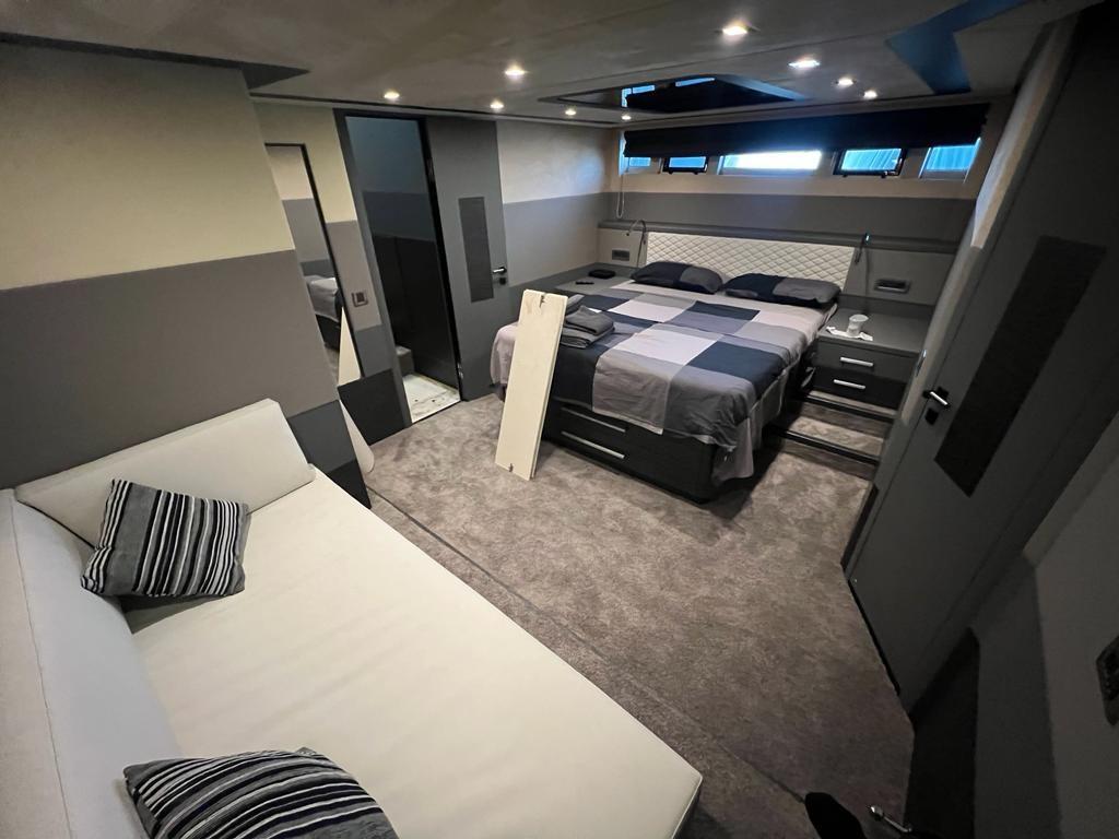 CABINE DU PROPRIÉTAIRE AU CENTRE DU NAVIRE AVEC SALLE DE BAIN ATTENANTE, CABINE DE DOUCHE SÉPARÉE. 2 CABINES D’AMIS AVEC LITS PLATS AVEC ACCÈS À UNE SALLE DE BAIN PARTAGÉE. CABINE VIP AVANT AVEC LIT CENTRAL ET ACCÈS À LA SALLE DE BAIN PRIVÉE
