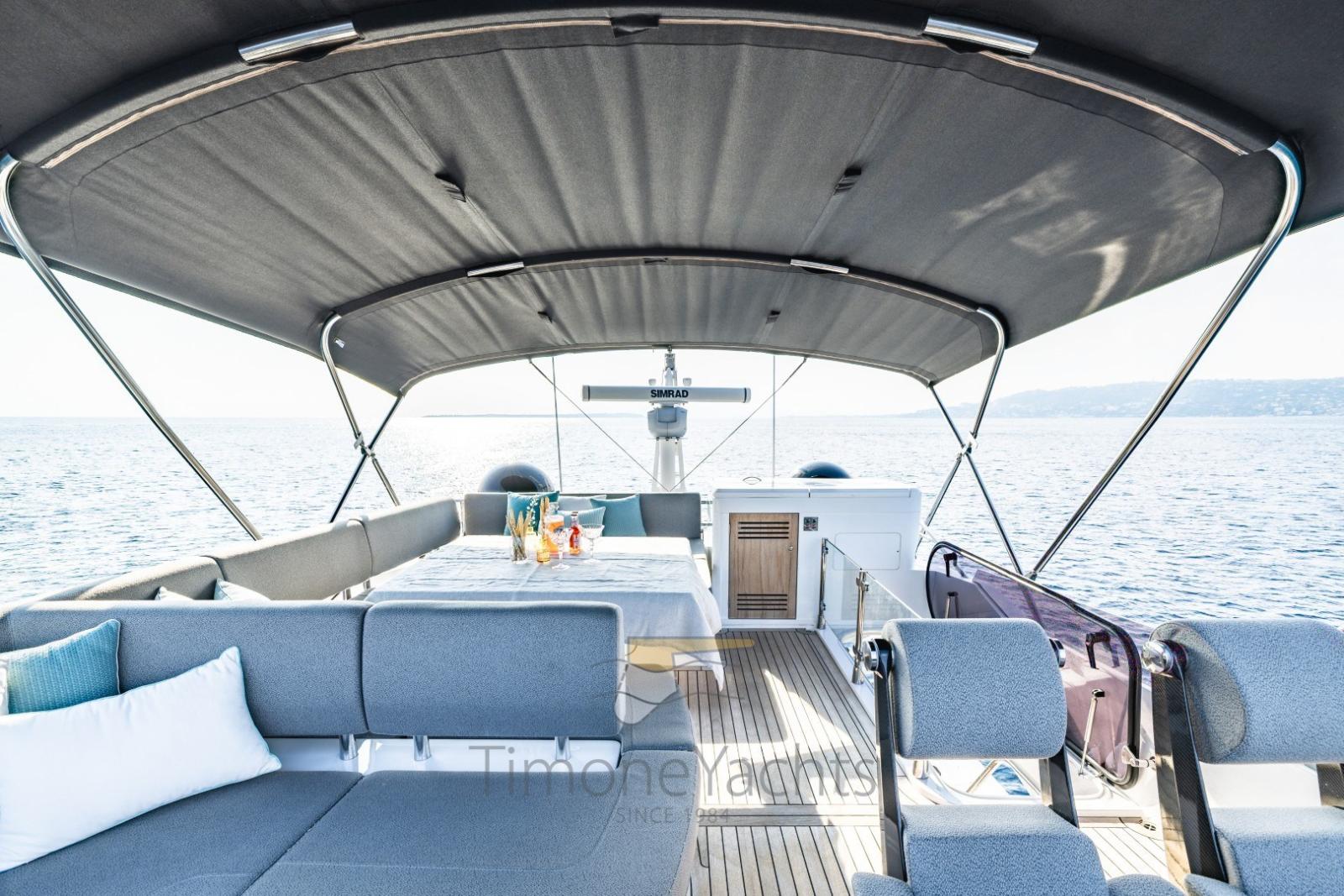 Beaucoup de points chauds : le sortfly est tellement bon, et le pont avant aussi. Pourtant, le Vaisseau donne le meilleur entre cockpit et Salon. La partie extérieure est magnifique, le coussin solaire arrière rejoint judicieusement la zone de vie du cockpit ; immense la table à manger là-bas. Puis le cockpit se transforme en salon dans un environnement naturel et fluide.