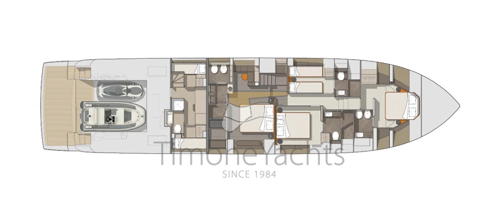 Propriétaire unique du nouveau Cranchi 78 fly. Unique dans ses intérieurs d’un blanc satiné pur, magnifiquement associés à des parquets en chêne naturel et des canapés en coton bleu. 4 cabines d’invités + 5 salles de bain ; 3 couchages d’équipage.