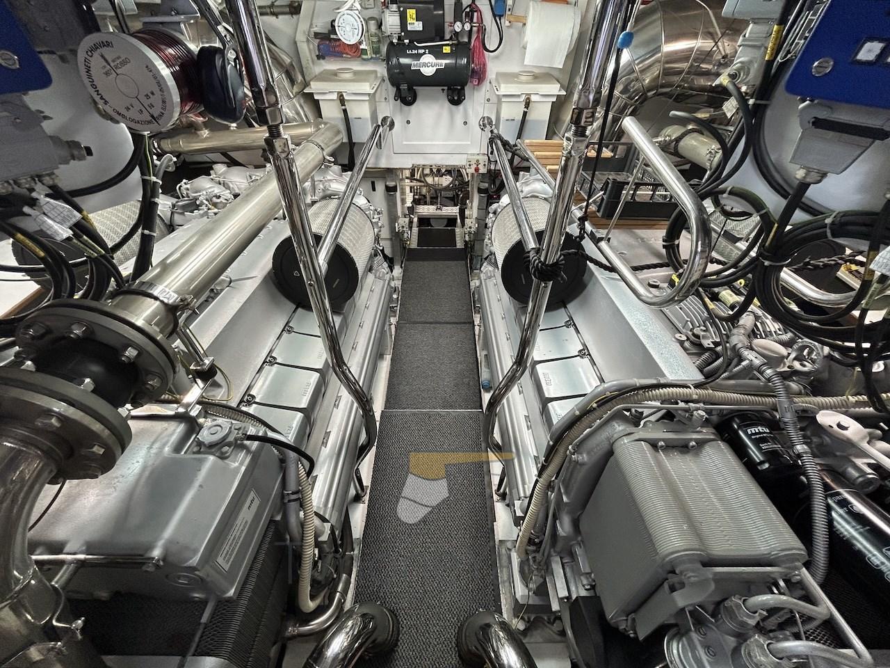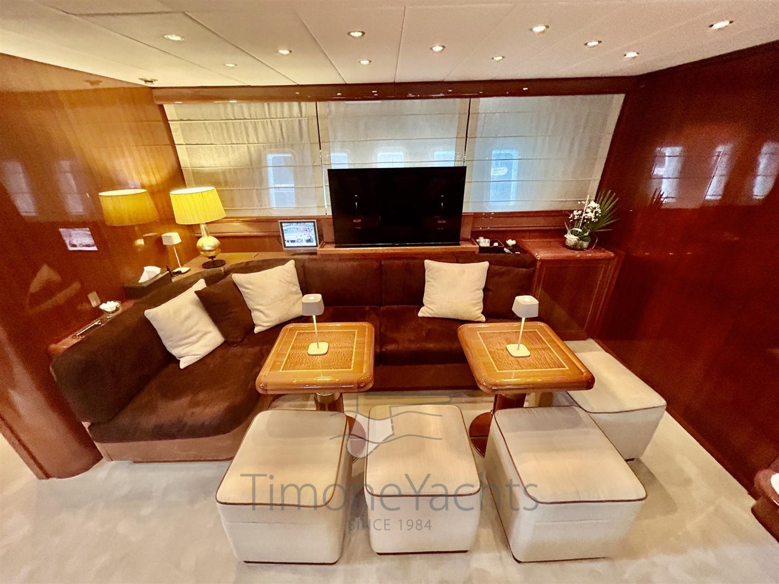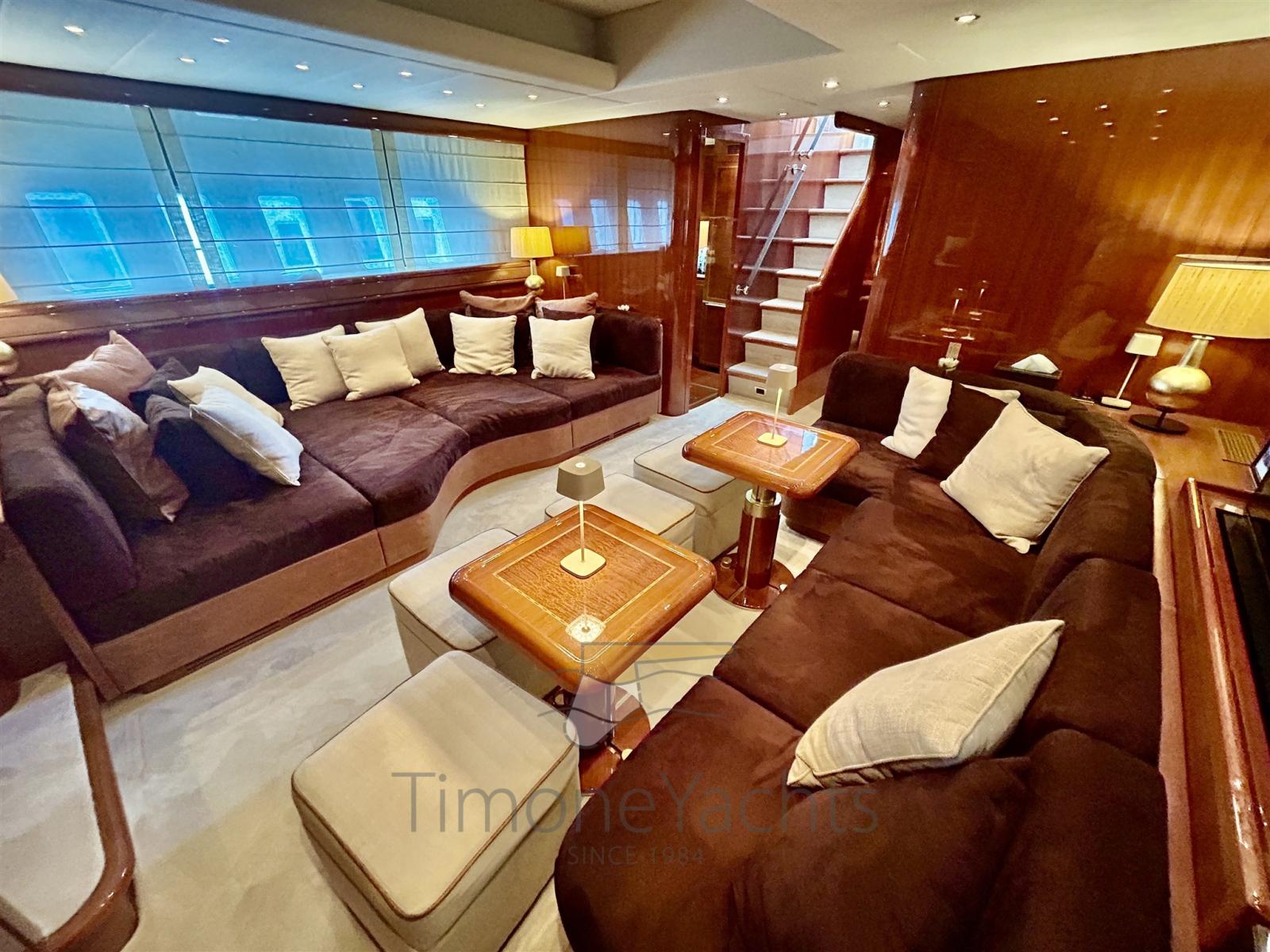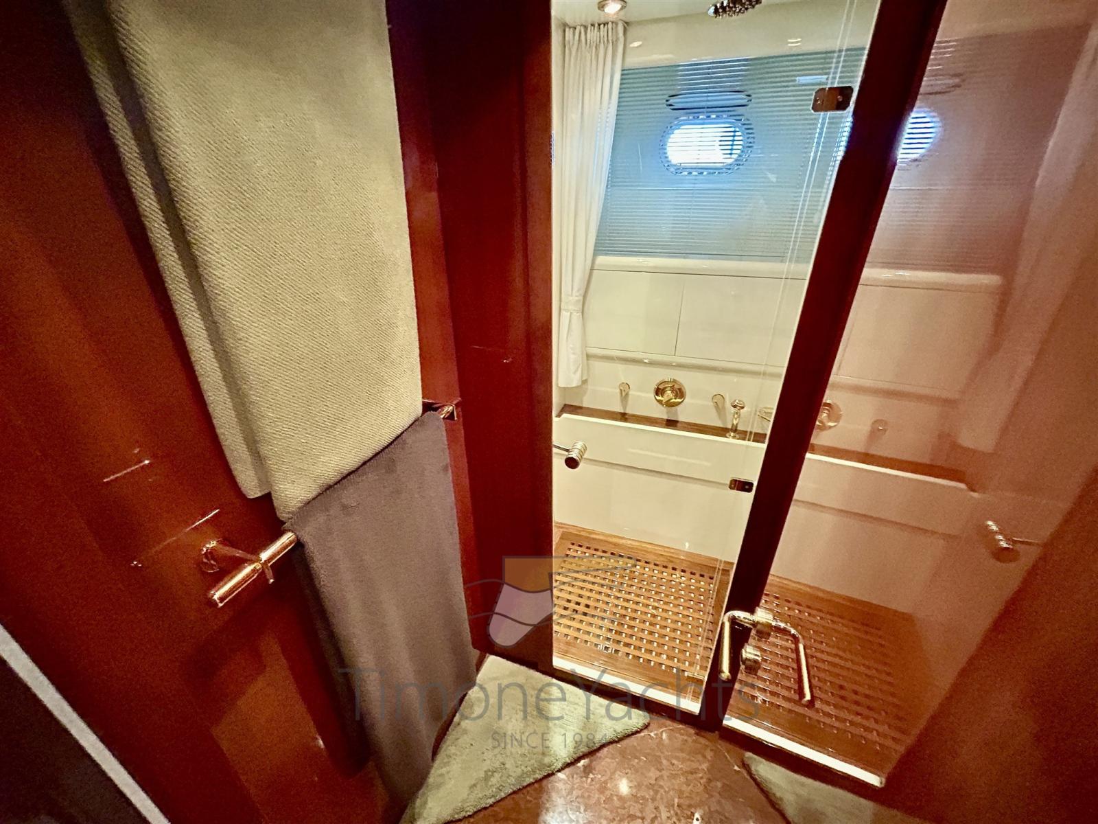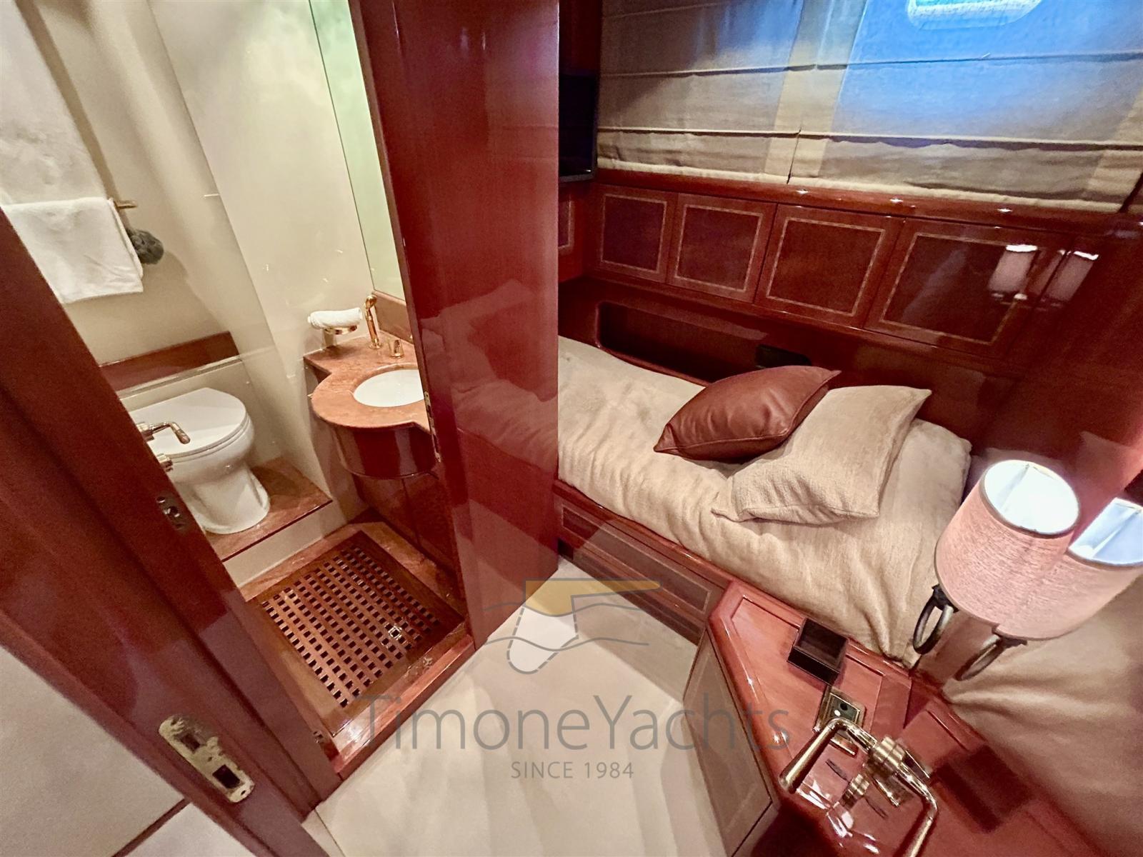 Alarme de pompe de cale, Alternateur, Eau sous pression, Passavant en teck, Douche de cockpit, Phare de poursuite, Flaps hydrauliques, Garage à annexe, Hard top, Extincteur(s) fixe(s), Indicateurs de flaps, Lavage de chaine, Éclairage de courtoisie, Spots sous-marins, Passerelle, Plateforme arrière, Pont en teck, 2 Porte latérale, Cockpit en teck, Prise de quai, Connexion eau sous pression à quai, Onduleur, Guindeau électrique, Echelle de bain, 2 table de cockpit, Annexe, Corne, Winch électrique arrière, Winch électrique avant.