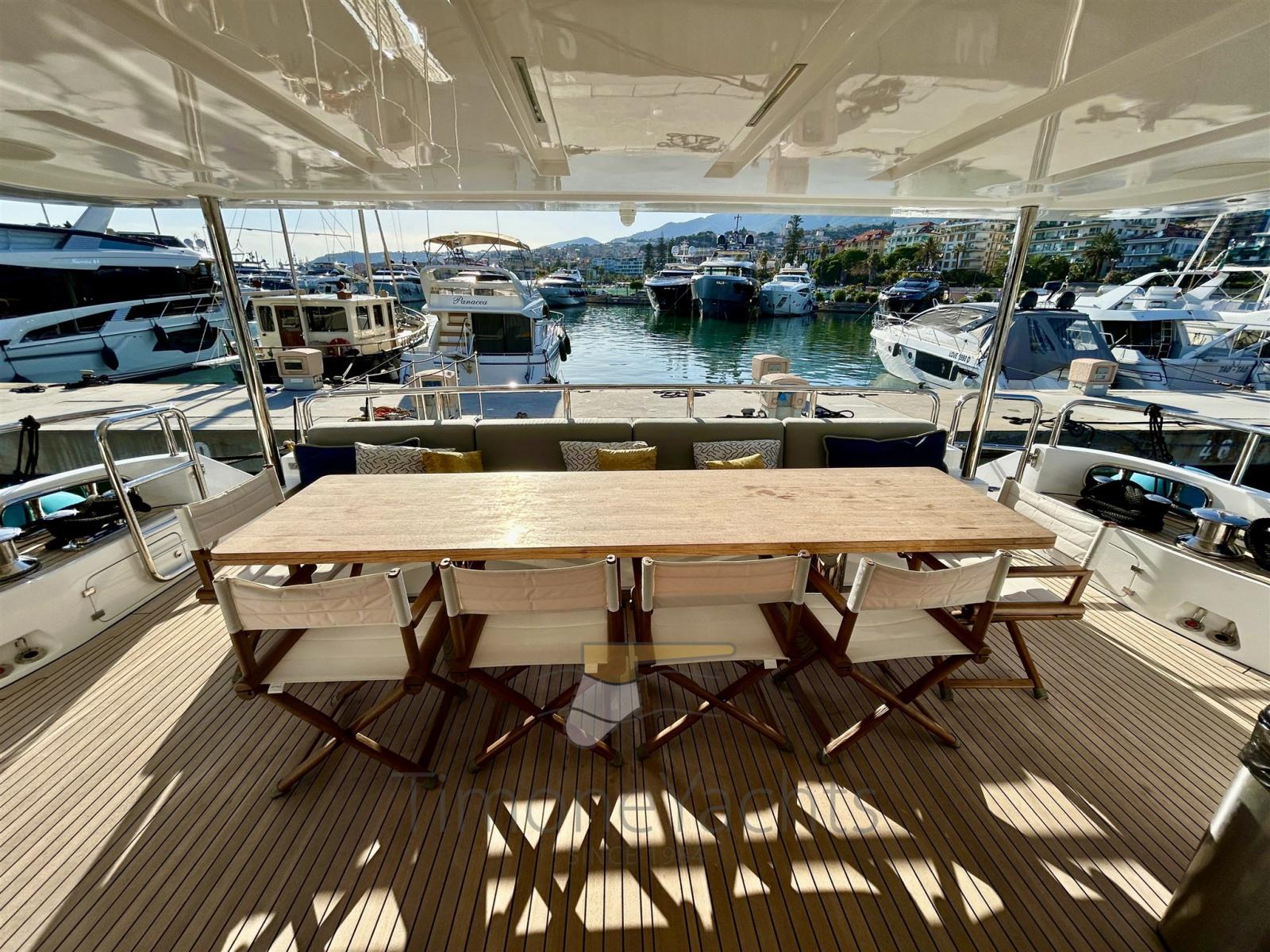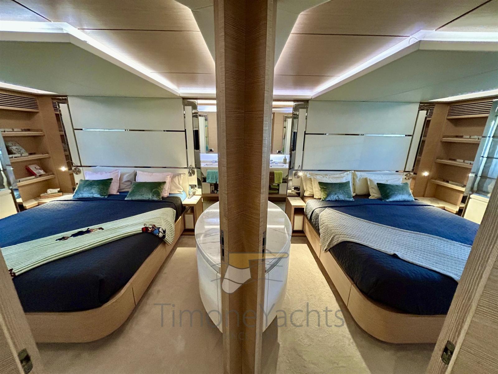 Alarme gaz, Alarme moteur, Alarme de pompe de cale, 2 Ancre, Eau sous pression, 2 Radeau de sauvetage, Système de vidange, Passavant en teck, Câble d’alimentation à quai, Douche de cockpit, Double barre à roue, Garage à annexe, Hard top, Extincteur(s) fixe(s), Compresseur de plongée, 2 Lavage de chaine, Éclairage de courtoisie, Spots sous-marins, Moniteur de batterie, Passerelle, Pompe de cale automatique, Pompe de cale manuelle, Pompe de Lavage du Pont, Pont en teck, Porte latérale, 2 Porte latérale, Cockpit en teck, Prise de quai, Guindeau électrique, Echelle de coupée, Stabilisateurs (Fins, electric (underway + zero speed)), table de cockpit, Filières avec sortie latèrale, Corne, Winch électrique arrière, 2 Winch électrique avant.
