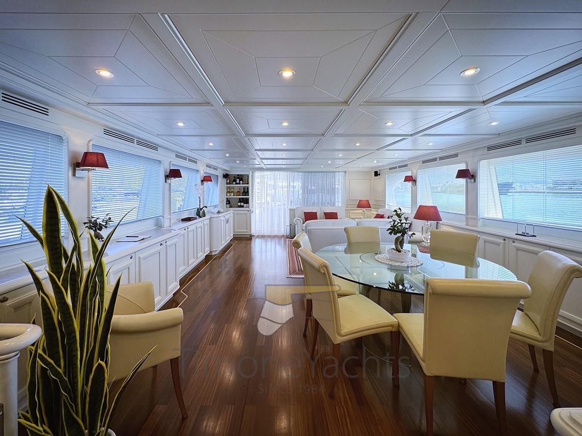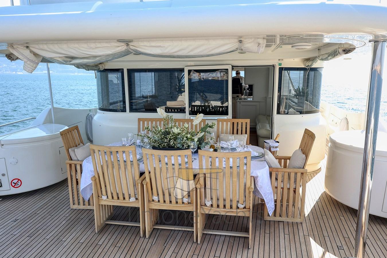 Passavant en teck, Douche de cockpit, Phares fixes arrière, Phare de poursuite, Flaps hydrauliques, Garage à annexe, Grue de flybridge, Extincteur(s) fixe(s), Indicateurs de flaps, Lavage de chaine, Éclairage de courtoisie, Spots sous-marins, Jet-ski (Seadoo 60hp (year 2023)), Passerelle, Porte latérale, Cockpit en teck, Prise de quai, Connexion eau sous pression à quai, Système de filtration des eaux usées (Hamann), 4 Stabilisateurs (nr.3 ARG gyro + fins), table de cockpit, Annexe (Saxador 200 sport (year 2023)), Corne, 2 Winch électrique arrière, 2 Winch électrique avant.