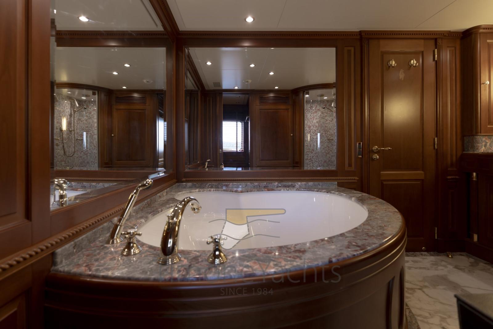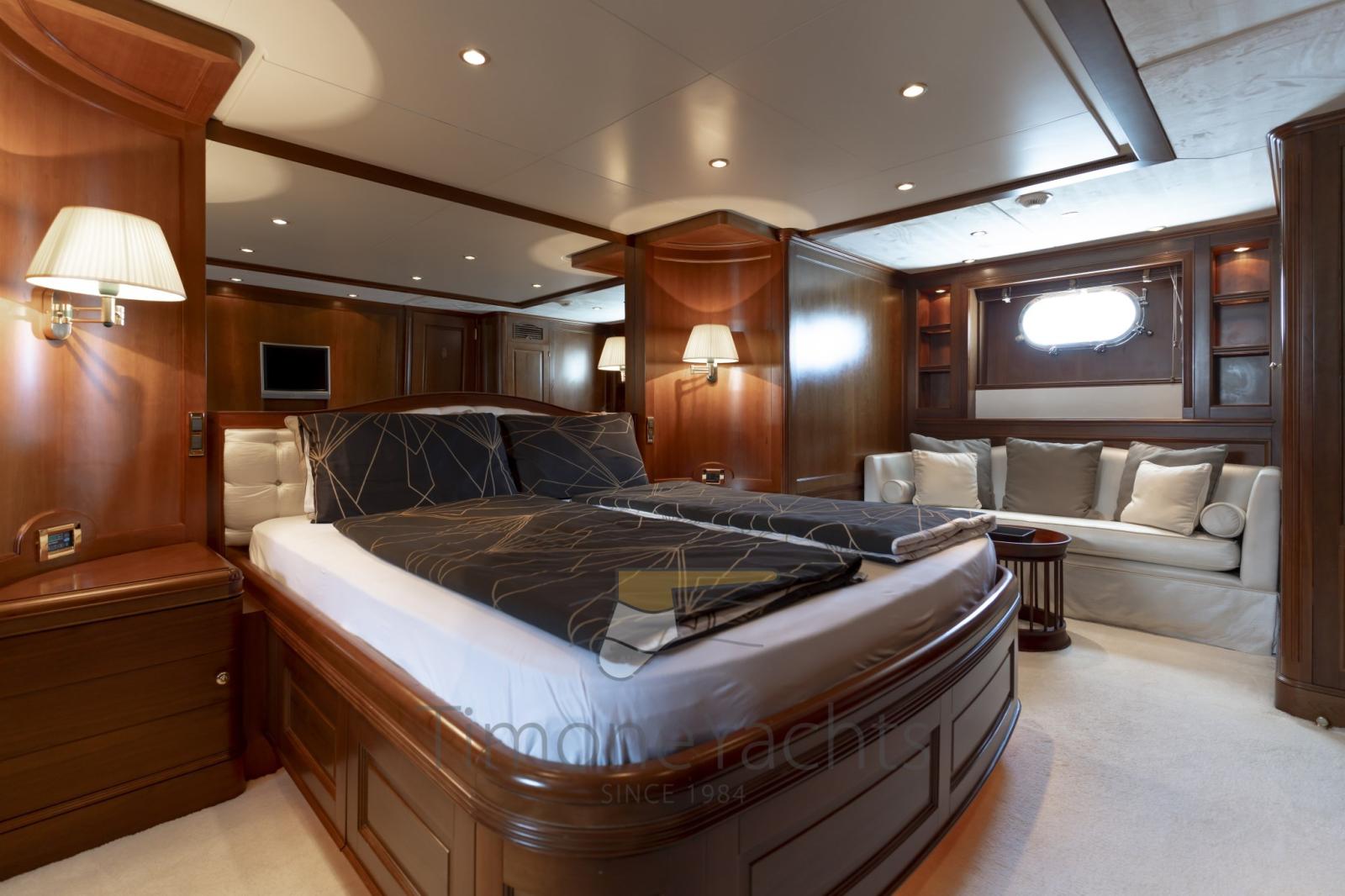 Eau sous pression, Passavant en teck, Douche de cockpit, Double barre à roue, Phare de poursuite, Flaps hydrauliques, Garage à annexe, Grue de flybridge, Lavage de chaine, Spots sous-marins, Passerelle, Plateforme arrière, Porte latérale, 2 Porte latérale, Cockpit en teck, Prise de quai, Connexion eau sous pression à quai, Echelle de bain, Stabilisateurs, table de cockpit, Annexe, Filières avec sortie latèrale, Corne, Winch électrique arrière, Winch électrique avant.
