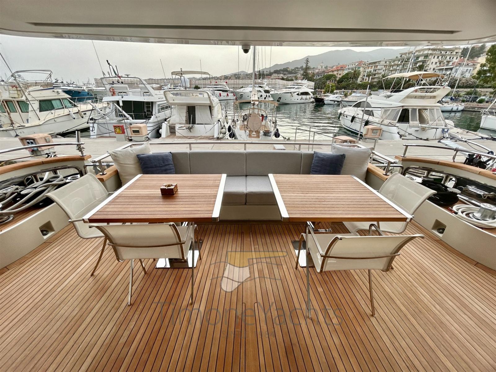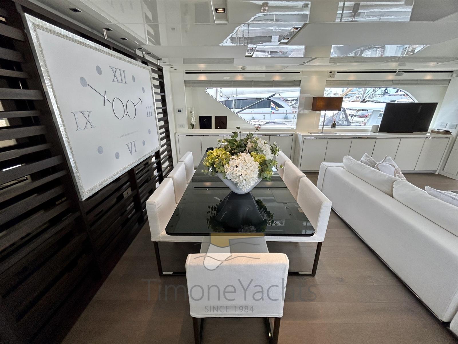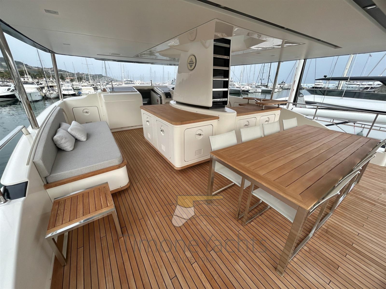 Passavant en teck, Douche de cockpit, Phares fixes arrière, Phare de poursuite, Flaps électriques, Flaps hydrauliques, Garage à annexe, Hard top, Extincteur(s) fixe(s), Indicateurs de flaps, Lavage de chaine, Lavabo dans le cockpit, Éclairage de courtoisie, Spots sous-marins, Passerelle, Porte latérale, Cockpit en teck, Prise de quai, Connexion eau sous pression à quai, Stabilisateurs (CMC fins (underway + zero speed)), table de cockpit, Annexe (Williams 445), Corne, 2 Winch électrique arrière, 2 Winch électrique avant.