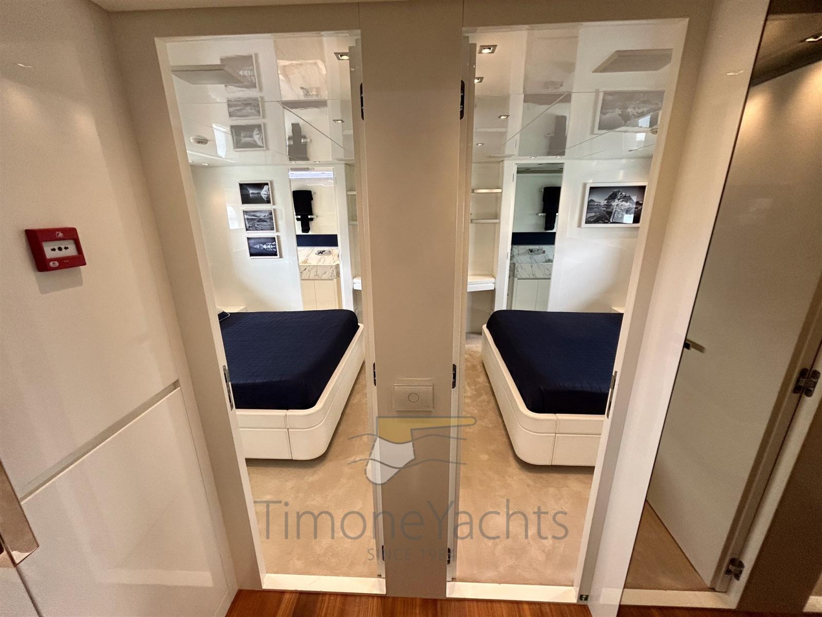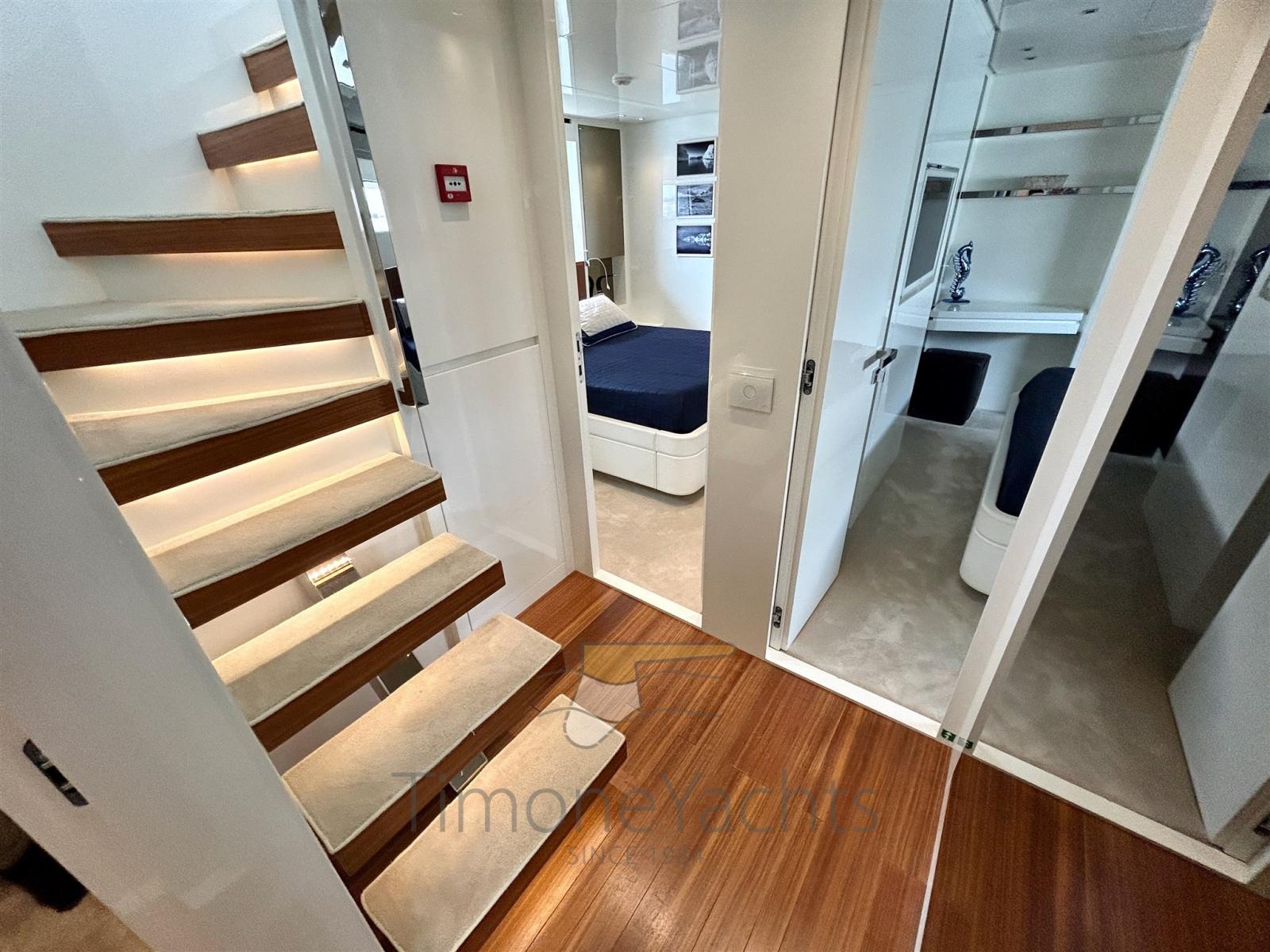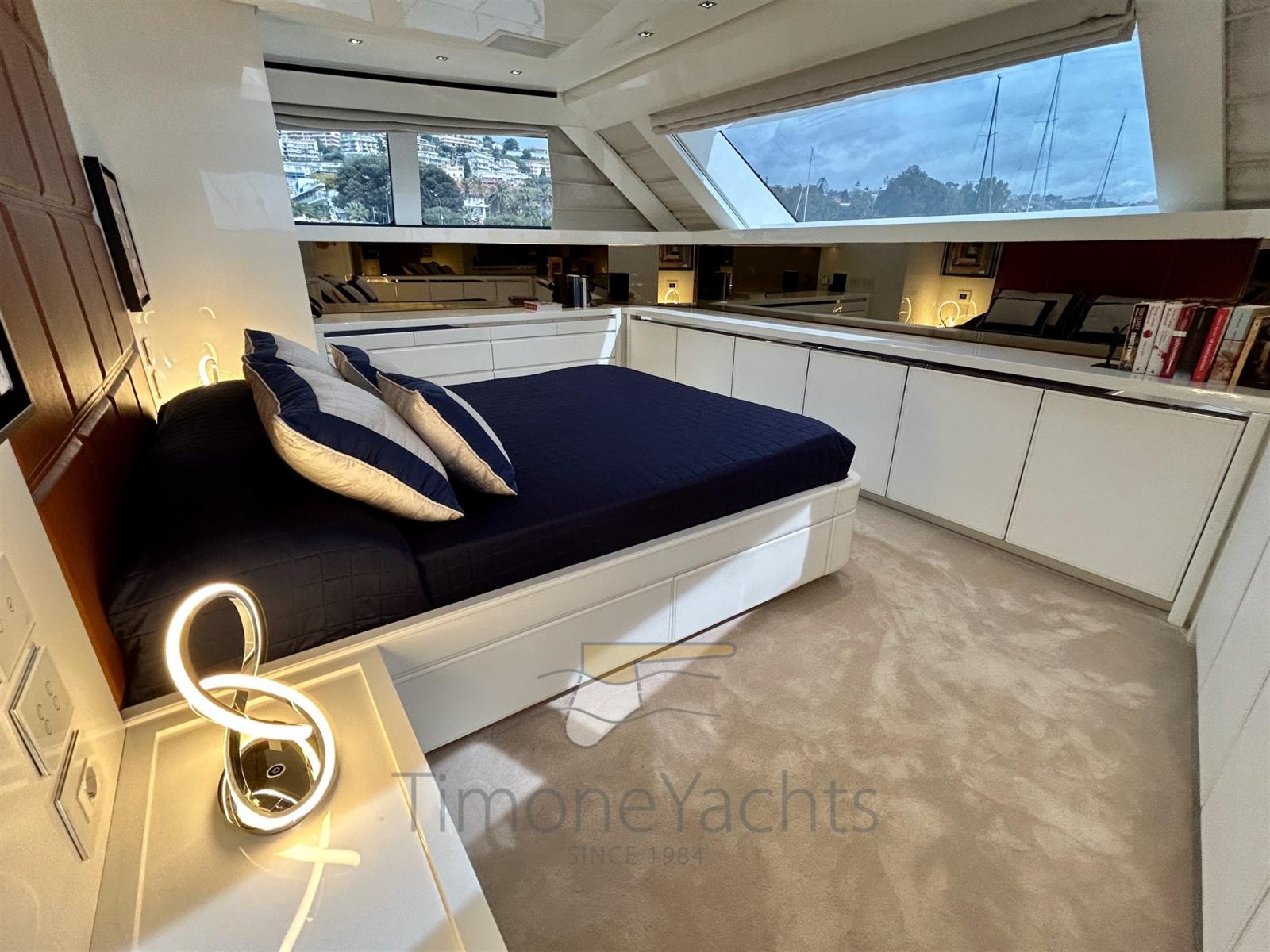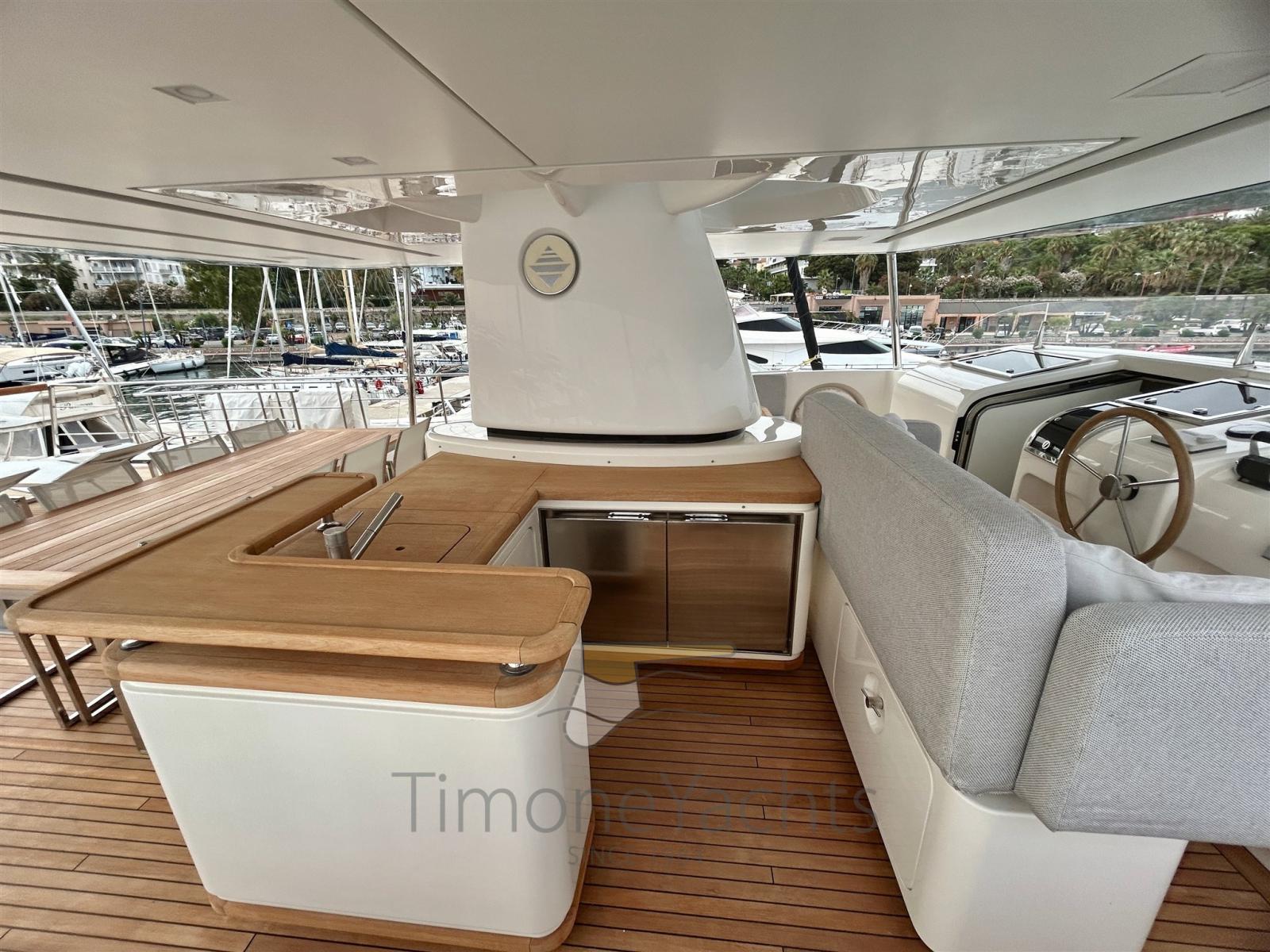 Passavant en teck, Douche de cockpit, Phares fixes arrière, Phare de poursuite, Flaps électriques, Flaps hydrauliques, Garage à annexe, Hard top, Extincteur(s) fixe(s), Indicateurs de flaps, Lavage de chaine, Lavabo dans le cockpit, Éclairage de courtoisie, Spots sous-marins, Passerelle, Porte latérale, Cockpit en teck, Prise de quai, Connexion eau sous pression à quai, Stabilisateurs (CMC fins (underway + zero speed)), table de cockpit, Annexe (Williams 445), Corne, 2 Winch électrique arrière, 2 Winch électrique avant.