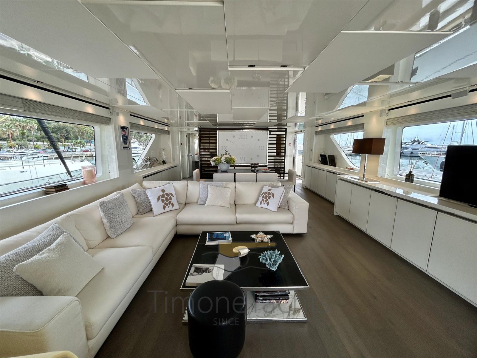 BBQ/ Grill, Ballon d'eau chaude, Coffre-fort, Air Conditionné, Connexion à internet, Contrôleur domotique, Gradateur de lumière, Dessalinisateur, Cuve à eaux noires, Plancher intérieur en bois, Prises interieures 12v, Prises interieures 220v, Réservoir d'eau noire, 5 Toilettes électriques (+ crew).