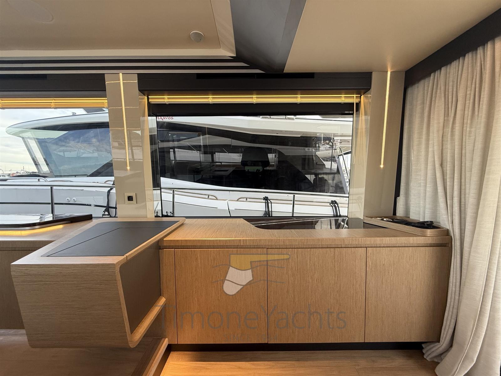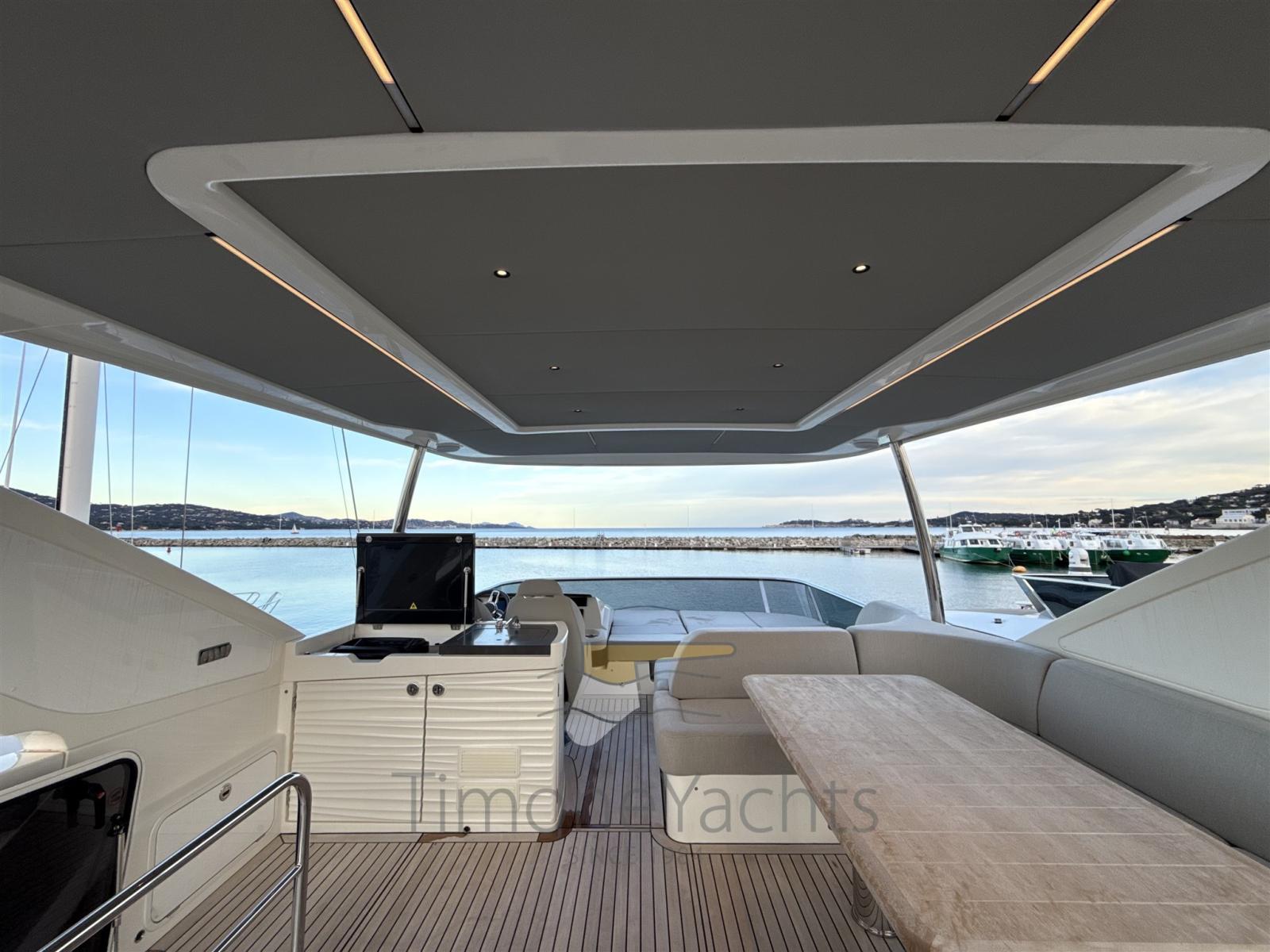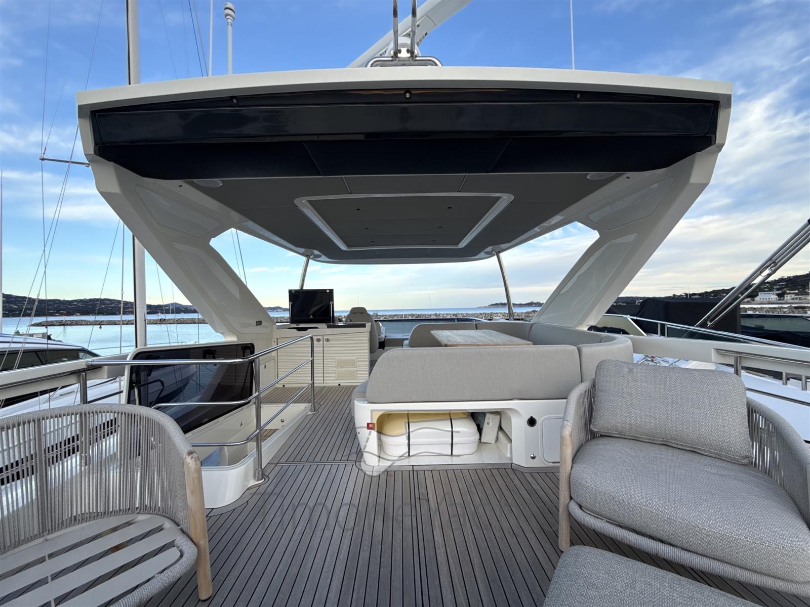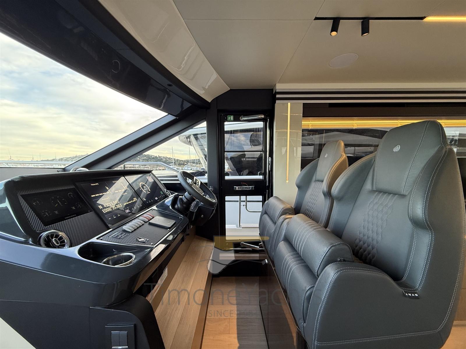 Alarme gaz, Alarme moteur, Alarme de pompe de cale, Alternateur, Auto Dynamic Trim Interceptor, Eau sous pression, Passavant en teck, Câble d’alimentation à quai, Douche de cockpit, Double barre à roue, Flaps électriques, Hard top, Indicateurs de flaps, Lavage de chaine, Lavabo dans le cockpit, Éclairage de courtoisie, Passerelle, Plateforme arrière, Pompe de cale automatique, Pont en teck, Porte latérale, Porte latérale, Cockpit en teck, Prise de quai, Connexion eau sous pression à quai, Echelle de bain, Stabilisateurs (Seakeeper), table de cockpit, Corne, Winch électrique arrière, Winch électrique avant.