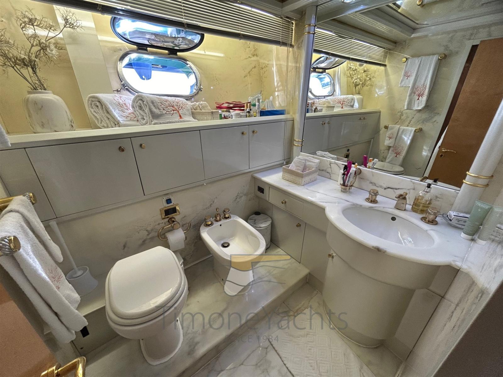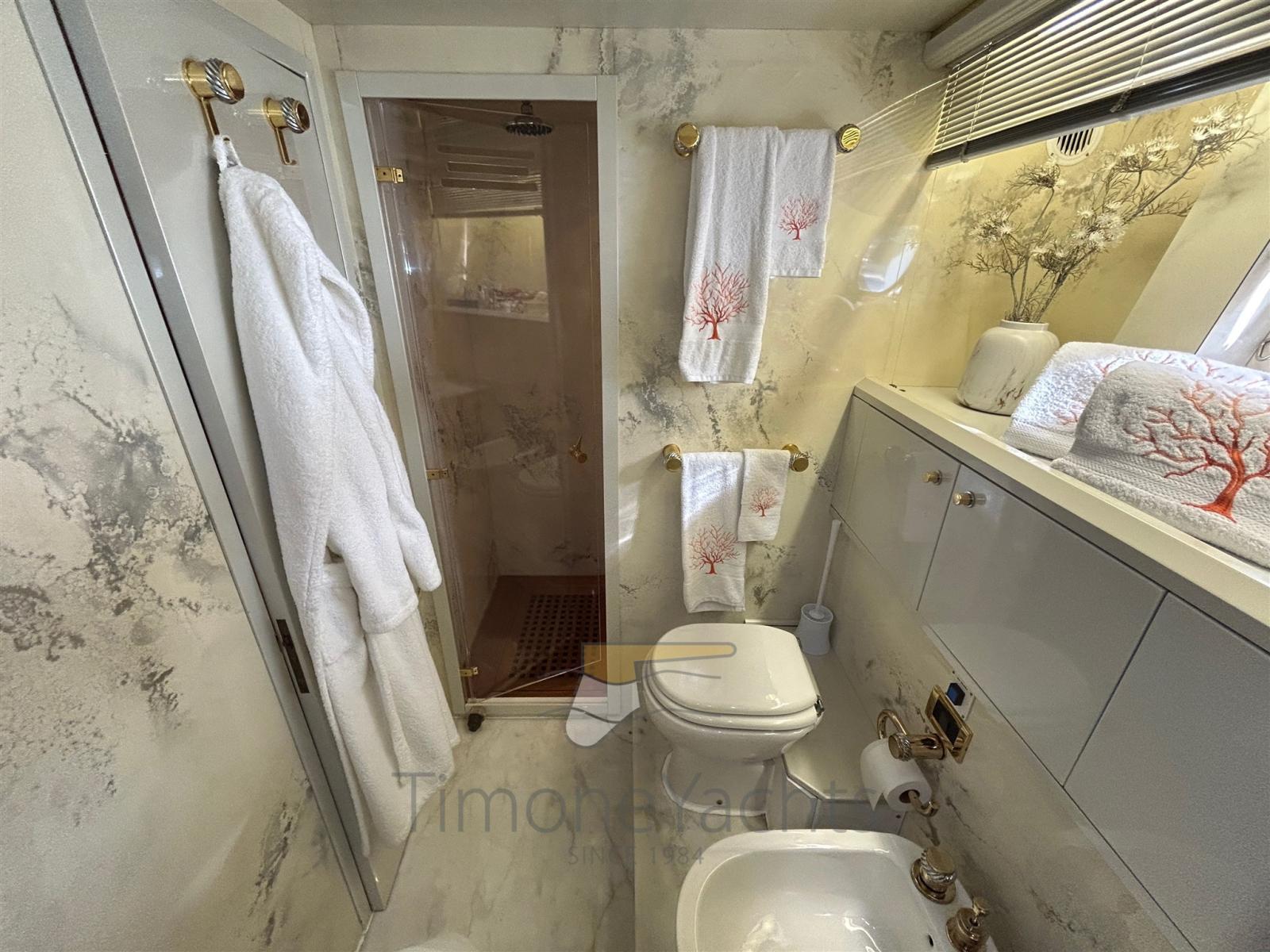4 grandes cabines, chacune avec salle de bain, toutes avec bidet.
