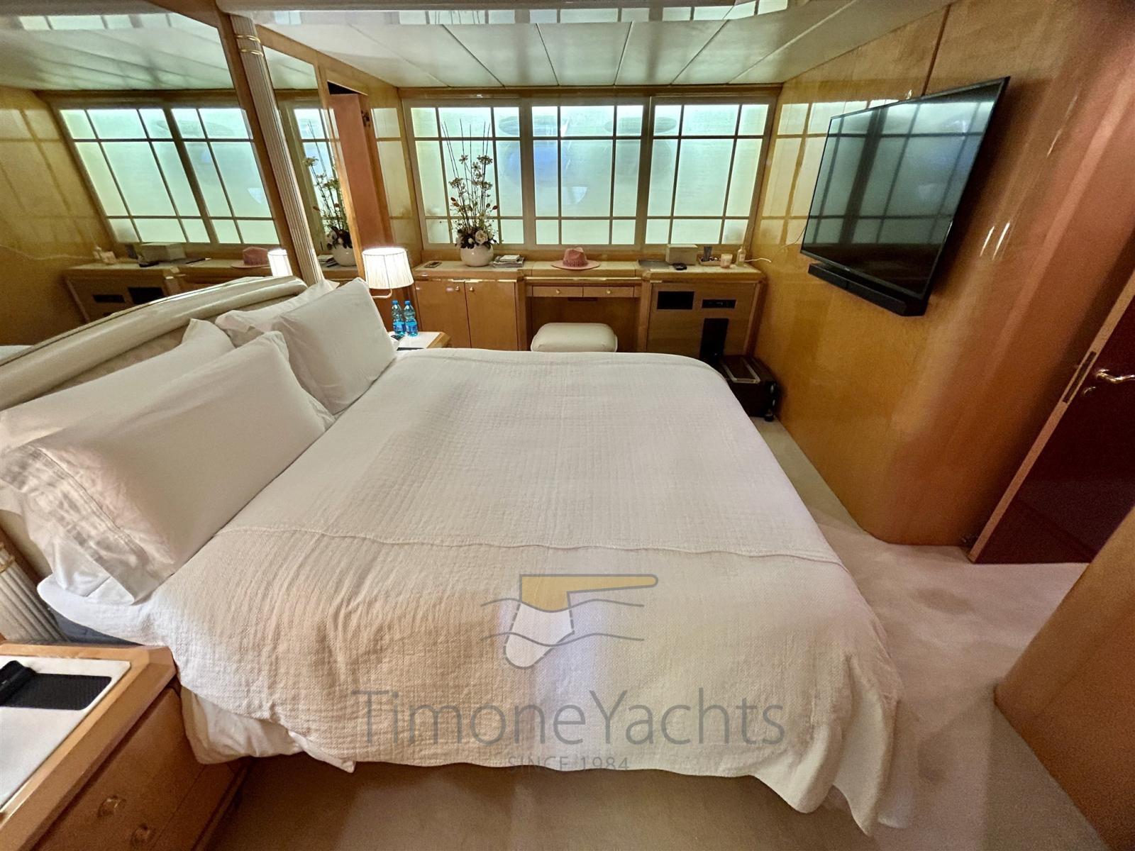 Cette Mangusta 92 de 1995 est étonnamment toujours entre les mains de son premier propriétaire. Et lors de mon inspection, il m’a été assez facile de comprendre pourquoi il a gardé l’unité si longtemps. Nous sommes devant un bateau ouvert pur, avec le bonheur des bains de soleil arrière et du cockpit aéré, naturellement voté pour recevoir avec style juste au-dessus de l’eau. Mais pourtant, l’intérieur bénéficie du confort qu’un grand yacht à moteur peut offrir. Le salon intérieur est abaissé et rappelle celui qui arrive (beaucoup) des années plus tard sur la Mangusta 130.