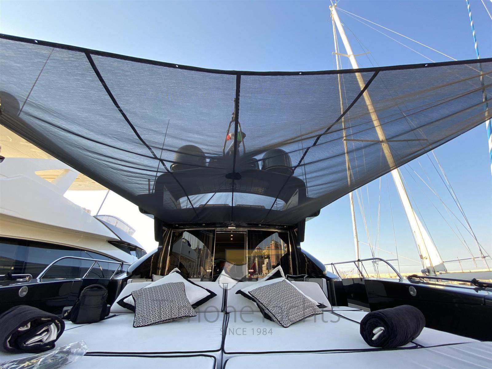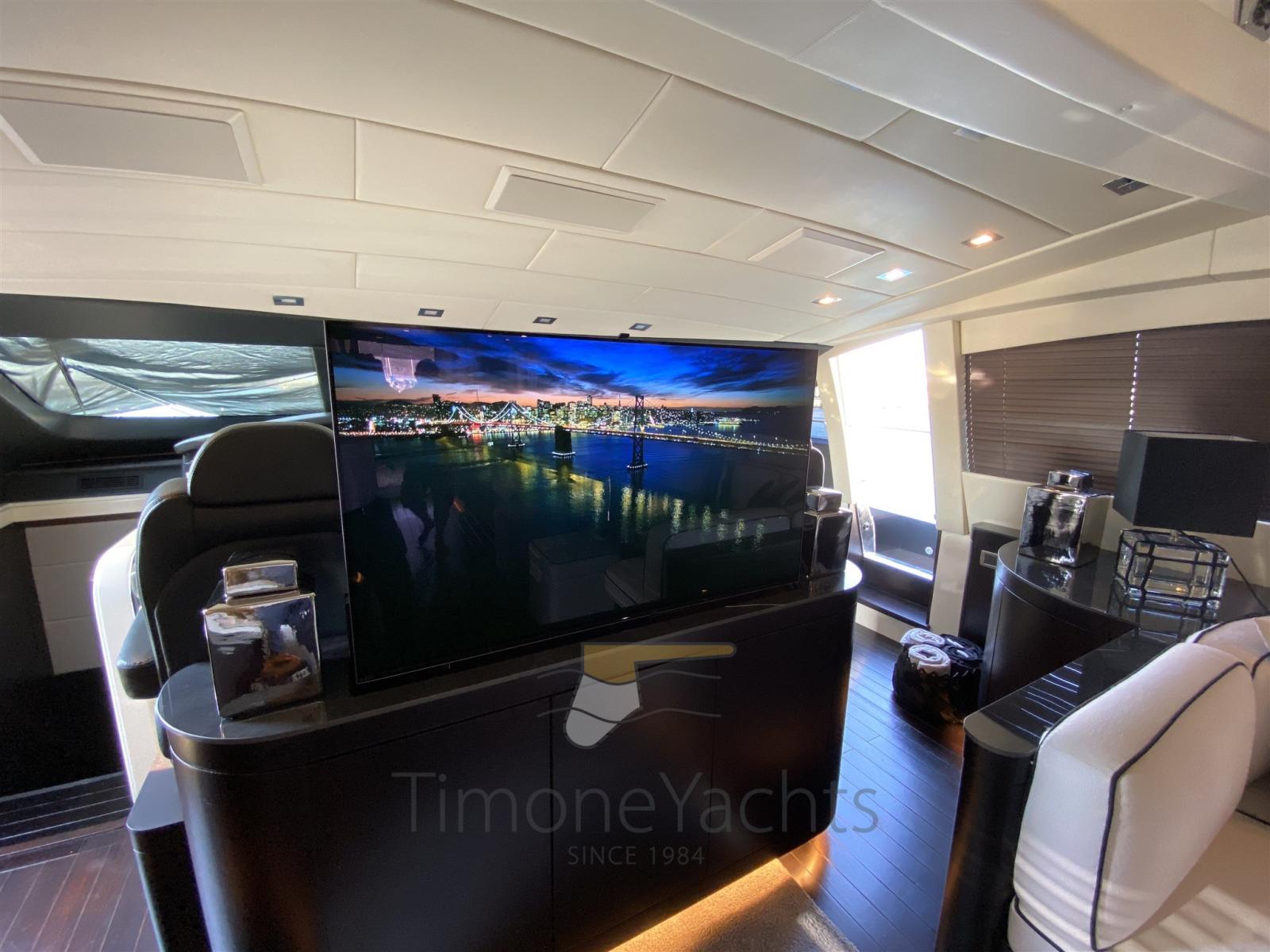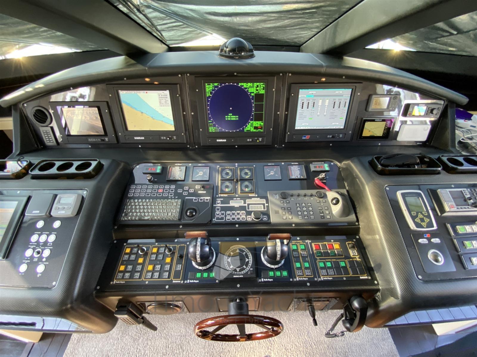 Passavant en teck, Douche de cockpit, Phares fixes arrière, Phare de poursuite, Flaps électriques, Garage à annexe, Hard top, Extincteur(s) fixe(s), Indicateurs de flaps, Lavage de chaine, Éclairage de courtoisie, Spots sous-marins, Passerelle, Porte latérale, Cockpit en teck, Prise de quai, Connexion eau sous pression à quai, table de cockpit, Annexe, Winch électrique arrière, Winch électrique avant.