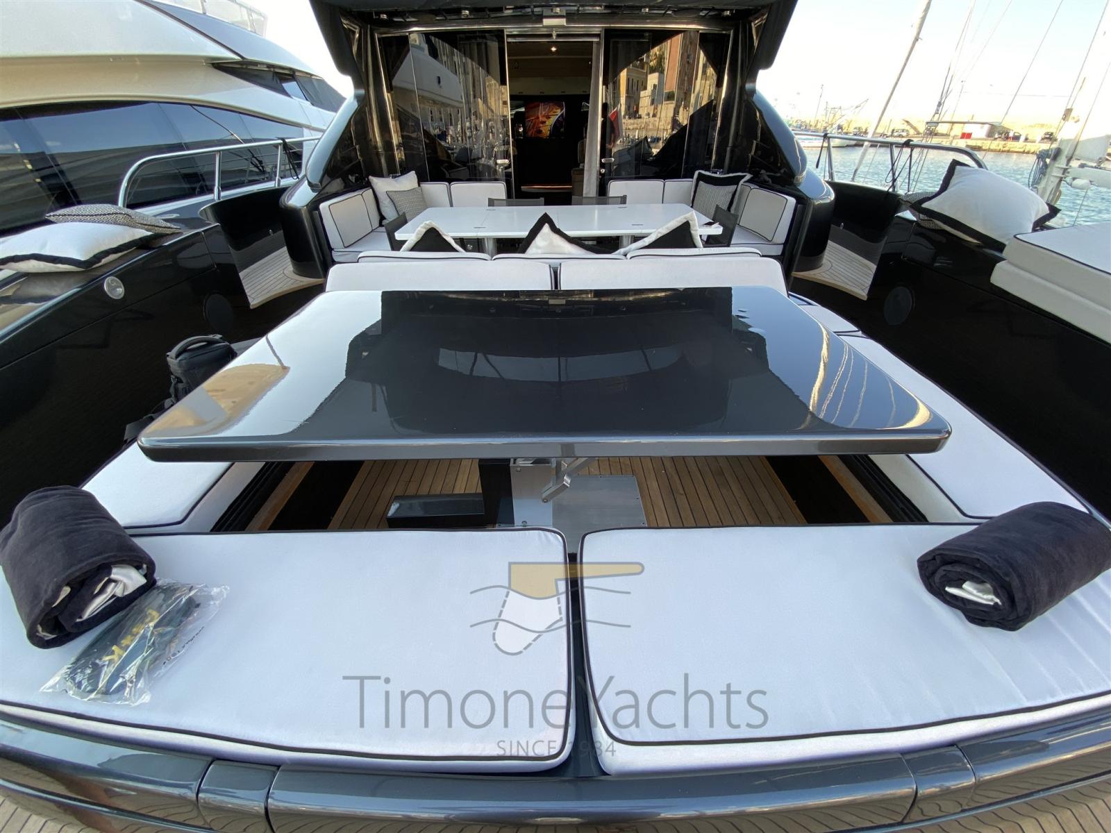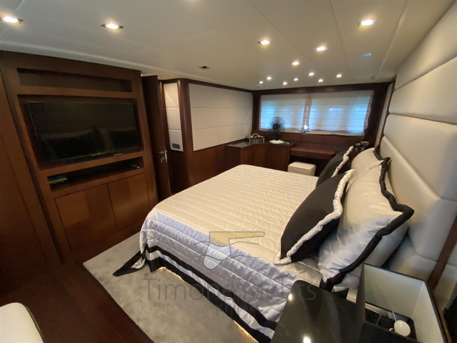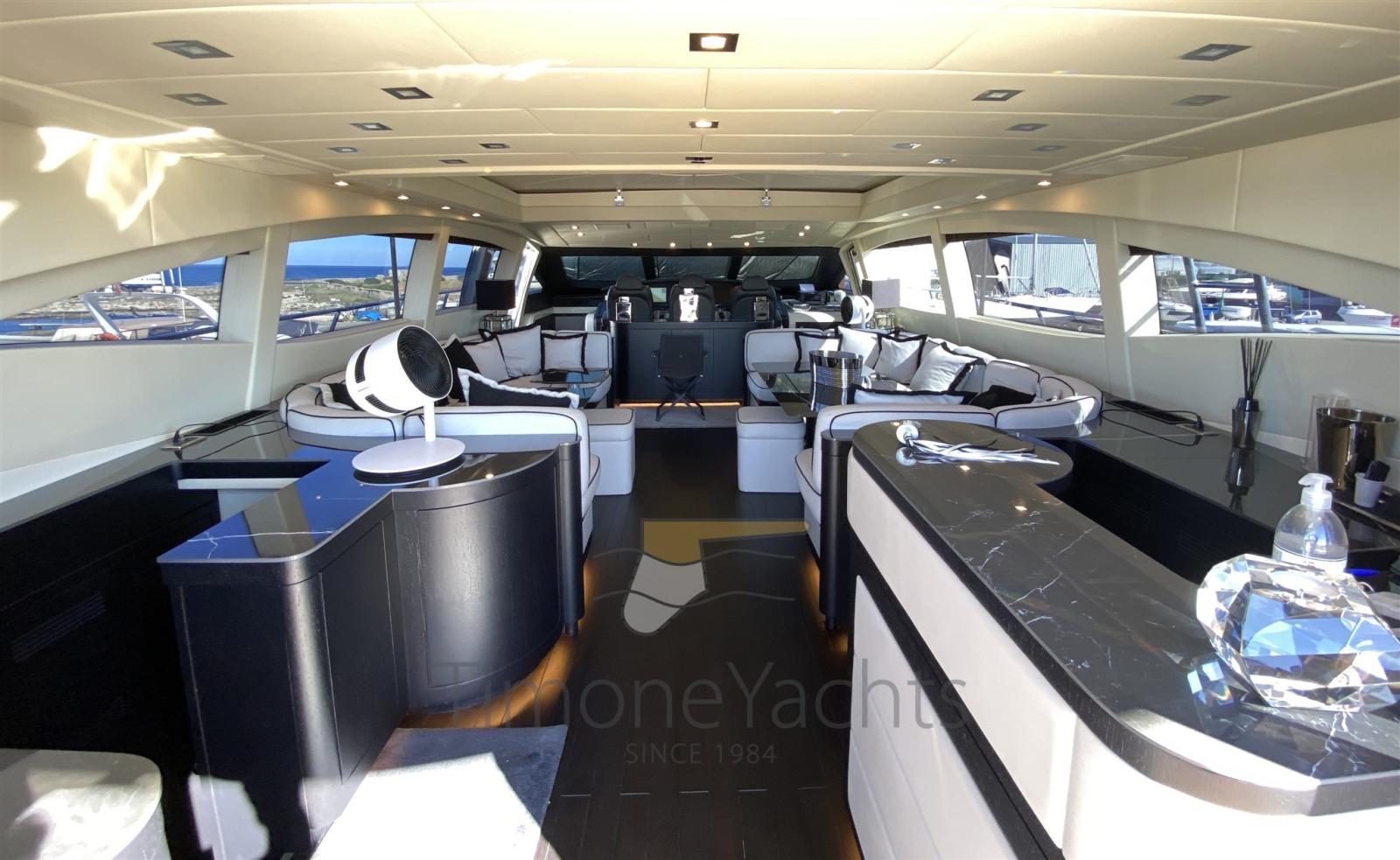 Passavant en teck, Douche de cockpit, Phares fixes arrière, Phare de poursuite, Flaps électriques, Garage à annexe, Hard top, Extincteur(s) fixe(s), Indicateurs de flaps, Lavage de chaine, Éclairage de courtoisie, Spots sous-marins, Passerelle, Porte latérale, Cockpit en teck, Prise de quai, Connexion eau sous pression à quai, table de cockpit, Annexe, Winch électrique arrière, Winch électrique avant.