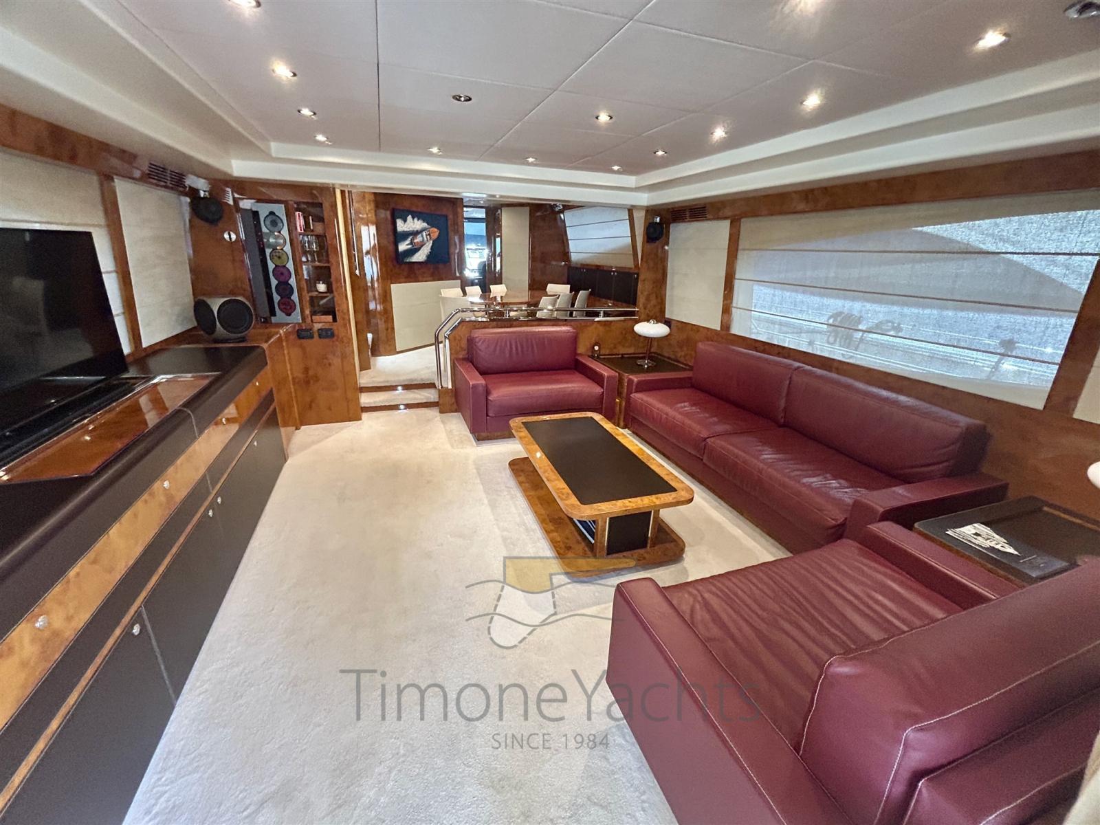 Eau sous pression, Passavant en teck, Douche de cockpit, Phares fixes arrière, Phare de poursuite, Flaps hydrauliques, Garage à annexe (capable of 3.6 outboard dinghy), Grue de flybridge, Extincteur(s) fixe(s), Indicateurs de flaps, Lavage de chaine, Éclairage de courtoisie, Spots sous-marins, Passerelle, Plateforme arrière, Pompe de cale manuelle, 2 Porte latérale, Cockpit en teck, Prise de quai, Connexion eau sous pression à quai, Onduleur, Echelle de bain, 2 Stabilisateurs (Mitsubishi ARG), table de cockpit, Corne, 2 Winch électrique arrière, 2 Winch électrique avant.