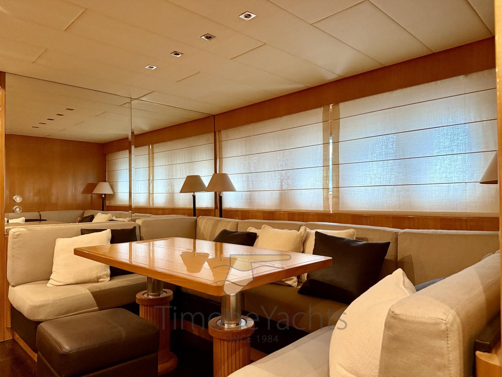 Eau sous pression, Câble d’alimentation à quai, Douche de cockpit, Phare de poursuite, Flaps hydrauliques (N°2), Garage à annexe, Bossoirs, Hard top, Lavage de chaine, Lavabo dans le cockpit, Éclairage de courtoisie, Spots sous-marins, Passerelle (IDRAULICA), Plateforme arrière, Pompe de cale automatique, Pompe de Lavage du Pont, Pont en teck, Prise de quai, Onduleur, Rollbar, Guindeau électrique, table de cockpit, Annexe, Winch électrique arrière, Winch électrique avant.