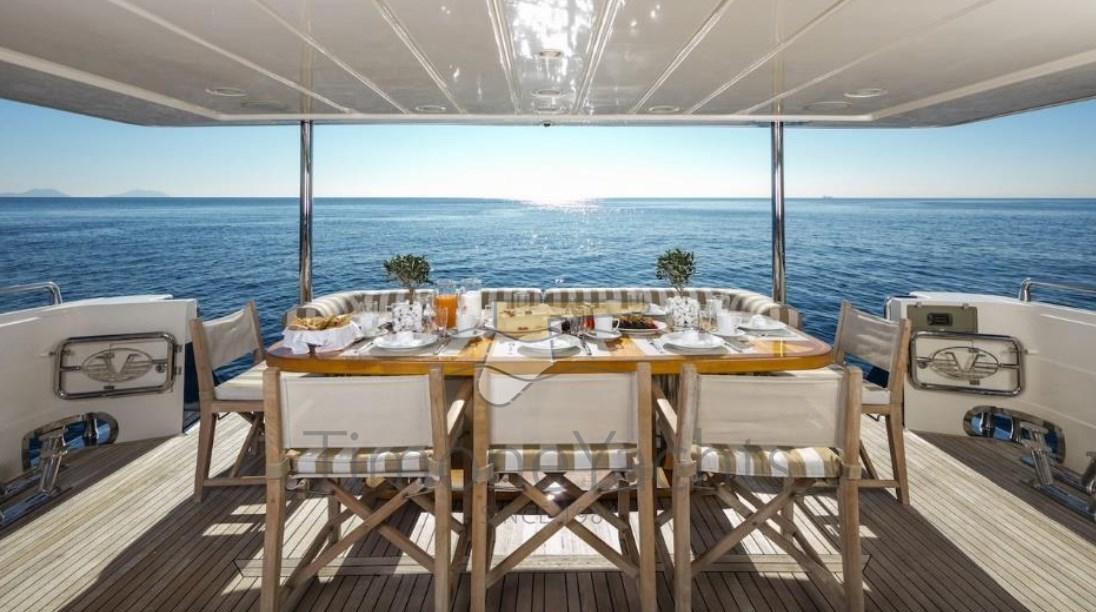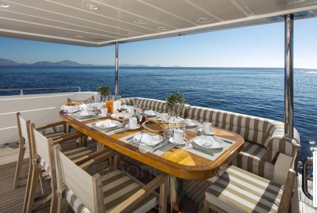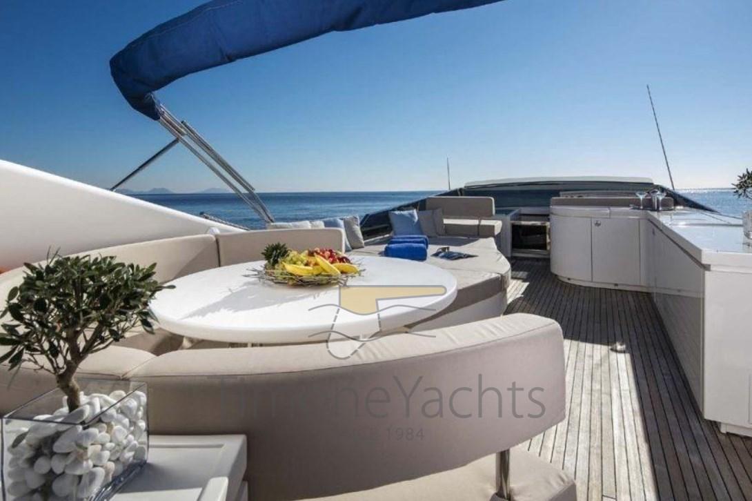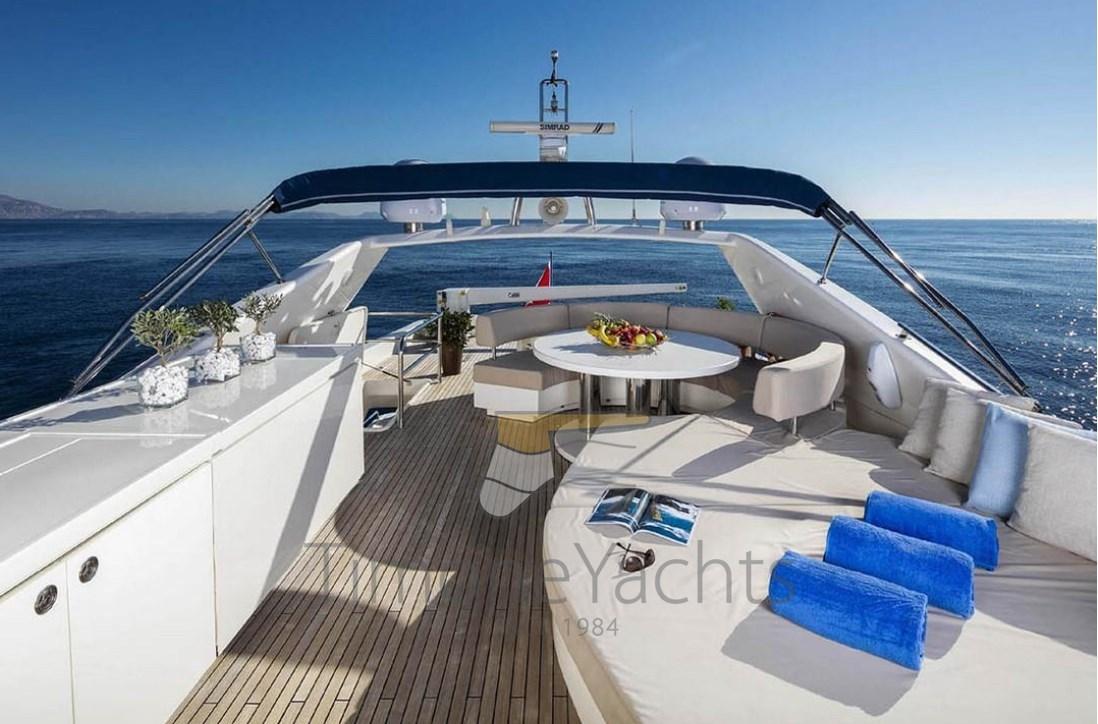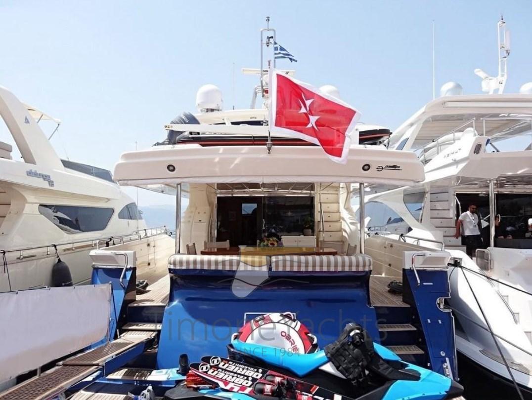 Eau sous pression, Douche de cockpit, Double barre à roue, Flaps hydrauliques, Grue de flybridge, Extincteur(s) fixe(s), Passerelle, Plateforme arrière, Pompe de cale automatique, Pompe de cale manuelle, Onduleur, Guindeau électrique, Echelle de bain, Annexe (4.3 m Zar 60 hp).
