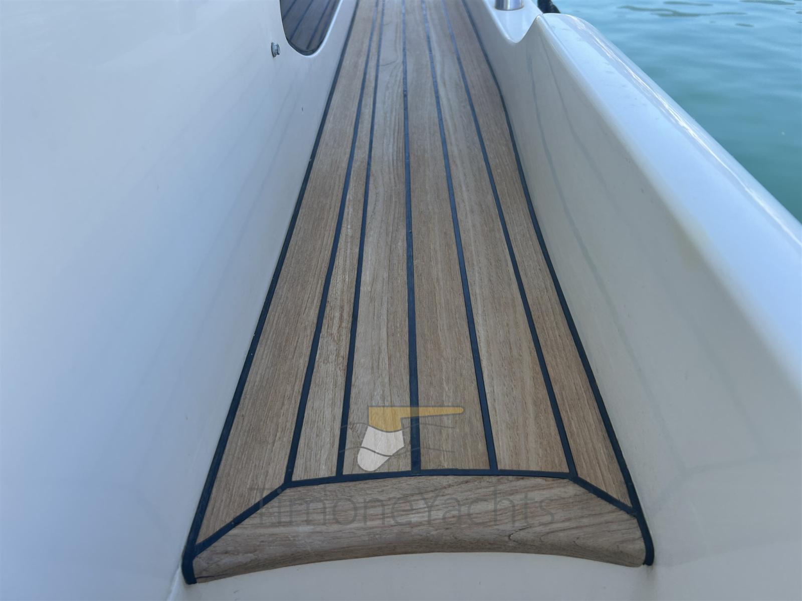 Eau sous pression, Passavant en teck, Douche de cockpit, Double barre à roue, Phare de poursuite, Flaps hydrauliques (N°2), Extincteur(s) fixe(s), Indicateurs de flaps, Lavabo dans le cockpit ((on fly)), Passerelle, Plateforme arrière, Pompe de cale automatique, Cockpit en teck, Prise de quai, Onduleur, Rollbar, Guindeau électrique, Echelle de bain, table de cockpit, Table pliante de salon, Corne, Winch électrique arrière, Winch électrique avant.