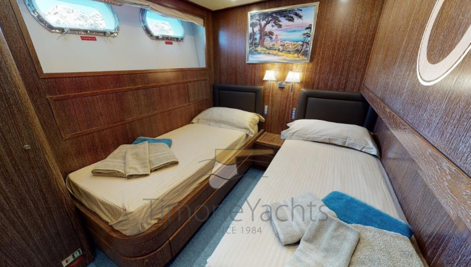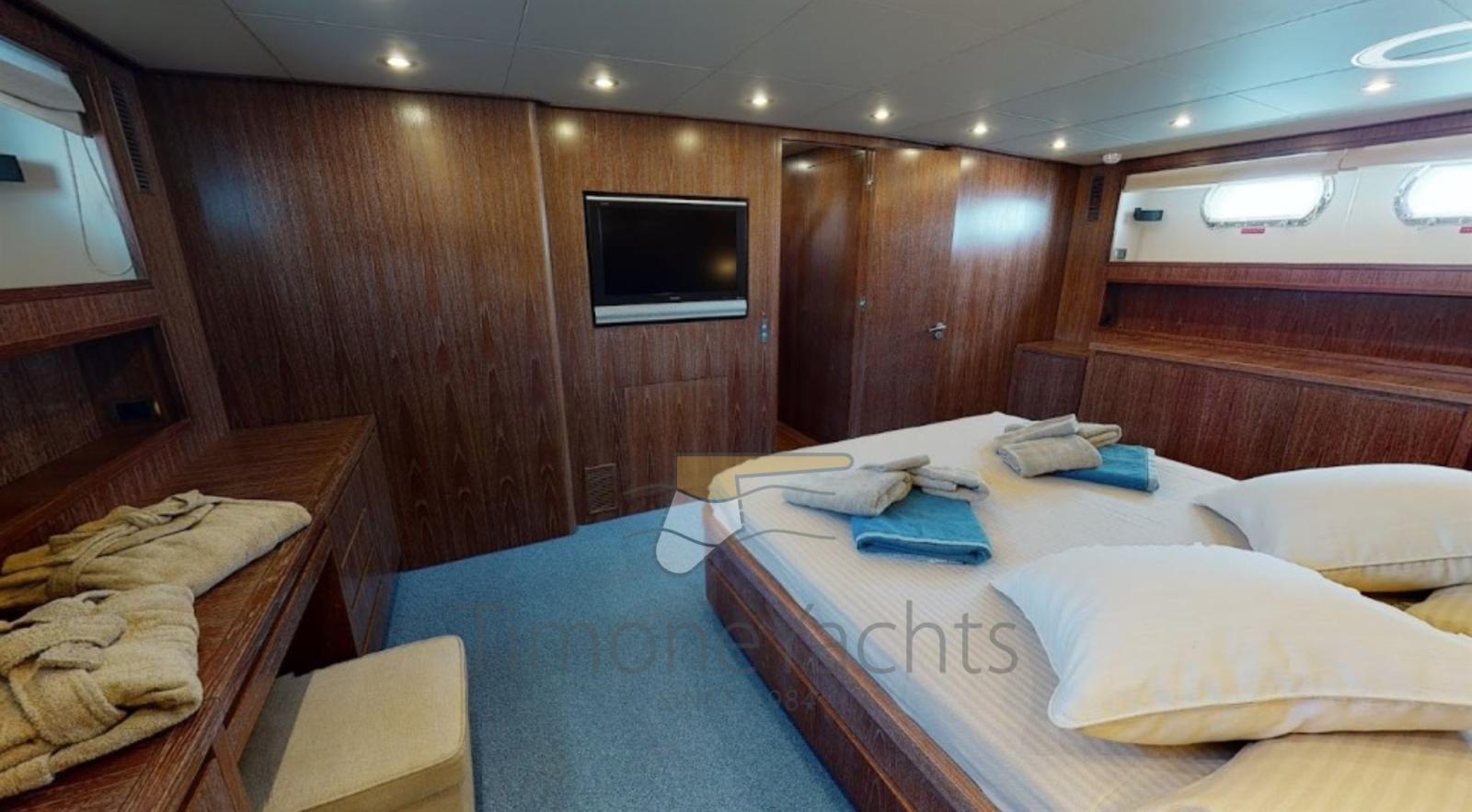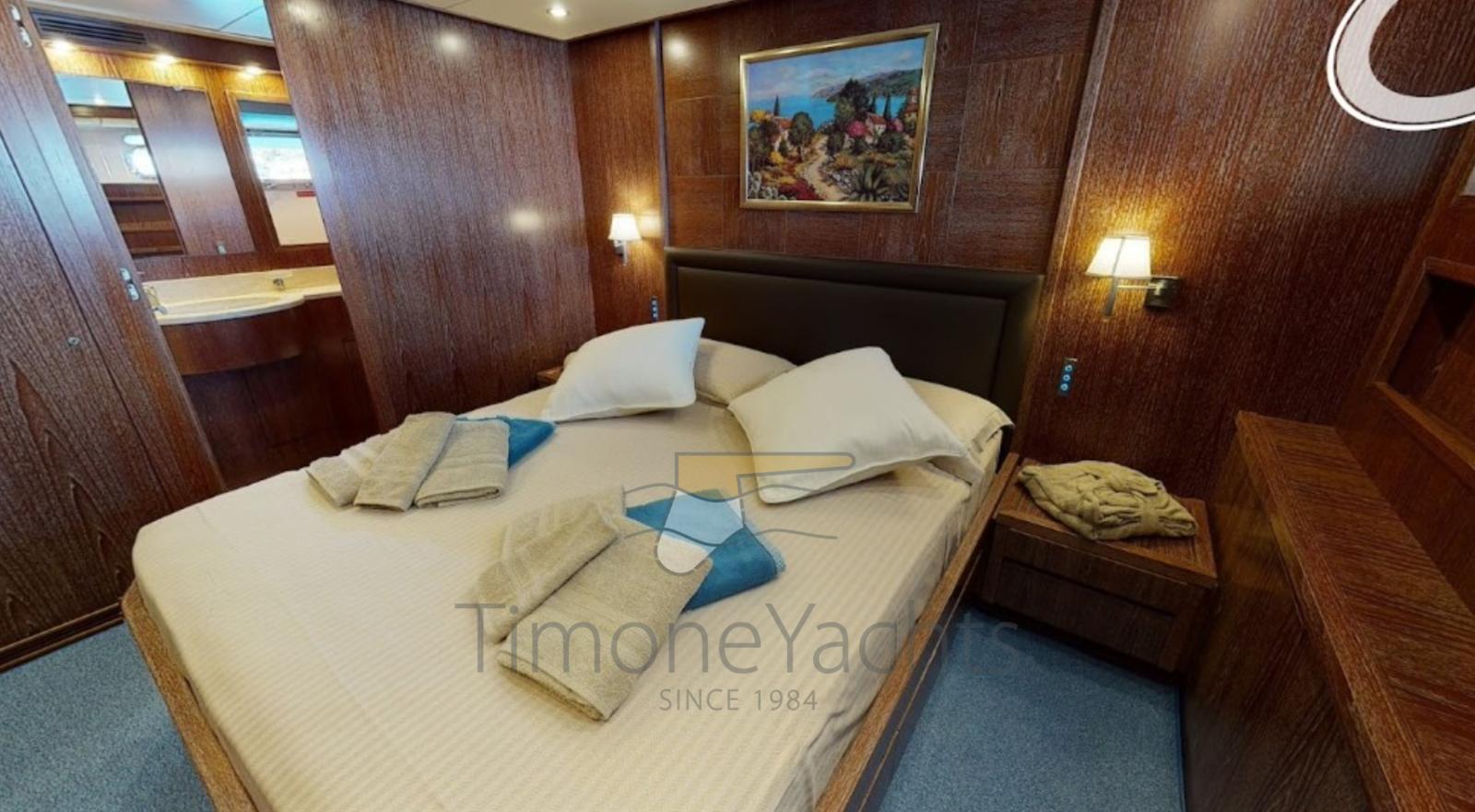 Spectaculaire AKHIR 85 en fibre de verre, salle de bain de jour sur le pont principal, stabilisateurs d’ailerons TRAC (vitesse nulle + en route), plate-forme montante / descendante à l’arrière, jacuzzi à la volée. Navire privé, TVA européenne payée, bateau de plaisance. 4 cabines avec salle de bains.