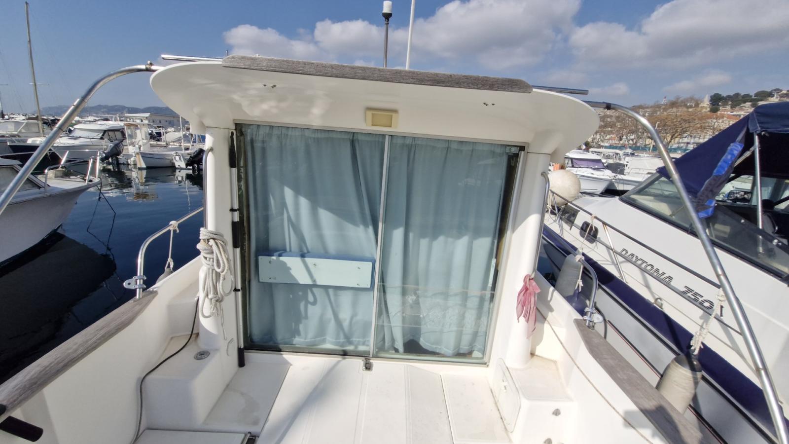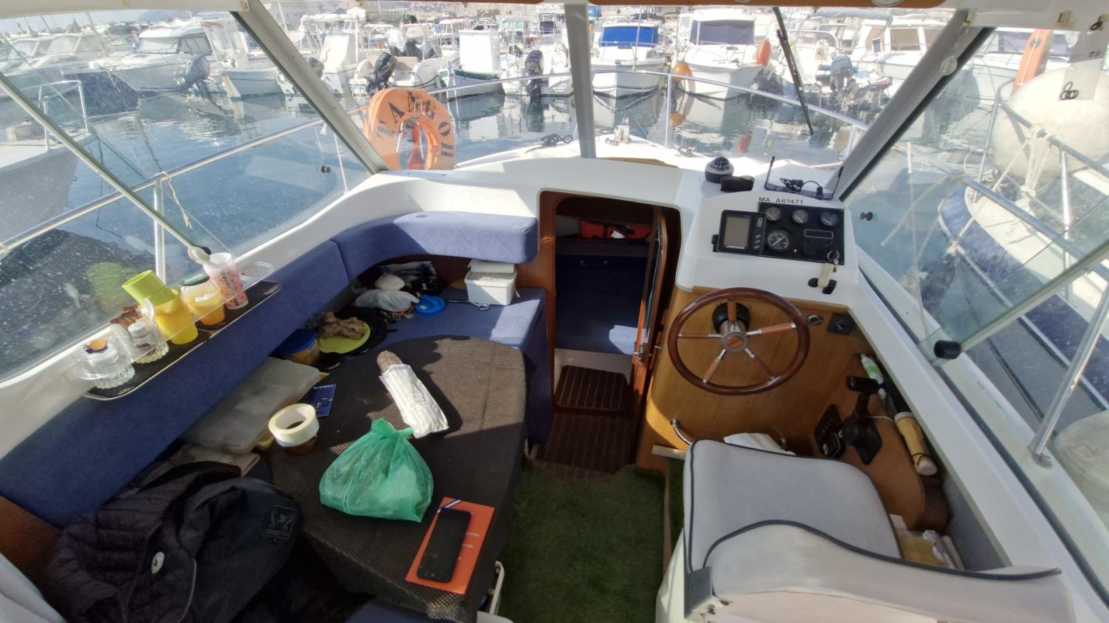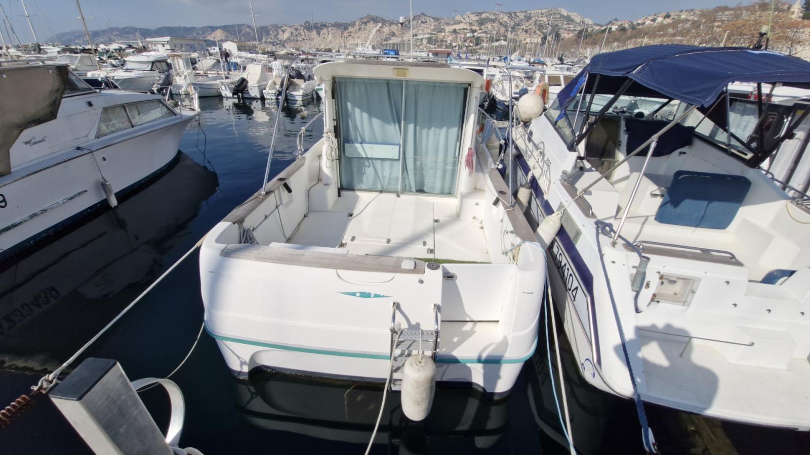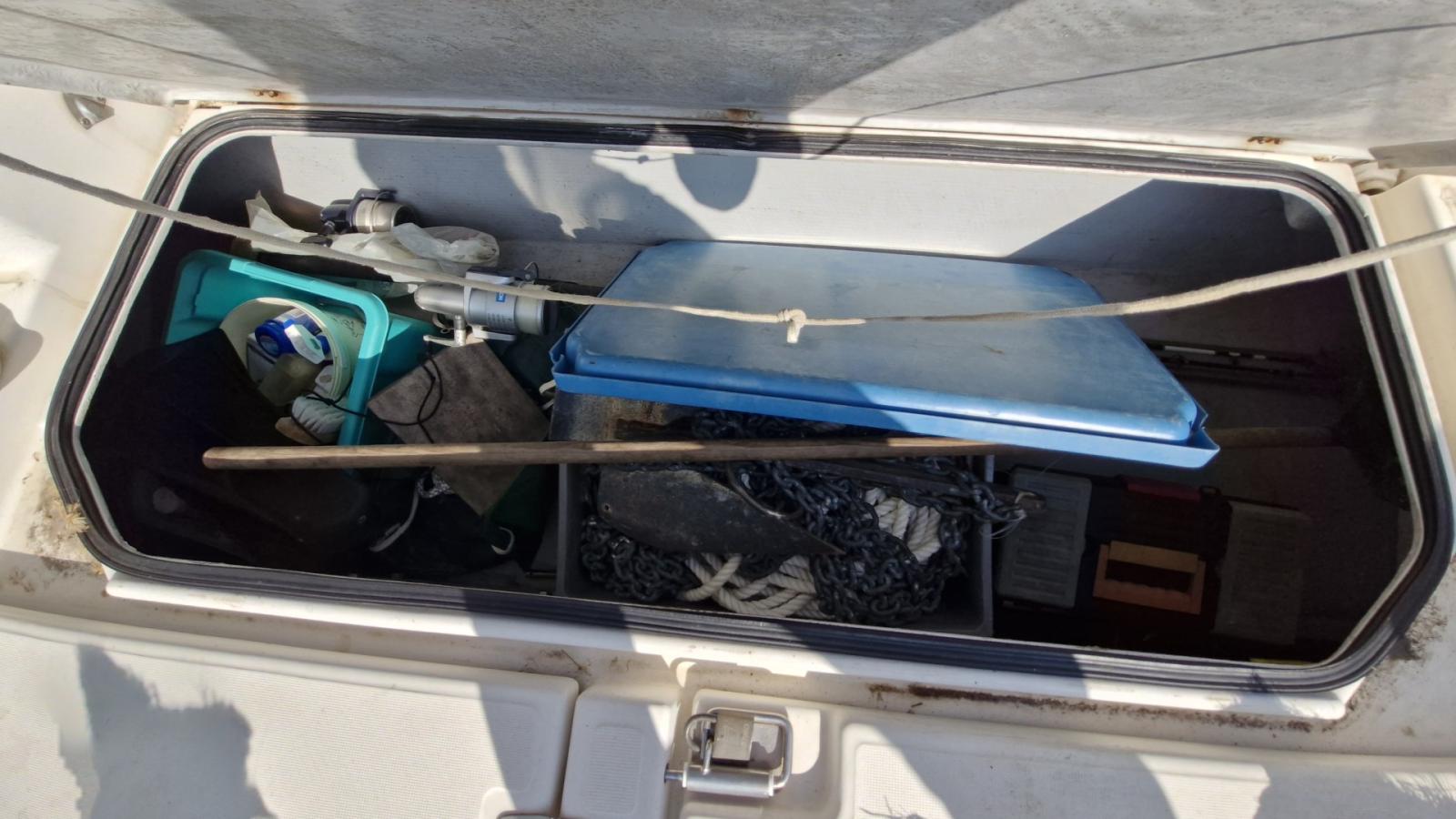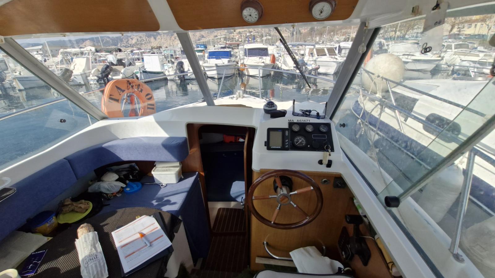 2 porte-cannes, Plateforme de bain, Échelle de bain, Guindeau électrique, Pompe à eau de mer avec prise eau de mer, Coussins de cockpit, Bimini récent, Taud de parebrise, Cabine avant, 2 couchettes doubles, 4 couchages, WC marin, Réfrigérateur, Réchaud gaz, Évier, VHF NAVICOM RT 550, AIS émetteur/récepteur, GPS LOWRANCE 7