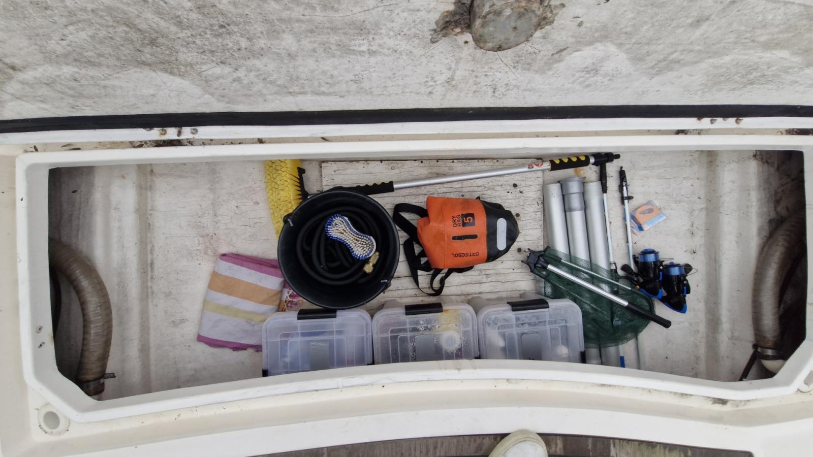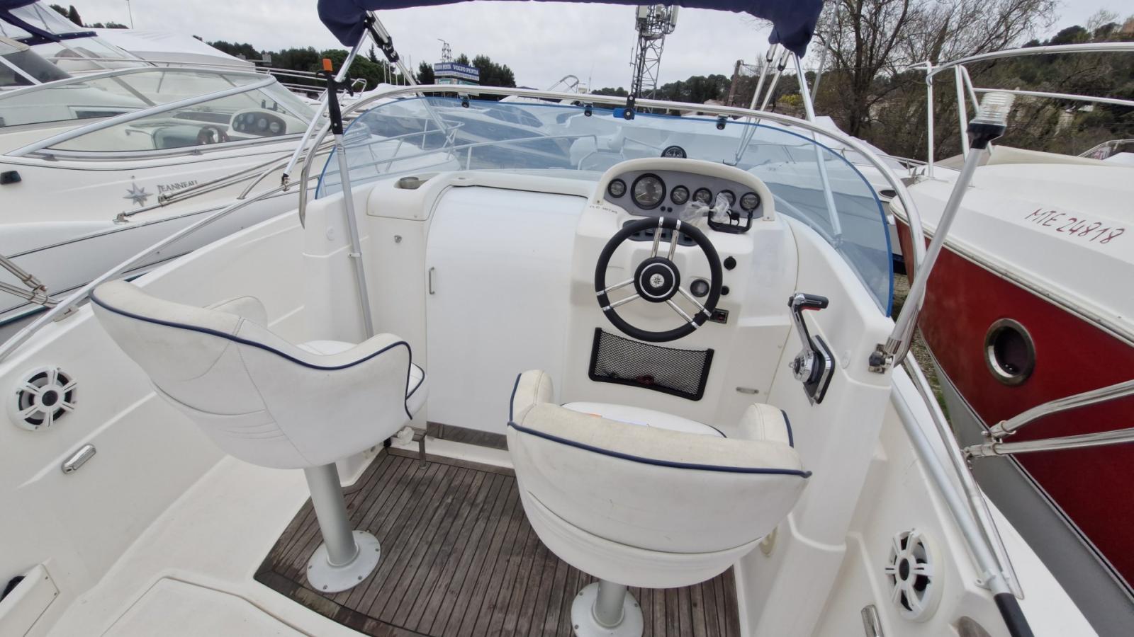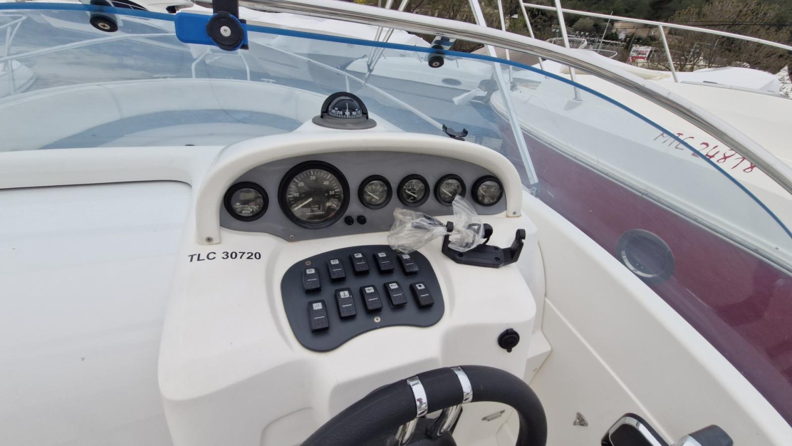 Table cockpit, Plateforme de bain, Guindeau électrique, LED subaquatiques, Haut-parleurs, Prise de quai, Batteries 110Ah moteur + service, GPS & Sondeur HUMMINBIRD HELIX 5, Traceur, Bain de soleil avant, Bimini x2 (avant + arrière), Cabine avant, Cuisine en long, Réservoir eaux noires.