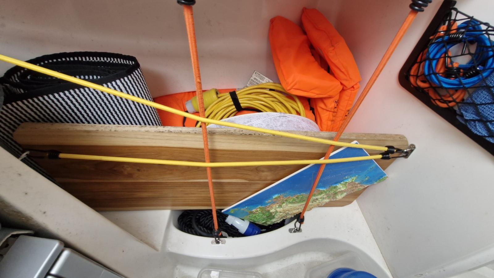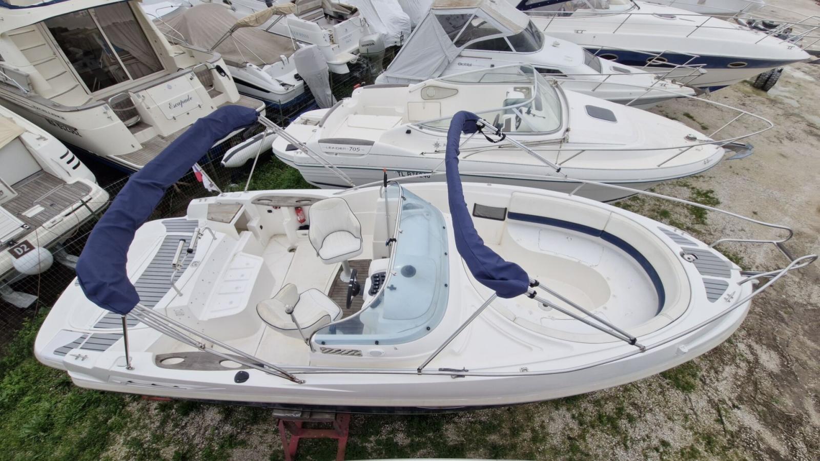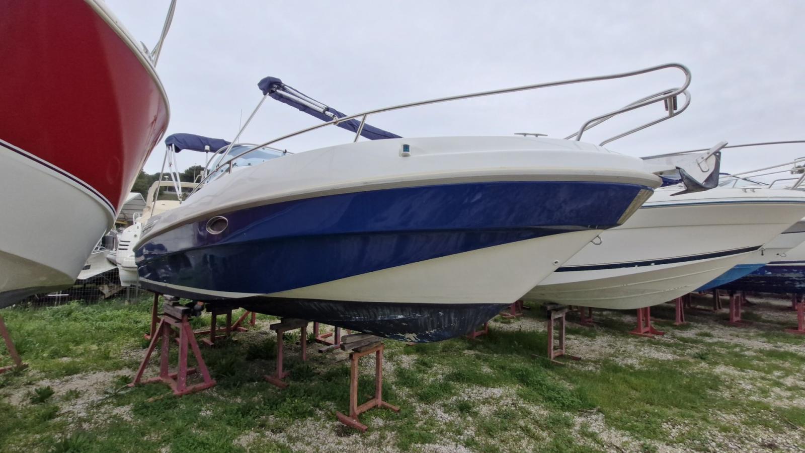 Table cockpit, Plateforme de bain, Guindeau électrique, LED subaquatiques, Haut-parleurs, Prise de quai, Batteries 110Ah moteur + service, GPS & Sondeur HUMMINBIRD HELIX 5, Traceur, Bain de soleil avant, Bimini x2 (avant + arrière), Cabine avant, Cuisine en long, Réservoir eaux noires.