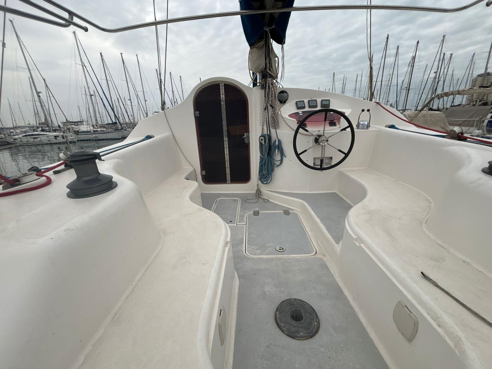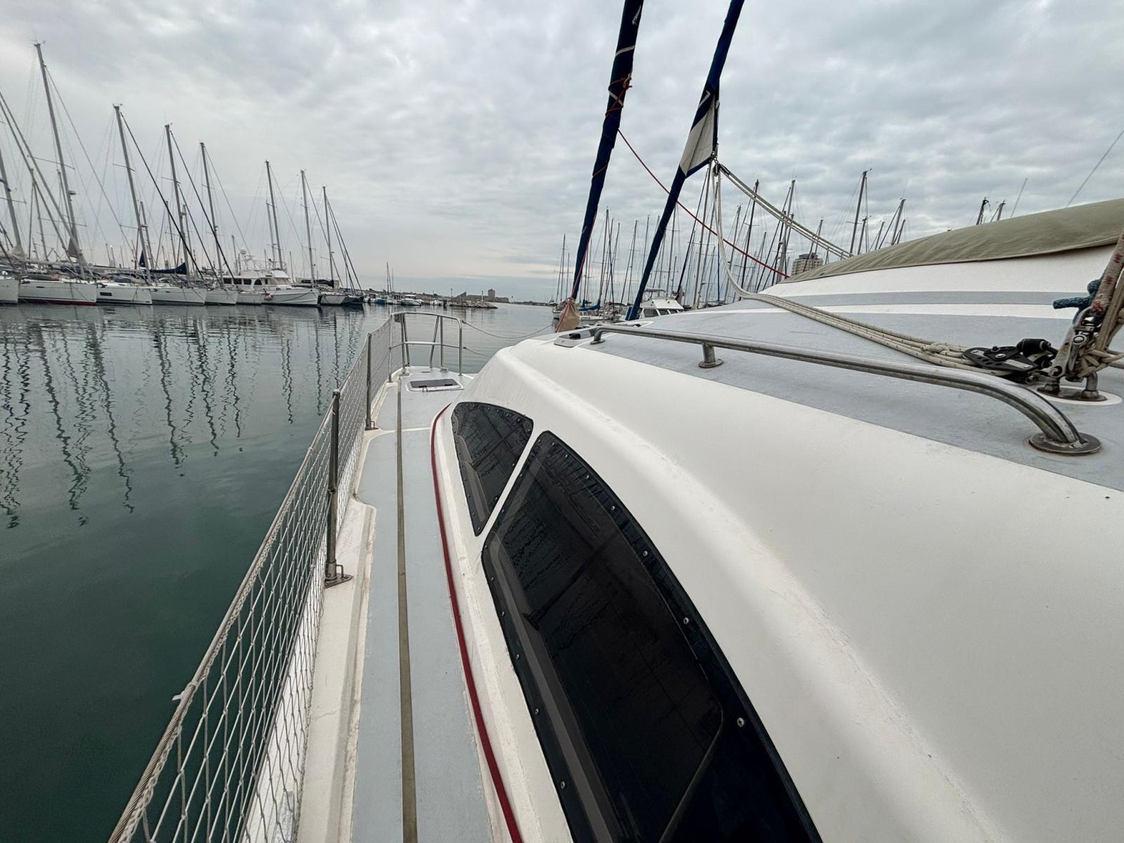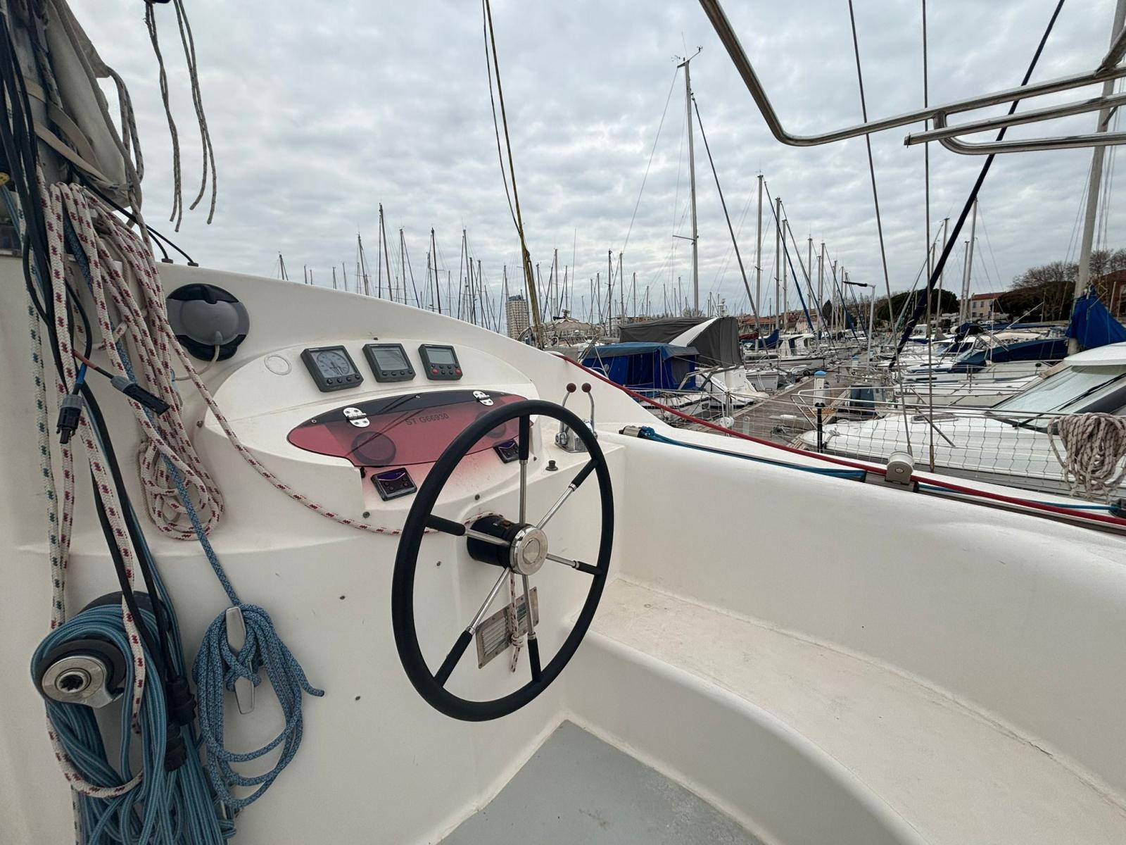 Le Prout 38 est un catamaran de croisière reconnu pour sa robustesse et son confort en mer. Il est équipé de 2 moteurs Volvo 20 CV chacun totalisant 2 200 heures (2024), entretenus tous les ans, offrant fiabilité et sécurité en navigation.