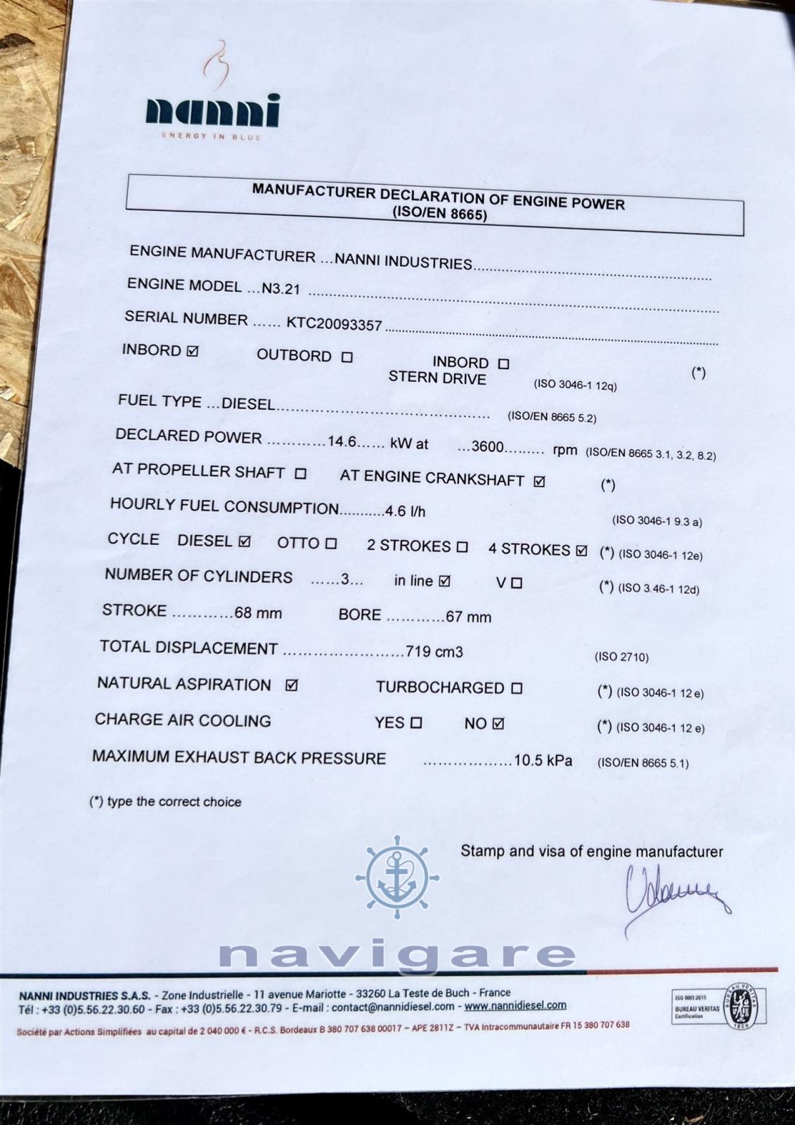 COMAR COMET 910 DE 1976 AVEC 1x21 CV NANNI DE 2020 AVEC MOINS DE 100 HEURES DE FONCTIONNEMENT.