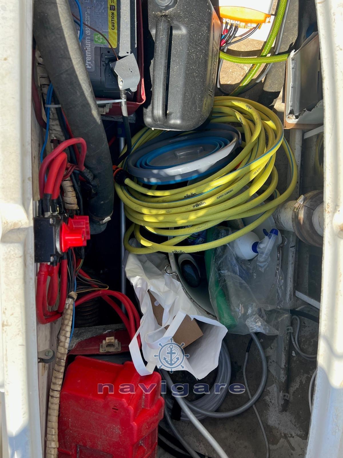 Eau sous pression, 3 Batteries (3x100 Amp h), Douche de cockpit, Passerelle, Pompe de cale automatique, Prise de quai, Connexion eau sous pression à quai, Onduleur, Guindeau électrique, Echelle de bain.