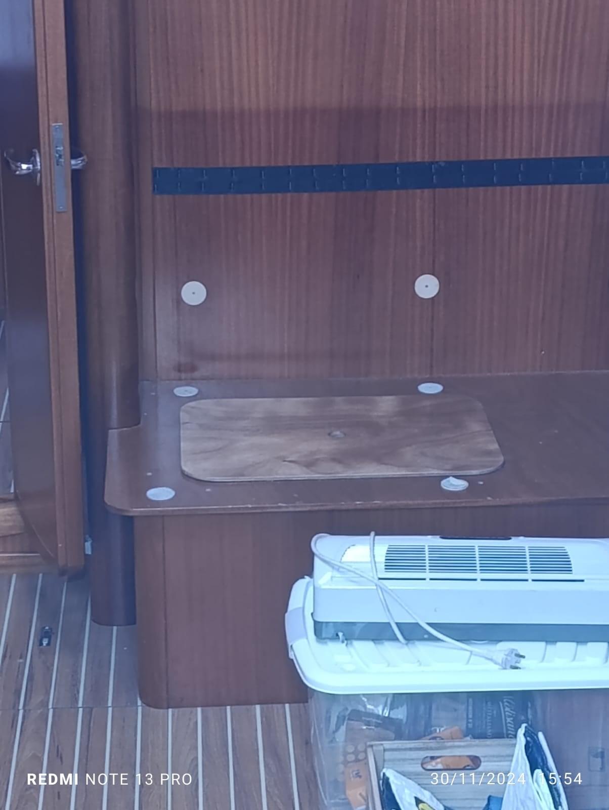 Alarme moteur, Eau sous pression, Passavant en teck, Douche de cockpit, Éclairage de courtoisie, Passerelle (NUOVA 2022), Pompe de cale automatique, Pompe de cale manuelle, Porte latérale, Cockpit en teck, Prise de quai, Connexion eau sous pression à quai, Guindeau électrique, Gréement monotoron, Echelle de bain, Chaise support HB, table de cockpit, Annexe (+ fuoribordo Honda 2,3 cv anno 2021).