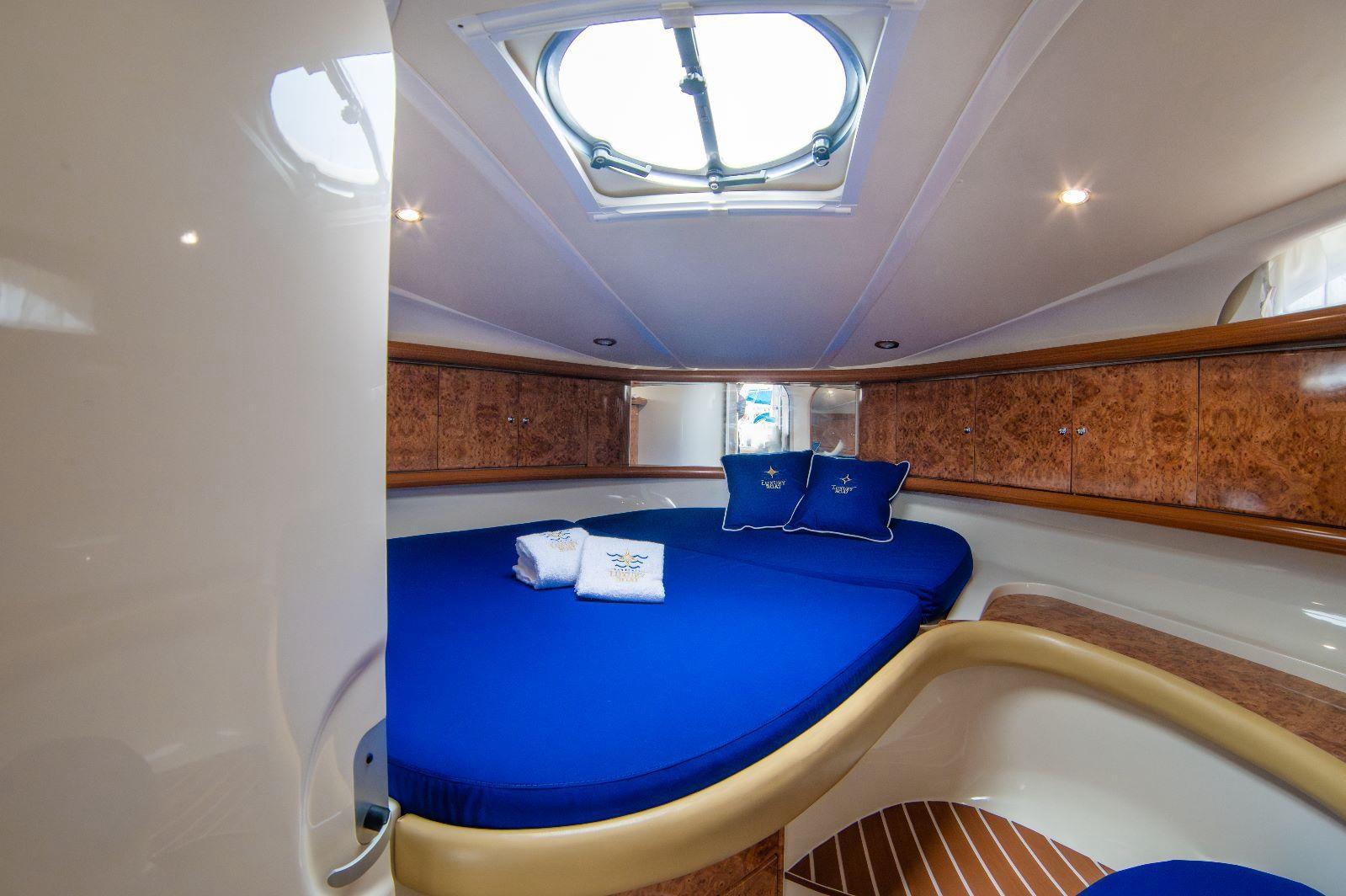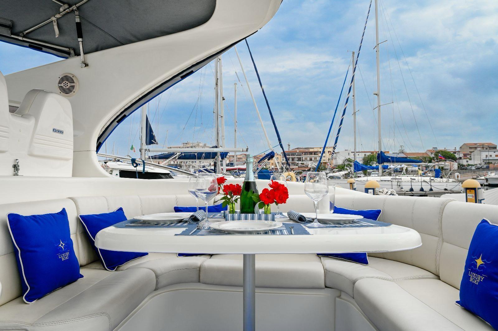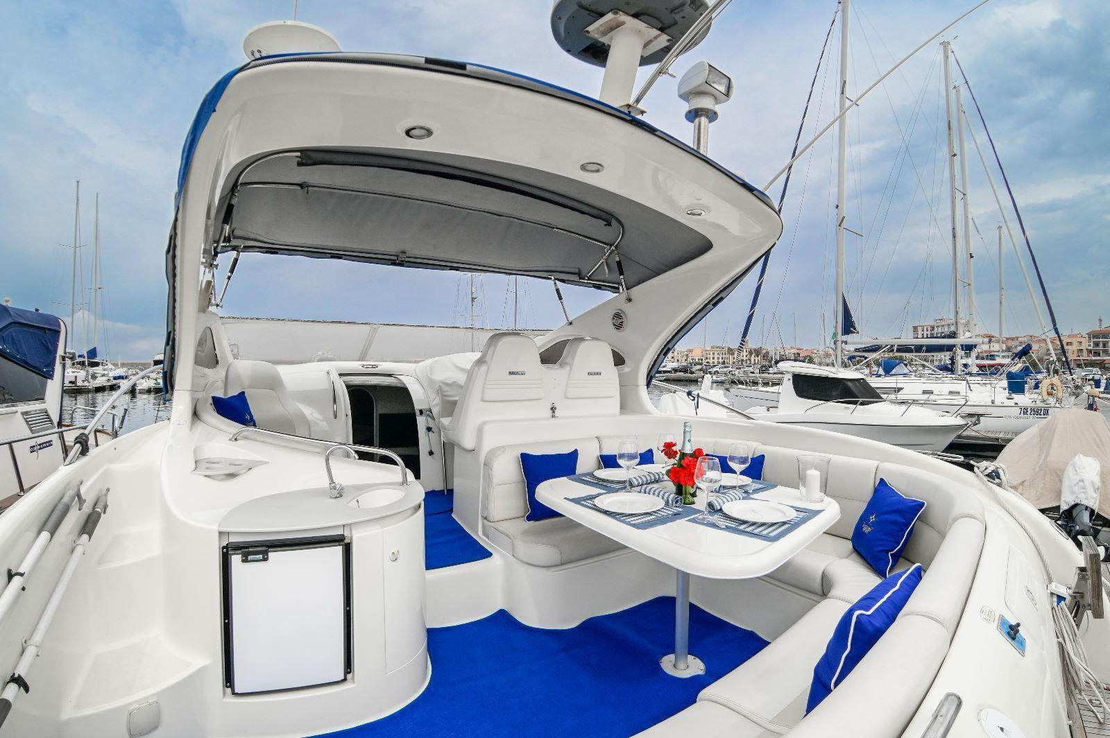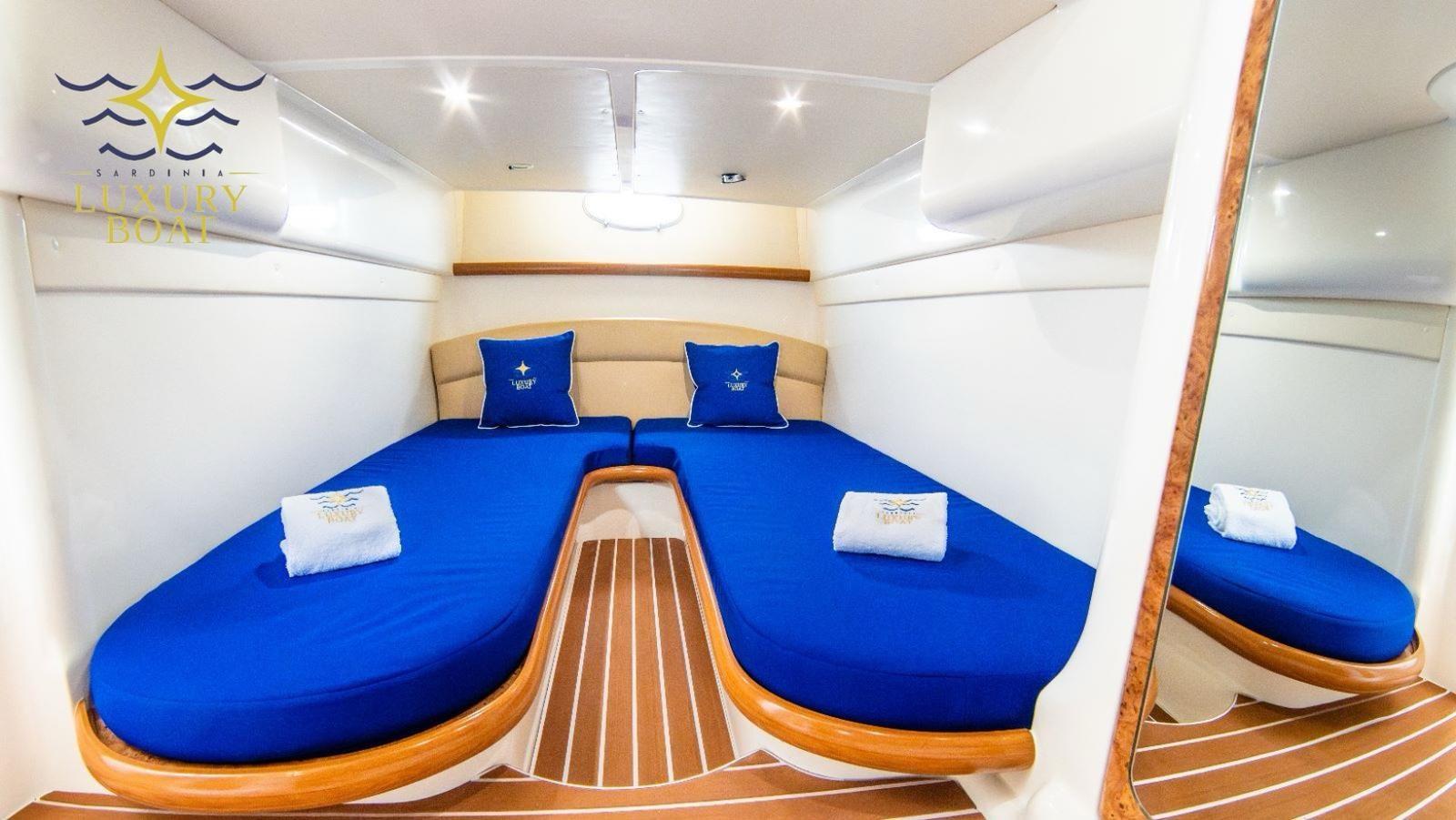 2 Alarme moteur, Alarme de pompe de cale, Alternateur, Eau sous pression, Douche de cockpit, Flaps hydrauliques, Extincteur(s) fixe(s), Indicateurs de flaps, Lavabo dans le cockpit, Éclairage de courtoisie, Passerelle, Plateforme arrière (elettro idraulica), Porte latérale, Prise de quai, Rollbar, Guindeau électrique, Echelle de bain, table de cockpit, Table pliante de salon, Corne.