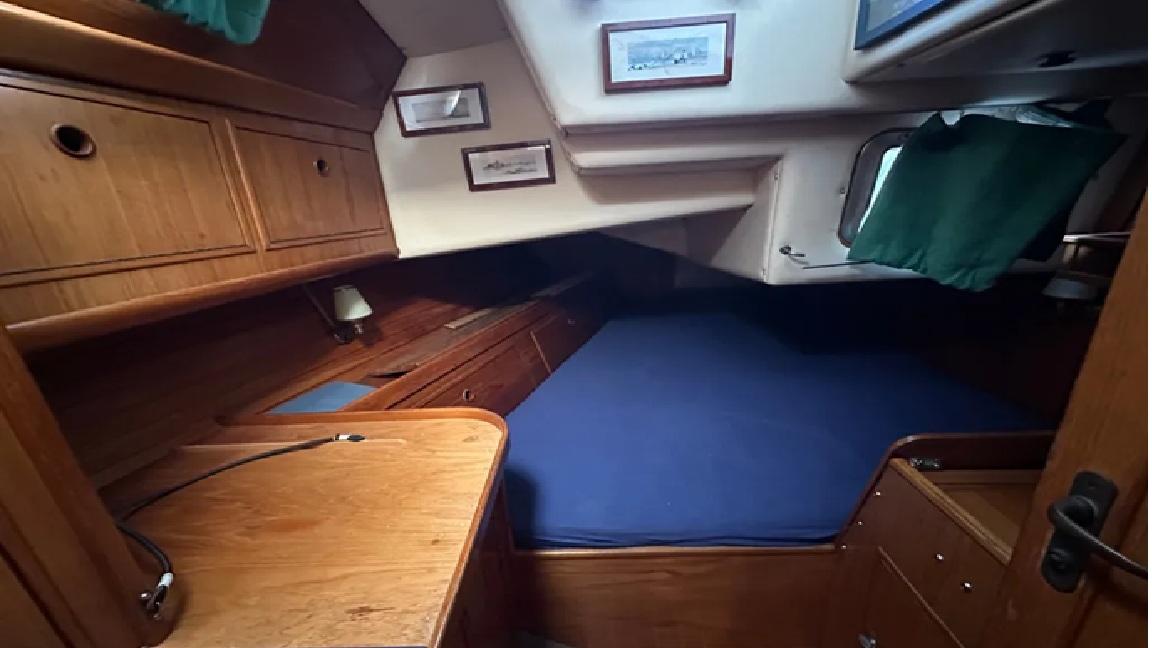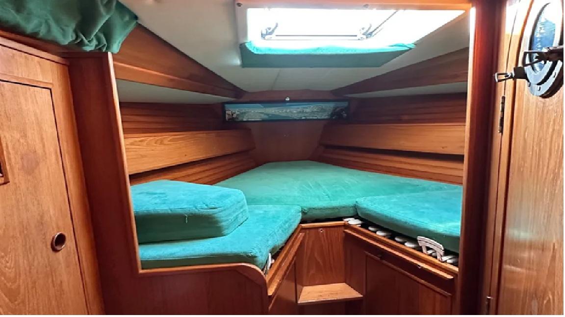 La version 2 cabines propose un aménagement particulièrement recherché sur le marché du bateau d’occasion. La cabine avant propriétaire est vaste et dispose de nombreux rangements. La cabine arrière double est confortable et lumineuse. Le carré spacieux, habillé de superbes boiseries en teck massif, offre une ambiance chaleureuse et élégante. La cuisine en L est fonctionnelle et bien équipée, et la salle d’eau comprend WC marin et douche.