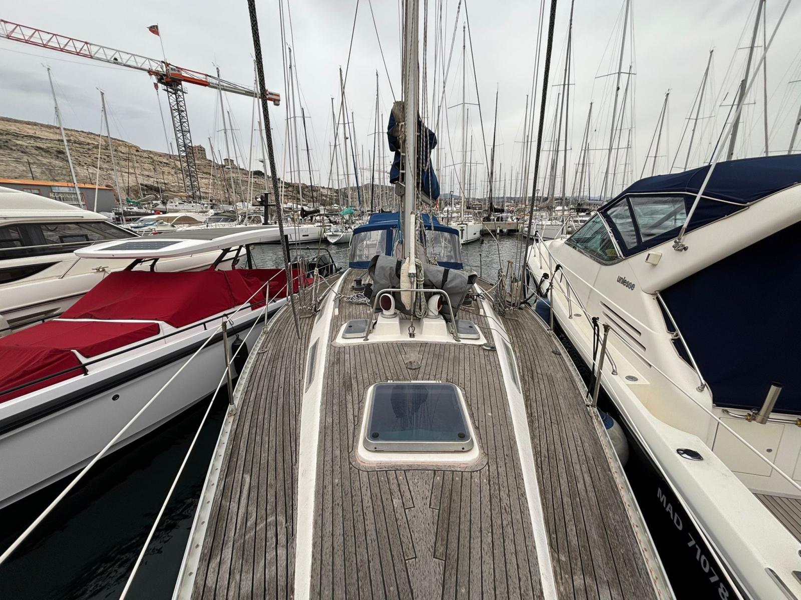 Le bateau est également équipé de winchs électriques, un atout majeur pour faciliter les manœuvres en équipage réduit. Les capacités en eau et carburant permettent d’envisager sereinement des croisières longue durée.