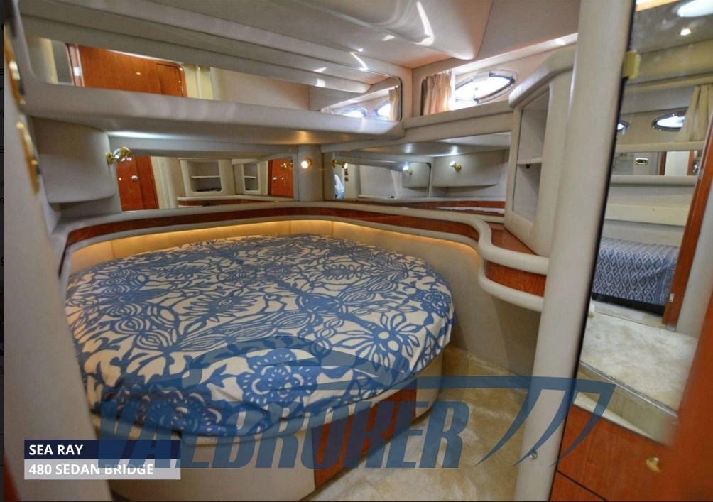 Sea Ray 480 Sedan Bridge avec 2x640 CV Caterpillar 3196 DITA avec quelques heures de fonctionnement. Les moteurs ont atterri et ont été entièrement reconstruits en 2015. Intérieurs élégants et raffinés en bois de cerisier poli, grand salon avec canapé en L, dînette confortable et grande cuisine complète en face, cabine propriétaire à l’avant avec salle de bain attenante et douche séparée, cabine double invités à bâbord avec accès direct aux toilettes, cabine twin avec lits croisés à tribord.
