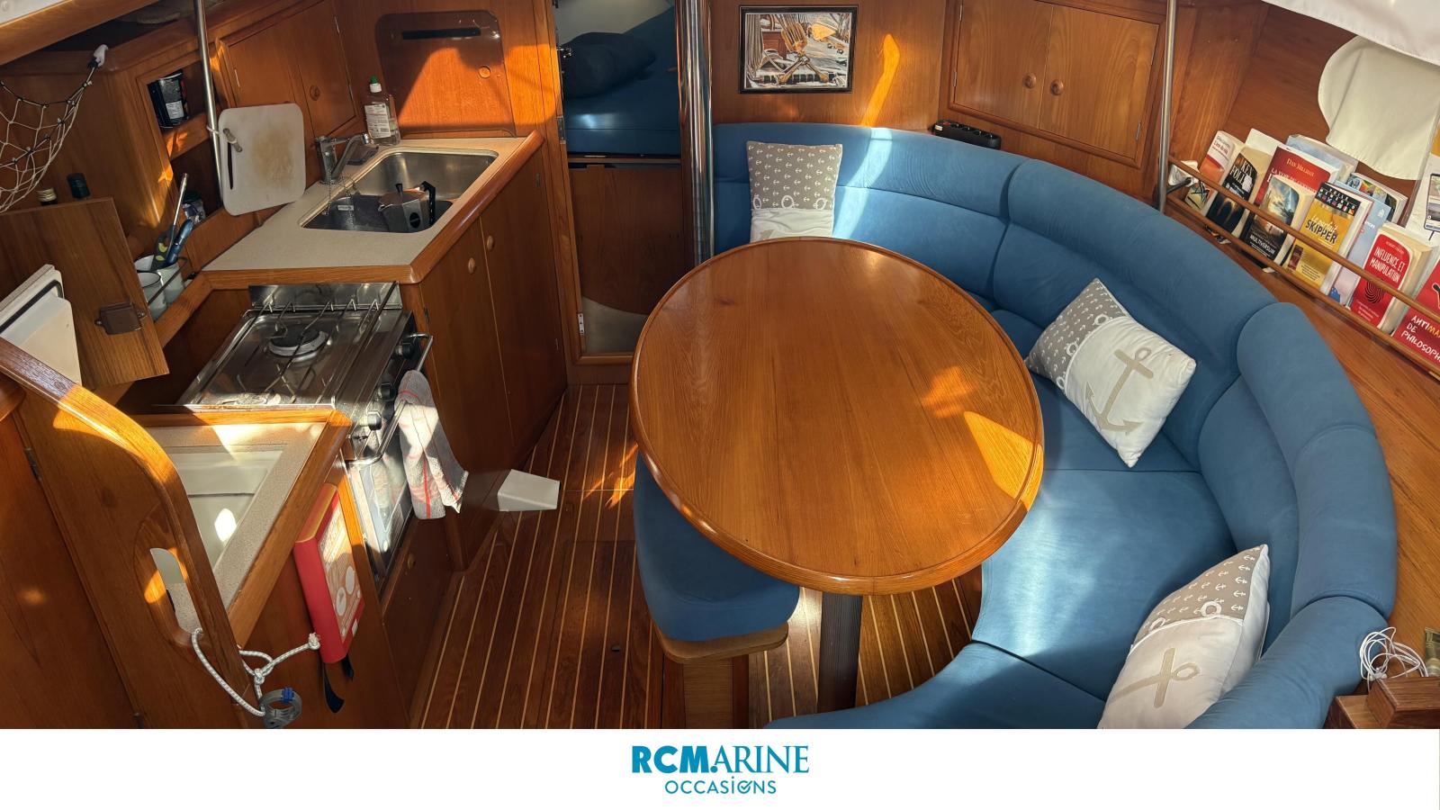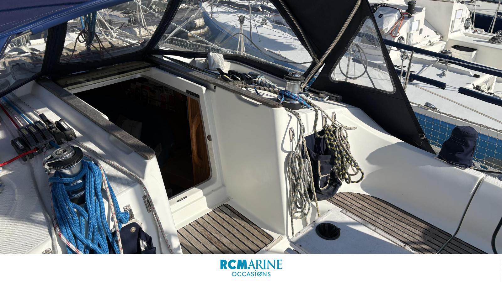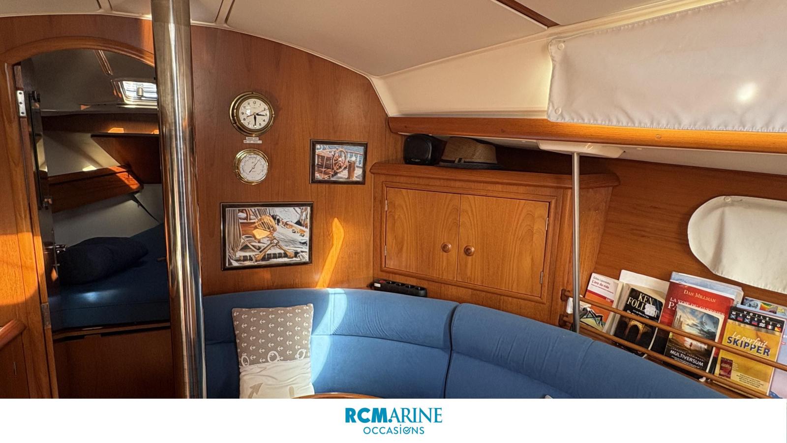 Son cockpit confortable abrite les manoeuvres centralisées autour de la descente. À L'intérieur, la menuiserie en teck, dans la grande tradition JEANNEAU met en valeur un carré spacieux faisant face à une cuisine en long fonctionnelle avec un grand volume de froid. Sa vaste salle d'eau avec douche et toilettes indépendantes et ses nombreux rangements sont autant d'atouts qui prennent toute leur dimension en mer.