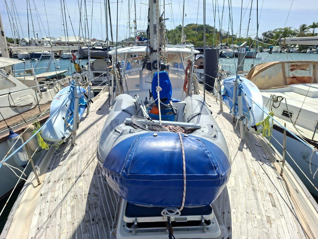 Pavillon Français et TVA Antilles Française et octroi de mer acquittée, visible en Guadeloupe dans la Marina Bas du Fort.