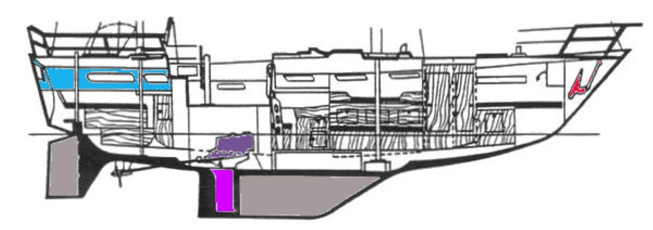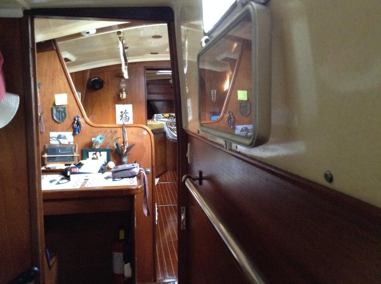 Lit simple dans la coursive bâbord donnant accès à la cabine arrière