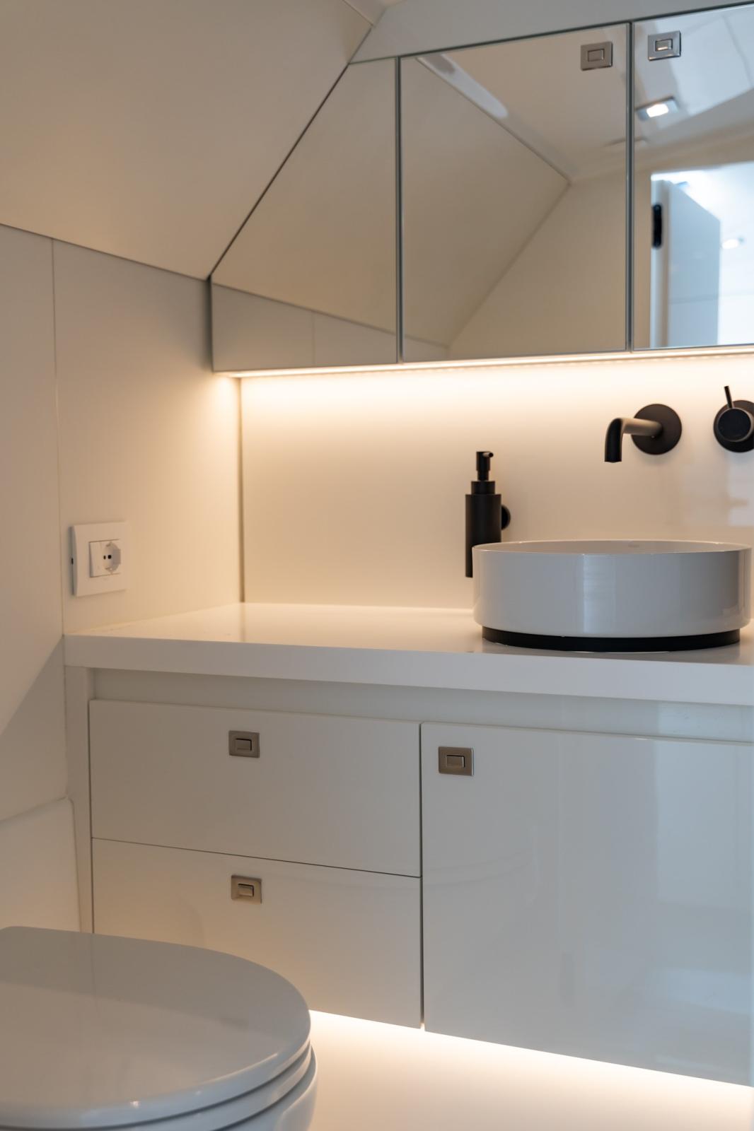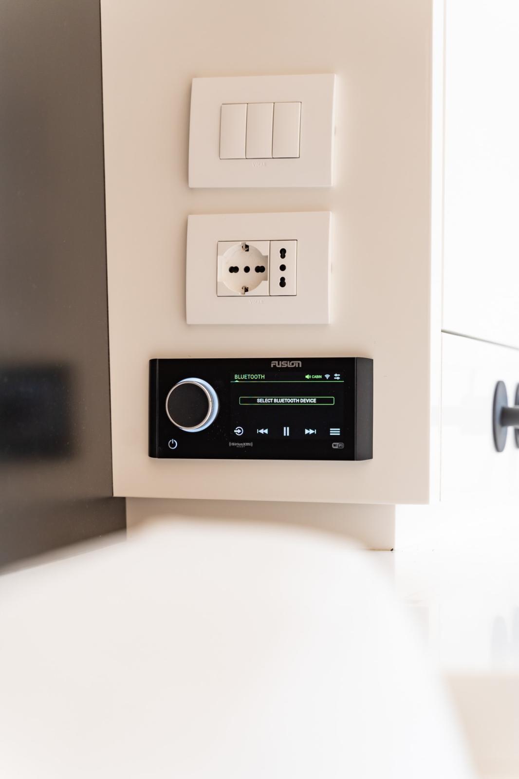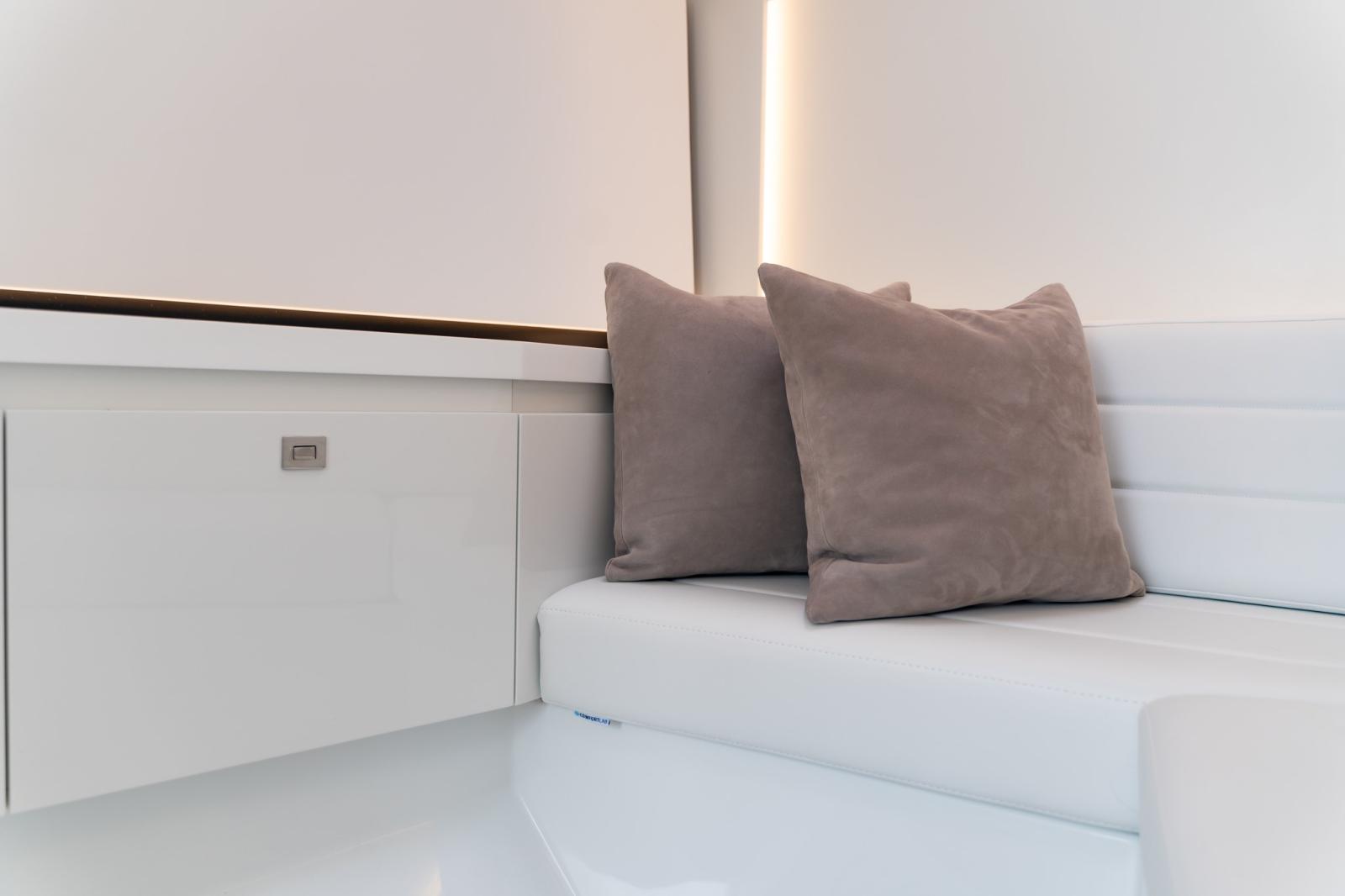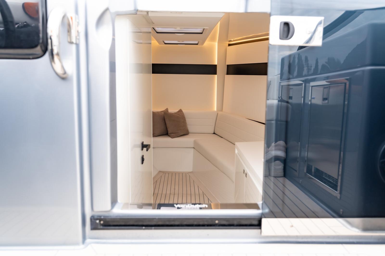 Depuis la zone de pilotage, vous pouvez gérer la musique et le système audio, l'éclairage, la recharge des appareils et bien d'autres fonctions. VanDutch passe exclusivement à l'électronique Garmin pour une interface utilisateur améliorée et intuitive. Le tableau de bord comporte 2 écrans Garmin de 12 pouces, ainsi que le joystick, ce qui vous permet de toujours garder le contrôle de la situation en toute sécurité.