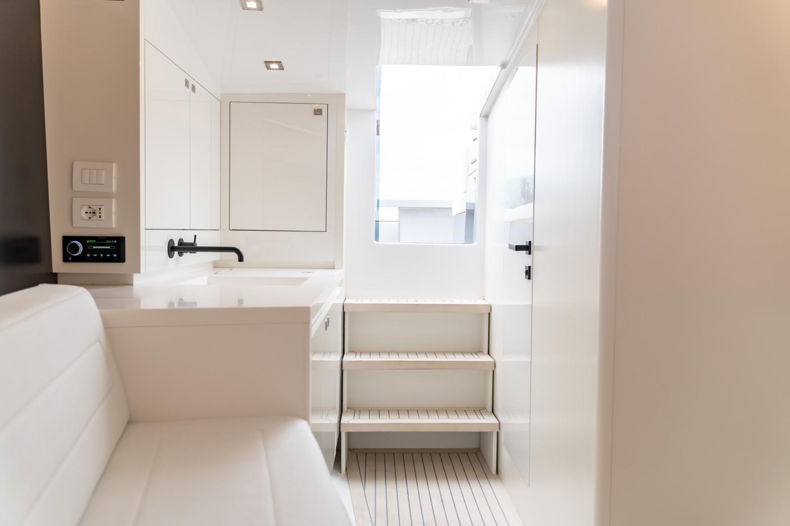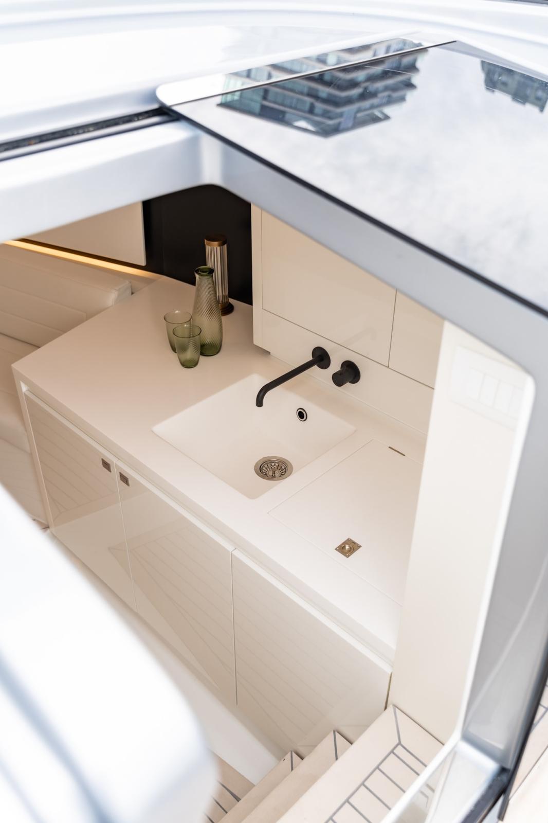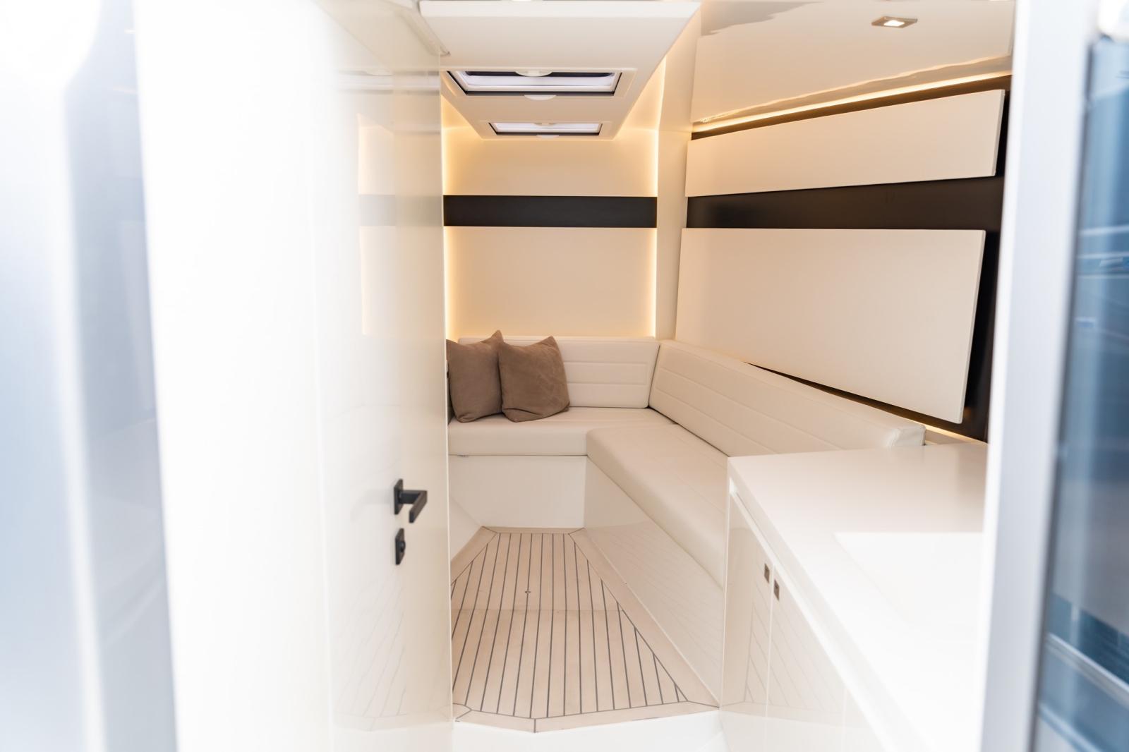 La nouvelle coque redessinée comprend une poupe ergonomique révisée et des volumes élargis pour un confort extérieur exceptionnel, avec l'objectif d'une plus grande habitabilité et d'une connexion à la mer.