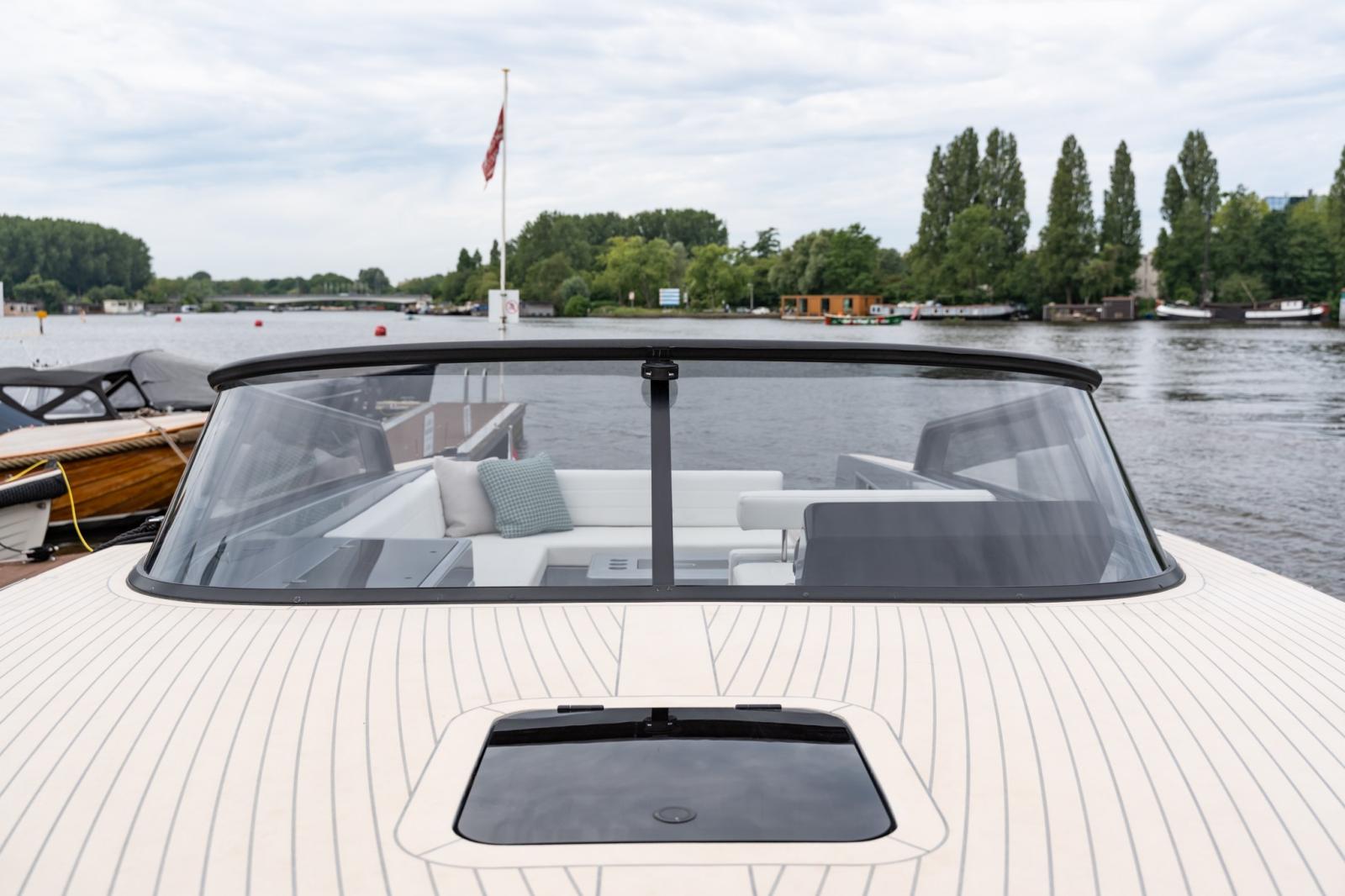 Alternateur, Ancre (Rvs), Câble d’alimentation à quai, Propulseur d'étrave (Elektrisch), Fixation de l’ancre (Ketting), Moniteur de batterie, Plateforme arrière, Prise de quai, Guindeau électrique, table de cockpit.