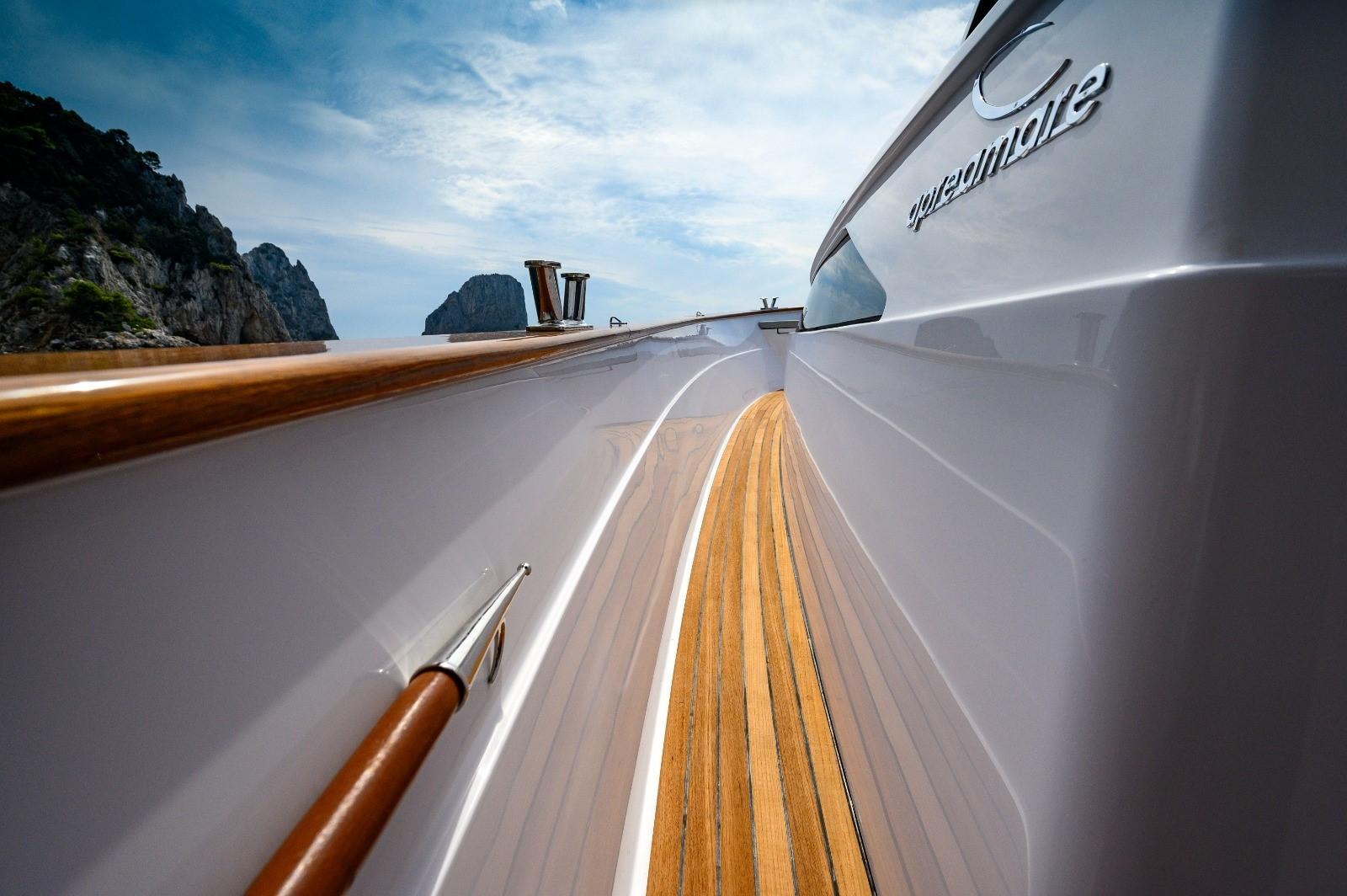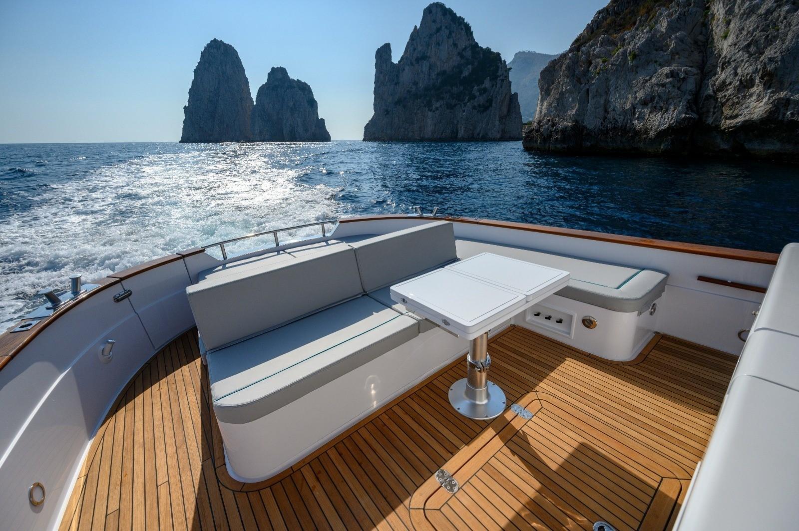 Avec la nouvelle jument Aprea Gozzo 35, Aprea a réussi à adapter la gamme classique Gozzo aux souhaits actuels. Il existe une large gamme de possibilités de choix de moteur, tant avec l'arbre d'hélice (avec une puissance de 270 ch. à 320 ch.) qu'avec la propulsion en étoile (avec une puissance de 230 ch. à 320 ch.) à installer. L'intérieur est spacieux et moderne, et entièrement équipé. En plaçant une cuisine extérieure, des transats, le nouveau Gozzo dispose de beaucoup d'espace sur le pont pour se détendre ou se reposer... Une grande attention a été portée au design de la coque avec des lignes qui la placent dans une ligne plus contemporaine tout en respectant les standards esthétiques du Gozzo Sorrentino classique.