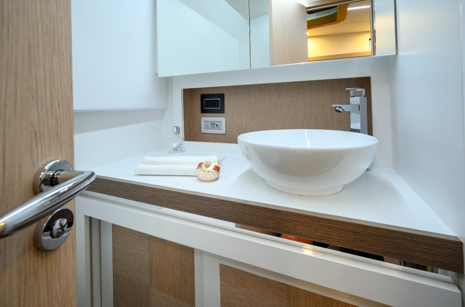 Eau Chaude, BBQ/ Grill, Ballon d'eau chaude, Air Conditionné, Dessalinisateur, Cuve à eaux noires, Indicateur du réservoir de carburant, Jauge de Réservoir d’Eau, Jauge de Réservoir d’Eaux Usées, Indicateur de pression d’huile, Indicateur de température moteur, Plancher intérieur en bois, Prises interieures 12v, Prises interieures 220v, Réservoir d'eau noire, Système d’Eau (Druksysteem), Toilettes électriques.