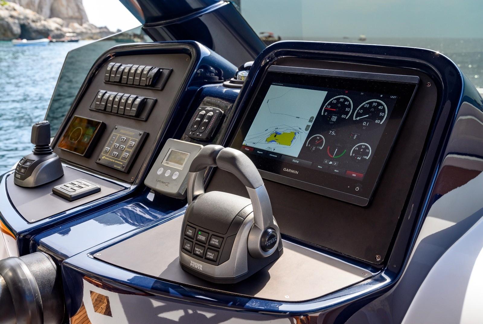 Indicateur d'angle de barre, Moniteur, Sondeur pêche (Dieptemeter), Indicateur de virage, Joystick, Cartes et guides, Panneau de commande, Instruments de mesure pour moteurs.