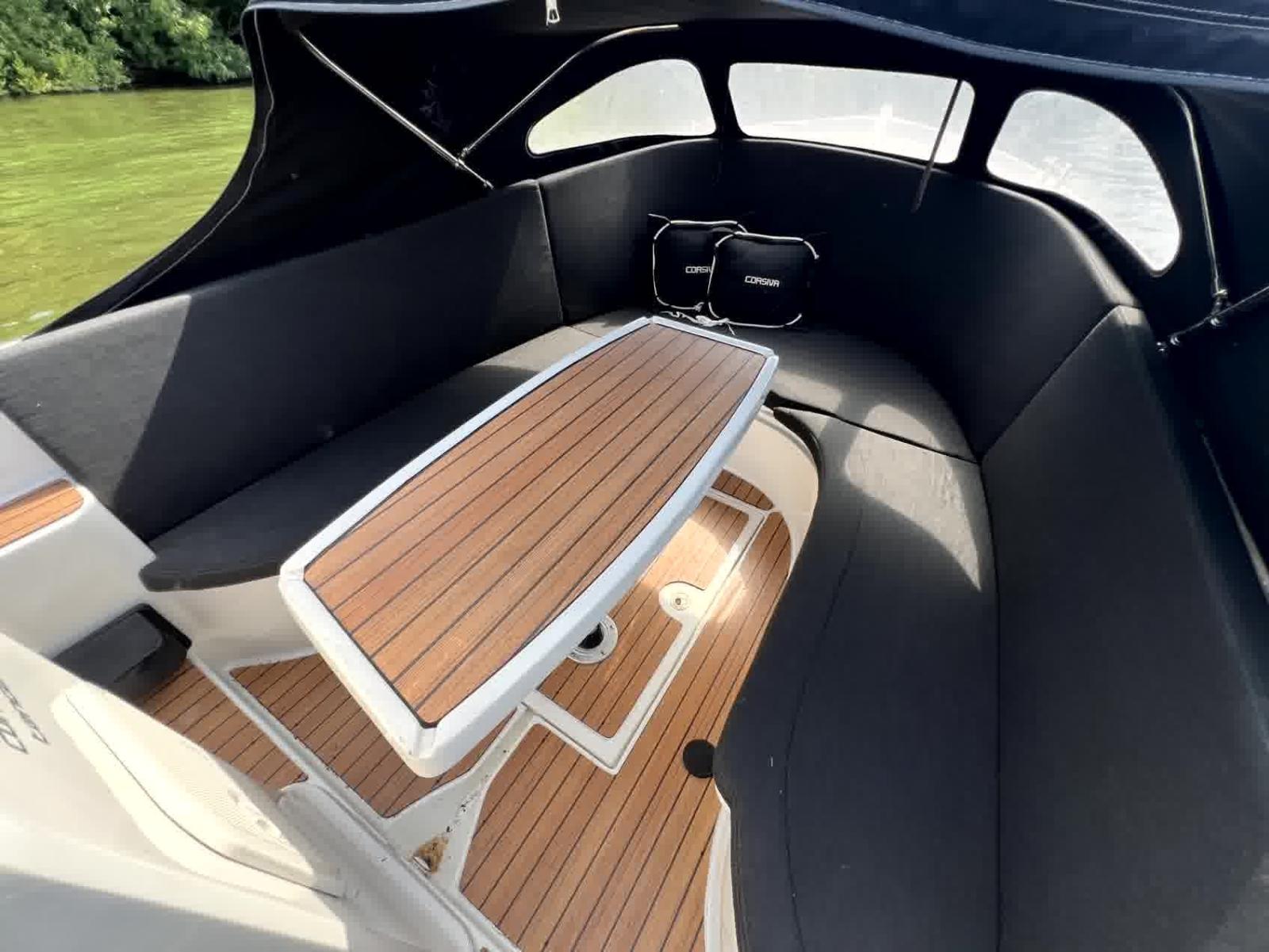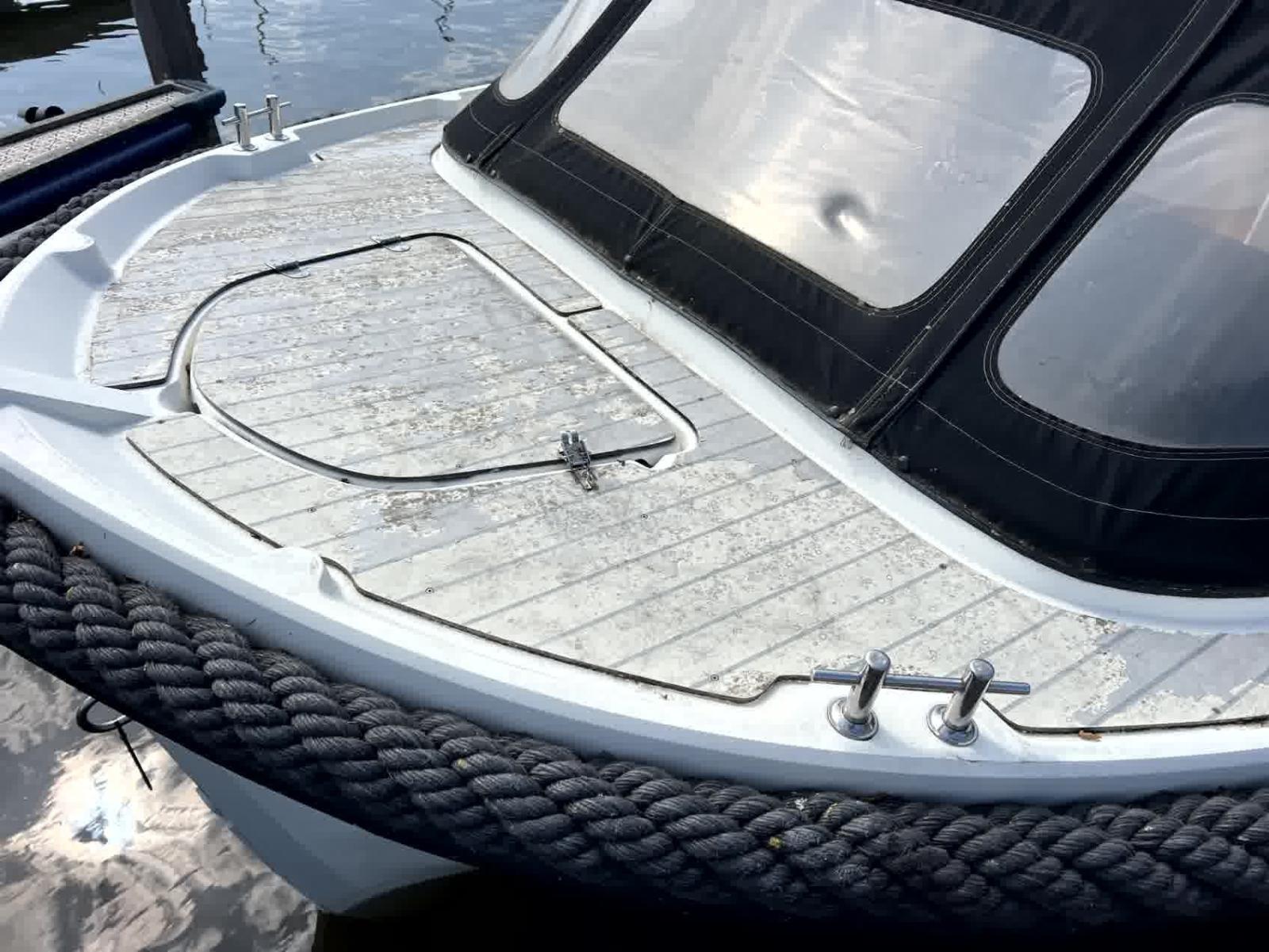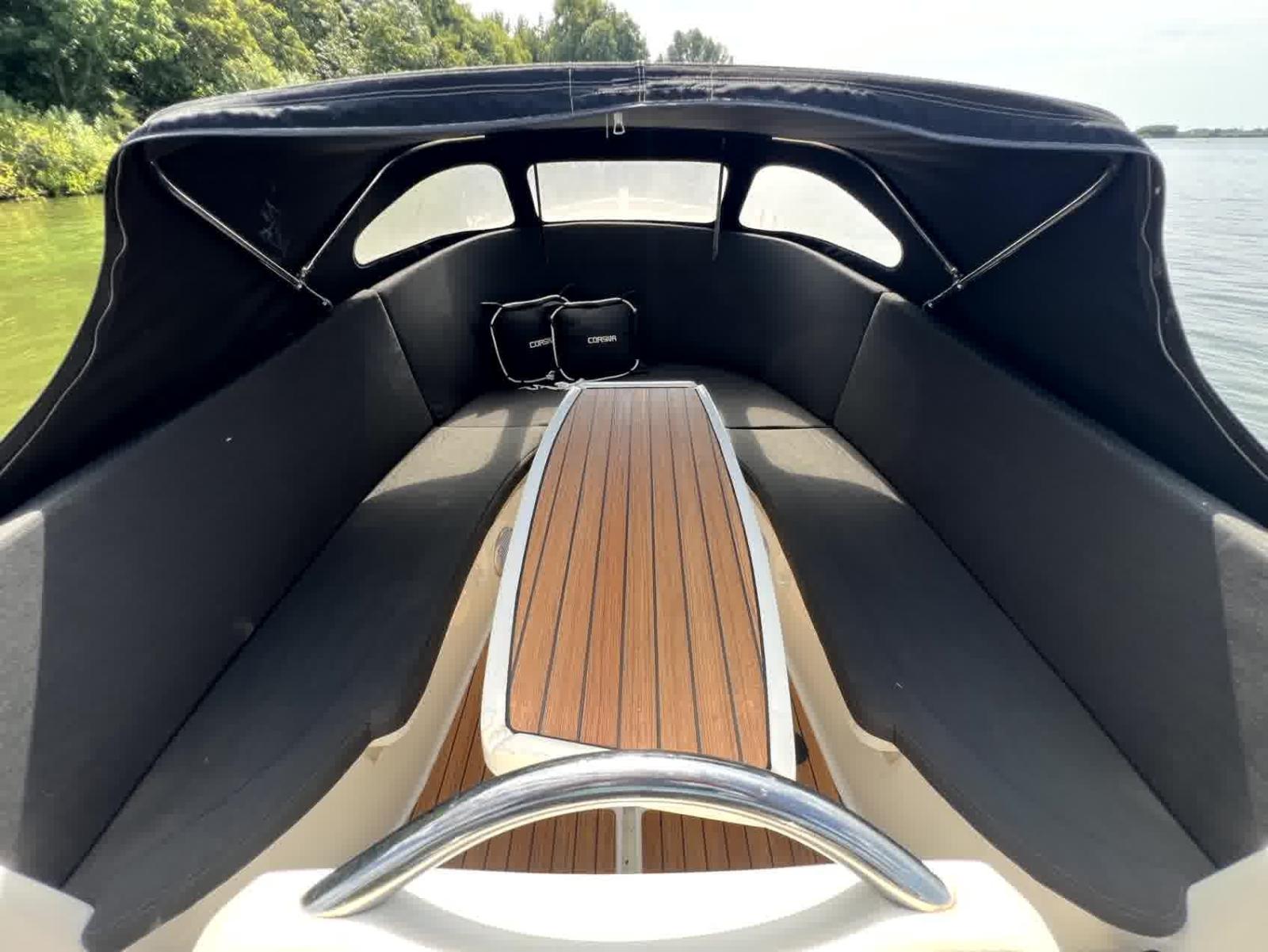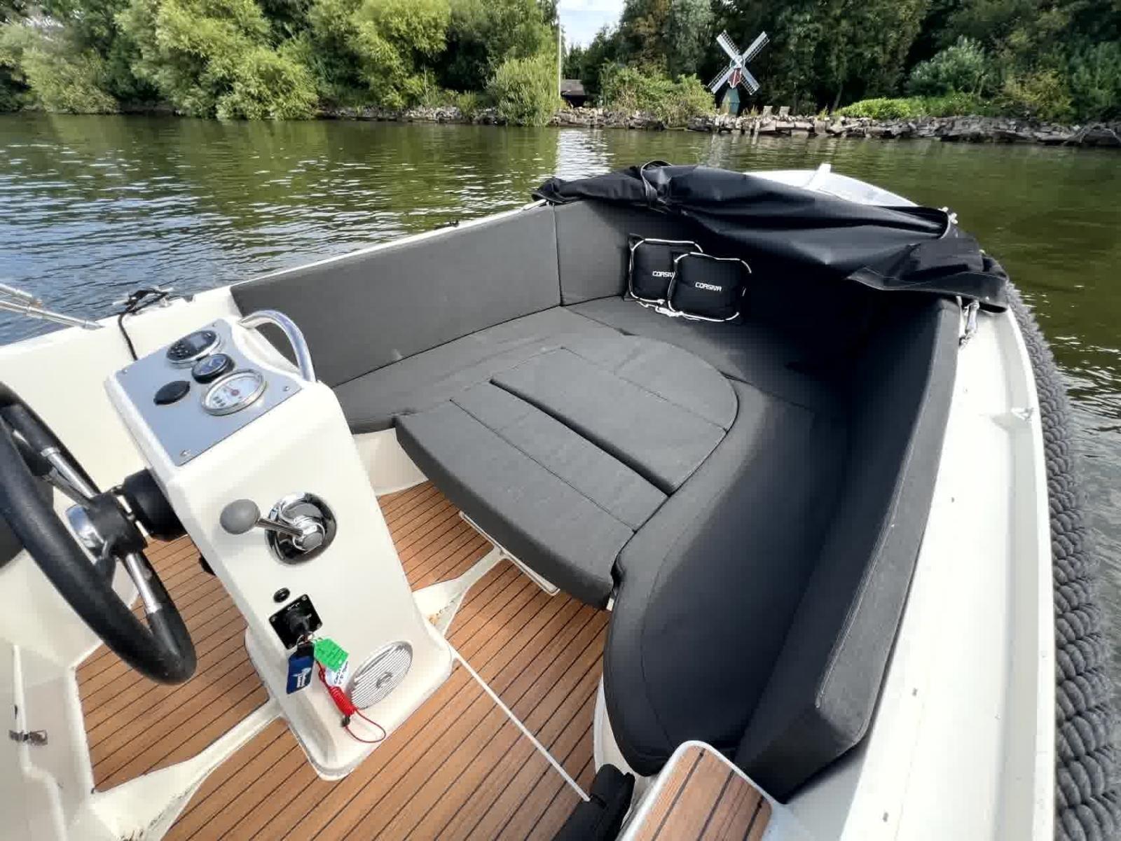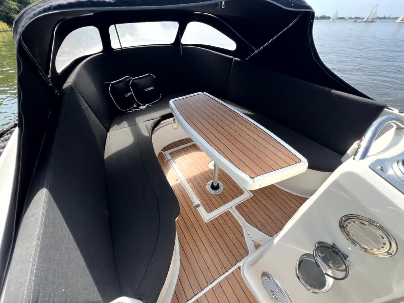 Le pare-battage, le capot et les coussins sont en très bon état, ce qui vous permet d'en profiter immédiatement sans investissements supplémentaires. Que vous souhaitiez naviguer tranquillement sur les canaux, planifier une journée sur le lac ou rechercher la vitesse, cette annexe vous offre tout cela. Équipée de plusieurs prises USB 12v et d'un système radio, vous aurez toutes les commodités. Le bimini offre de l'ombre lors des journées chaudes, et le pont solaire vous permet de vous détendre ou de le convertir en un coin salon spacieux avec une table, idéal pour prendre un verre ou un déjeuner confortable à bord.